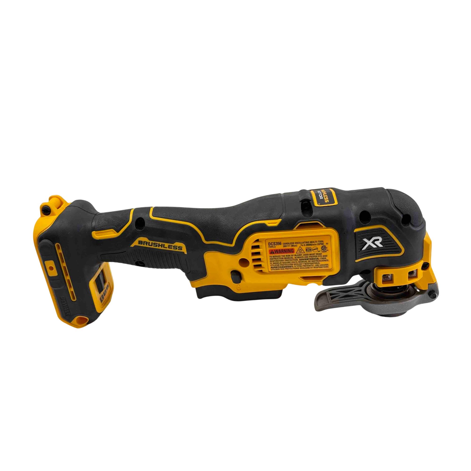 Tackle any task with the DeWalt DCS356B 20V MAX XR Brushless Cordless Oscillating Multi-Tool. Renowned for its power, versatility, and precision, this durable tool is perfect for cutting, sanding, scraping, and more making it an essential addition for professionals and DIY enthusiasts alike. Upgrade your toolkit with the XR brushless motor for longer run time and better performance, all in DeWalt’s signature yellow and black design.