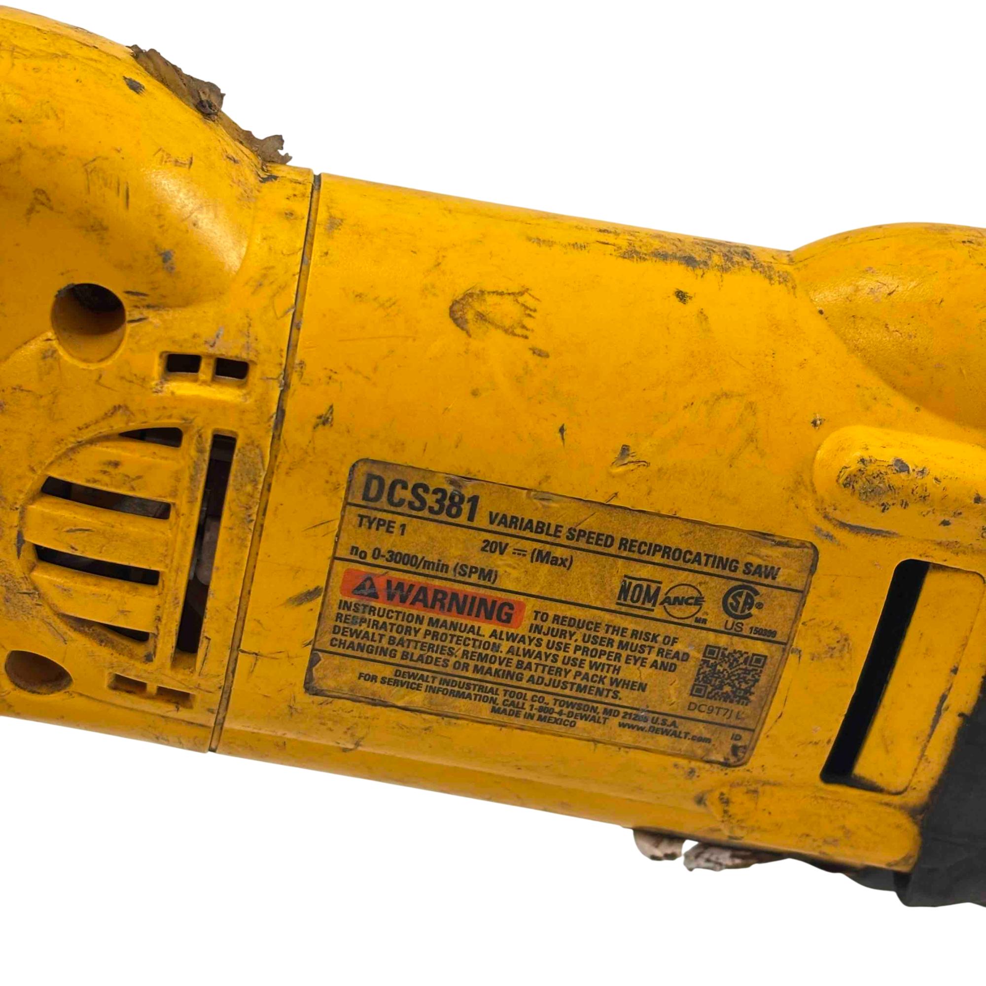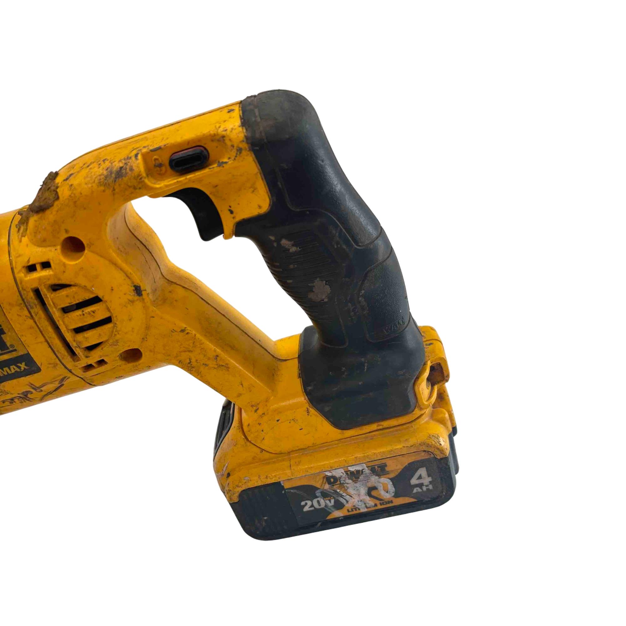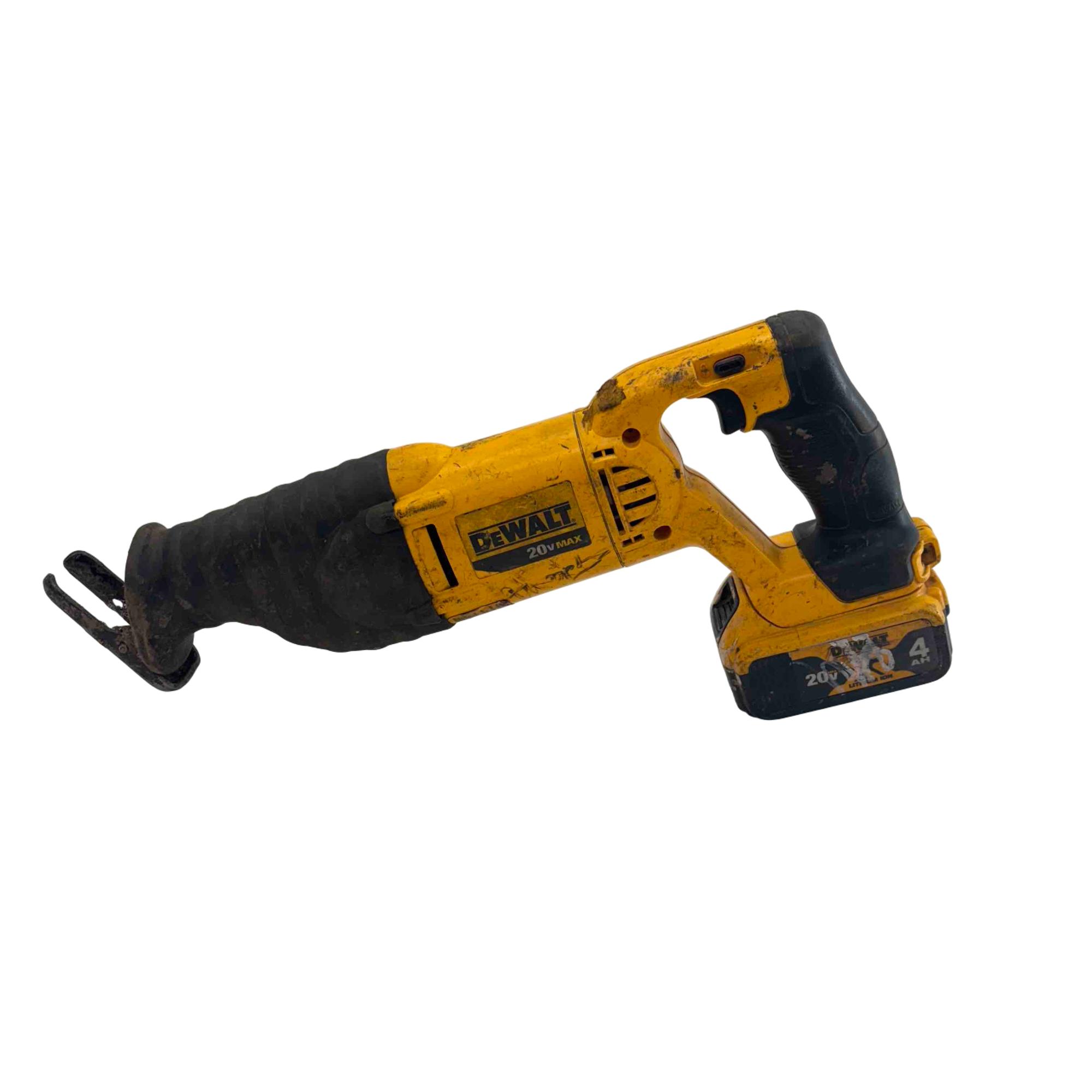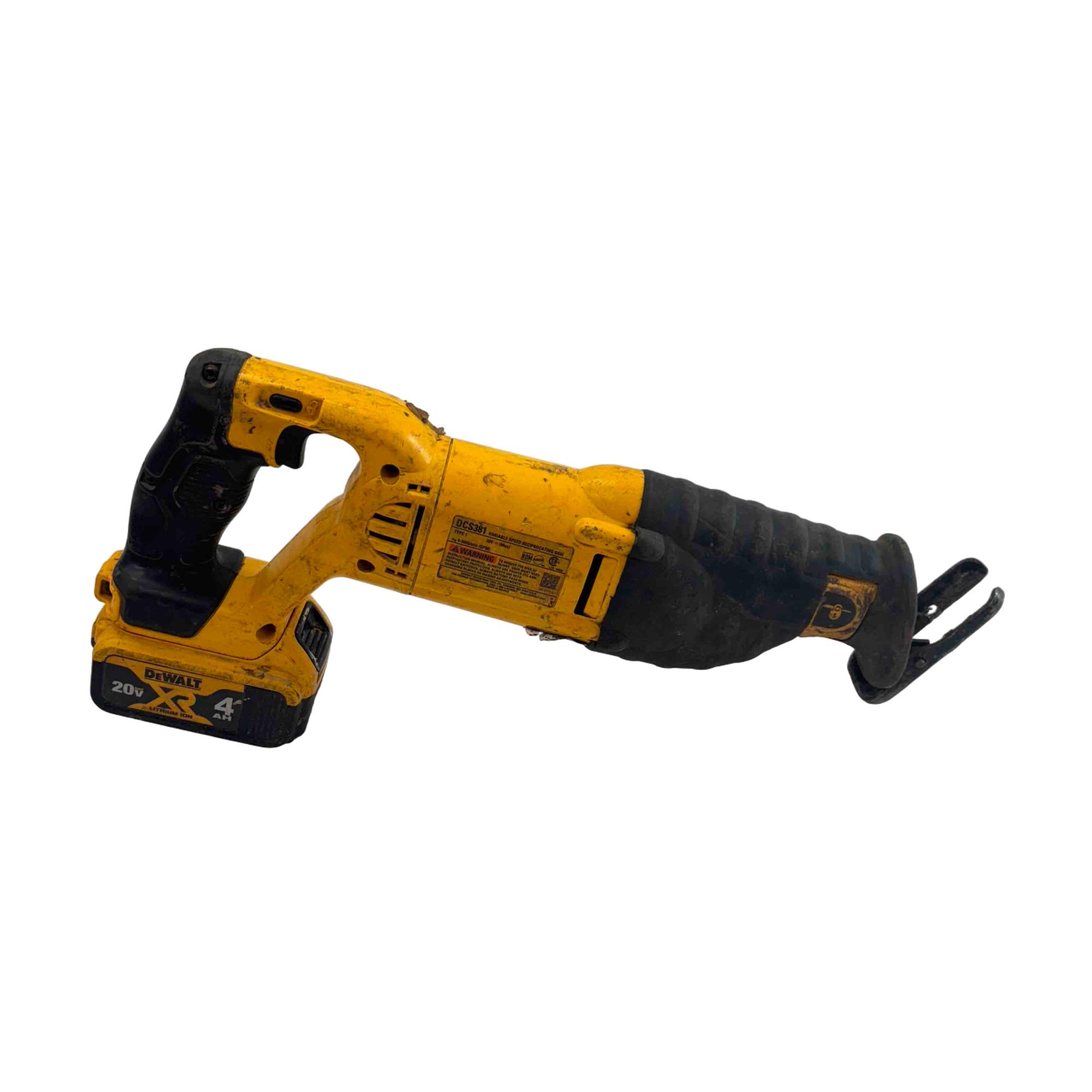 Tackle heavy-duty cutting tasks with this DeWalt DCS381 20V MAX cordless reciprocating saw, featuring a rugged yellow and black design and reliable DeWalt build quality. Included are two rechargeable lithium-ion batteries (4.0Ah and 2.0Ah), so you can power through demolition, renovation, and tough construction jobs without interruption. Built to last and ideal for professionals and DIYers, this saw shows some light wear but is ready for years of reliable service.