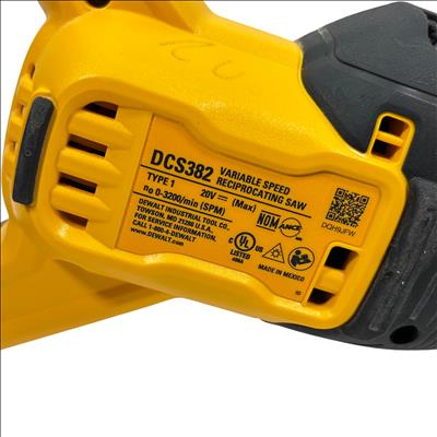 The DeWalt DCS382 20V MAX XR Brushless Reciprocating Saw delivers powerful cutting performance with a variable speed trigger that reaches up to 3200 strokes per minute. Featuring a brushless motor for increased efficiency and longer tool life, this cordless saw is powered by a 20V MAX 4.0Ah lithium-ion battery, providing excellent runtime and portability. Its ergonomic design and XR technology make it ideal for professional contractors and DIY enthusiasts needing a reliable and versatile cutting tool. This used unit includes the saw and battery, perfect for tackling demolition, remodeling, and general construction tasks.
