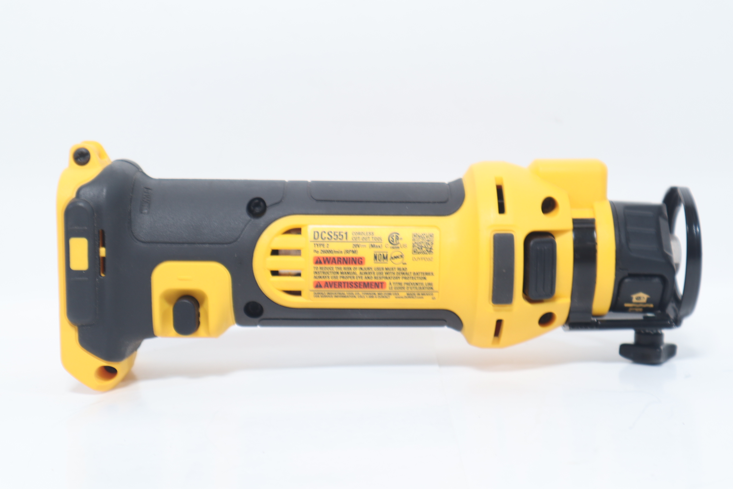 The DCS551B 20V MAX Drywall Cut-Out Tool has a 26,000-rpm motor with a tool-free bit change. Dust-sealed switch protects against dust ingestion for longer tool life.