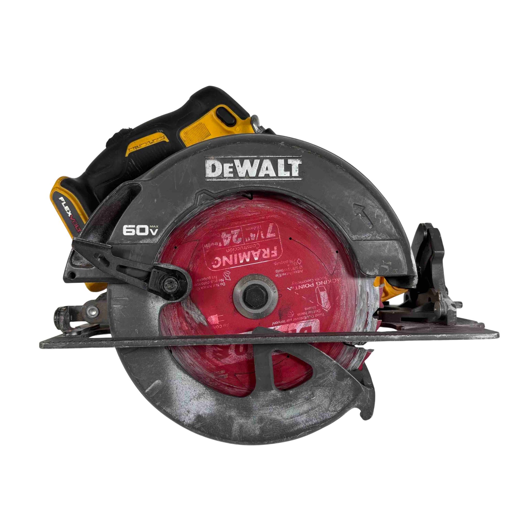 Delivers up to 47% more power than its predecessor, the DCS575, with a robust 2456 unit watts out and a no-load speed of 5800 RPM, matching the power of corded saws while offering the freedom of cordless use. This saw features a 7-1/4" blade, with a maximum cut depth of 2-9/16" at a 90° bevel, and a maximum bevel capacity of 57° with stops at 22.5° and 45°. An electric brake enhances safety by stopping the blade quickly after the trigger is released, while an integrated LED light improves visibility and cut accuracy.