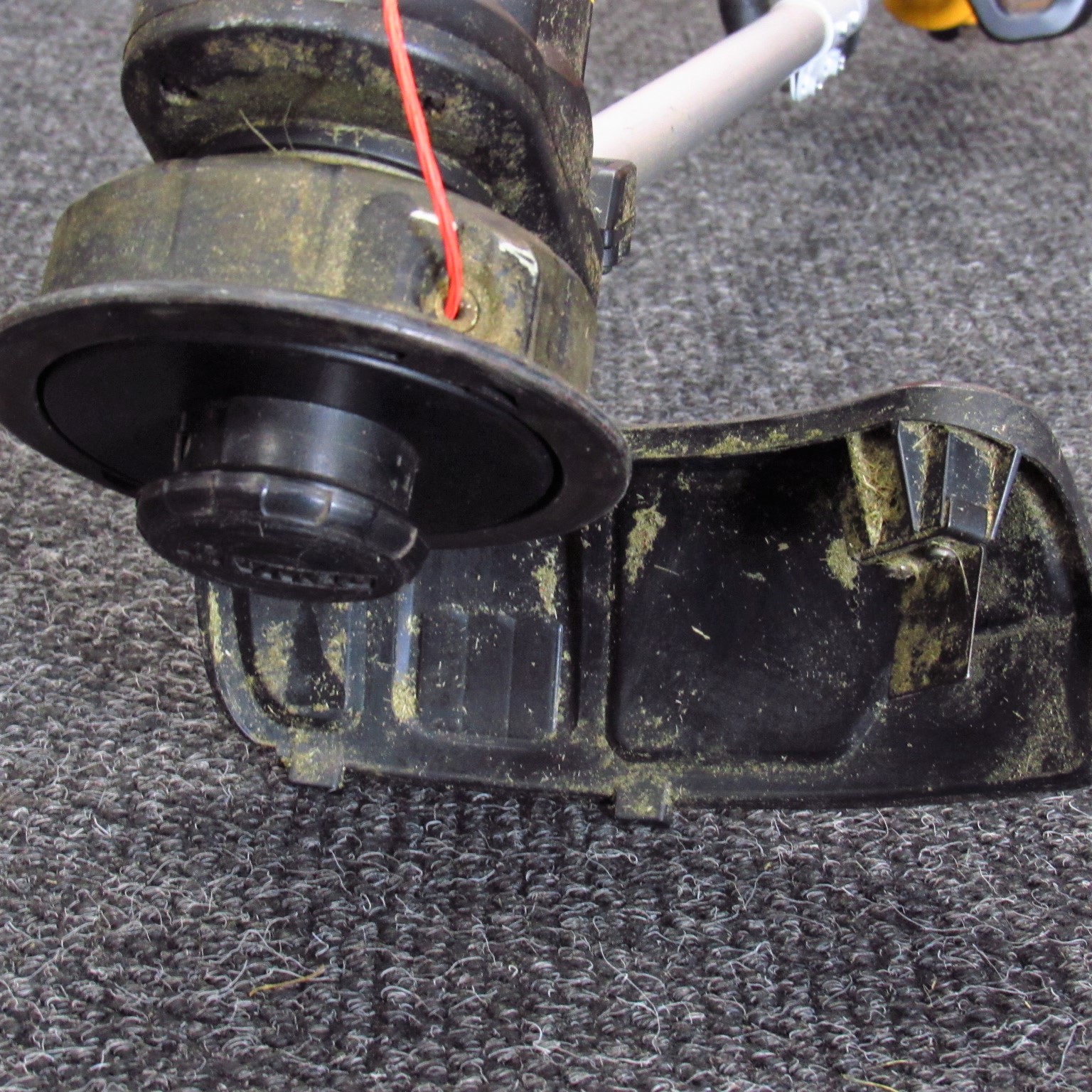 Previously owned. Scratches, scuff marks and dirt/dust are on the string trimmer typical of normal use/handling, including on the bottom side. Powers on and in working order. Battery is not included. See pictures for details.