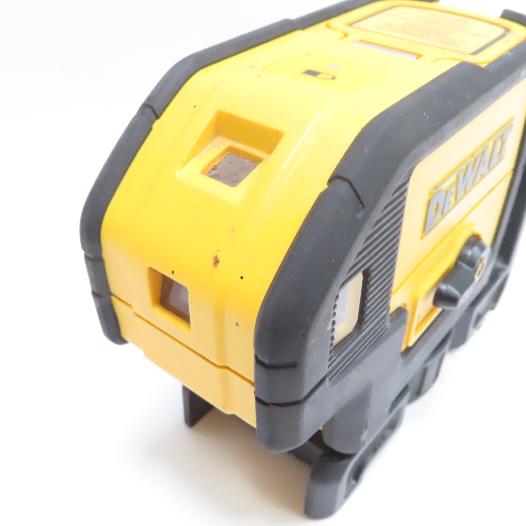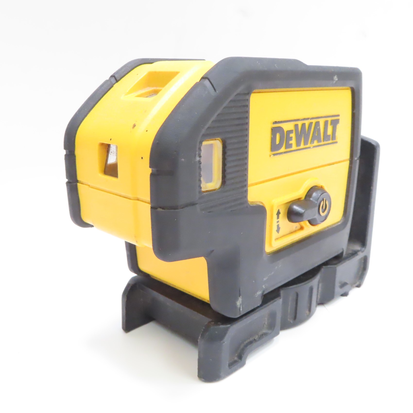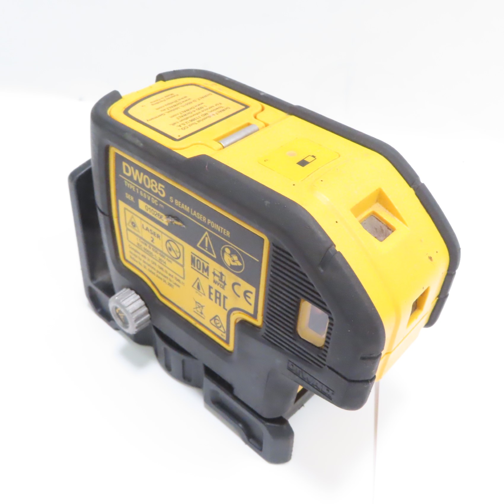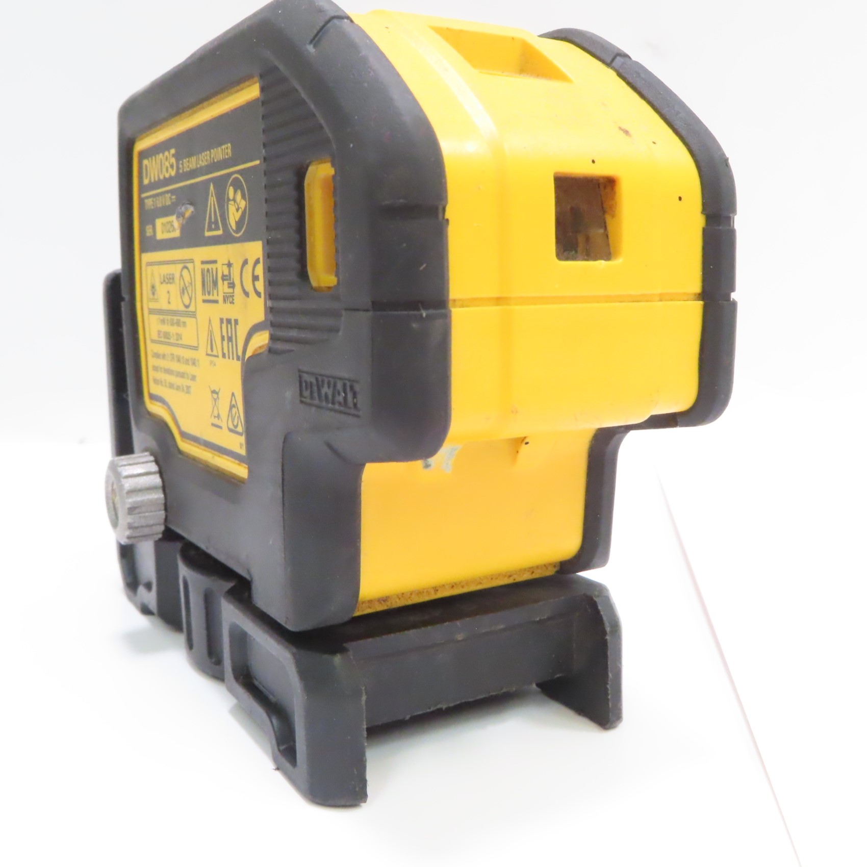 Projects down beam with raised clearance, providing laser-dot visibility and alignment for wall track layout