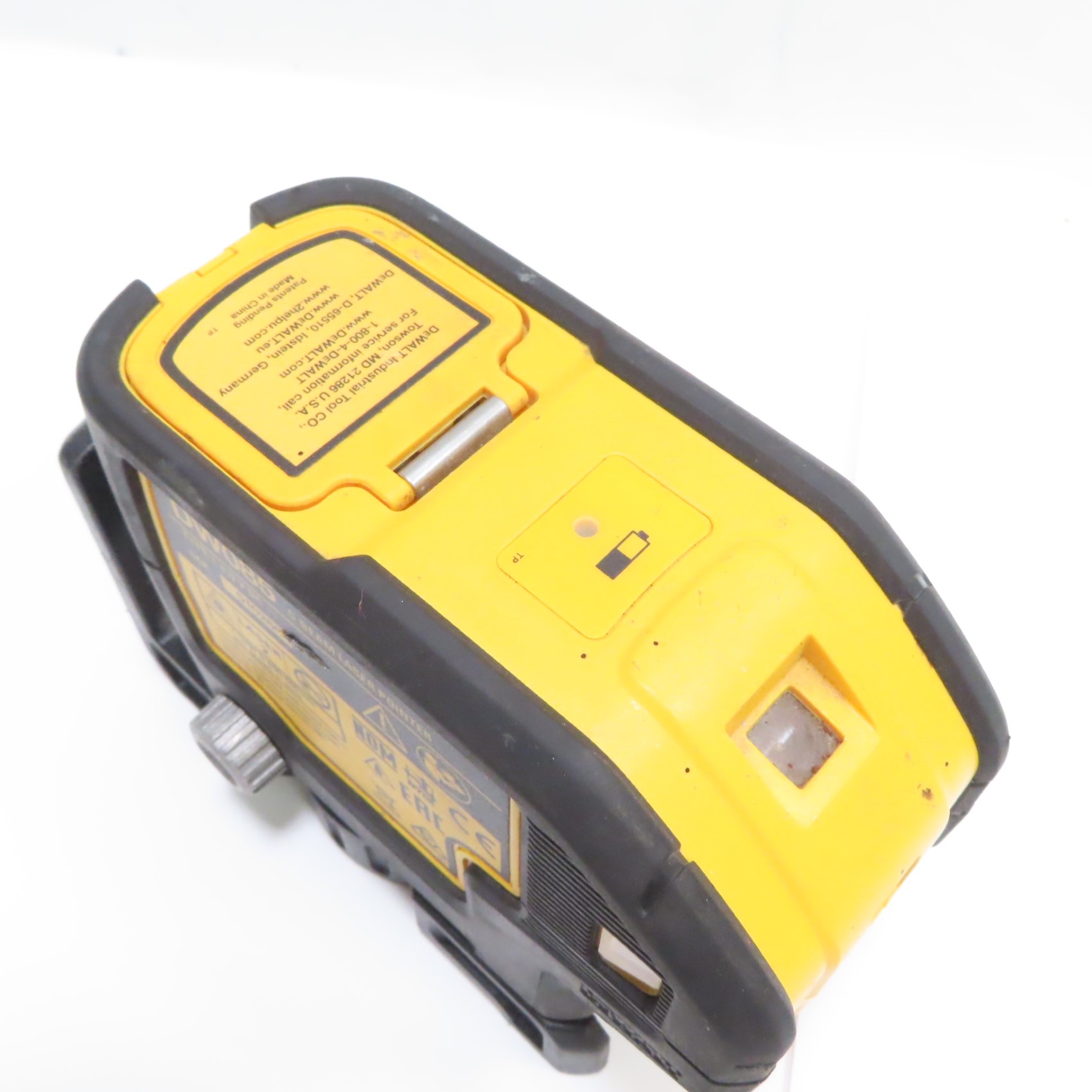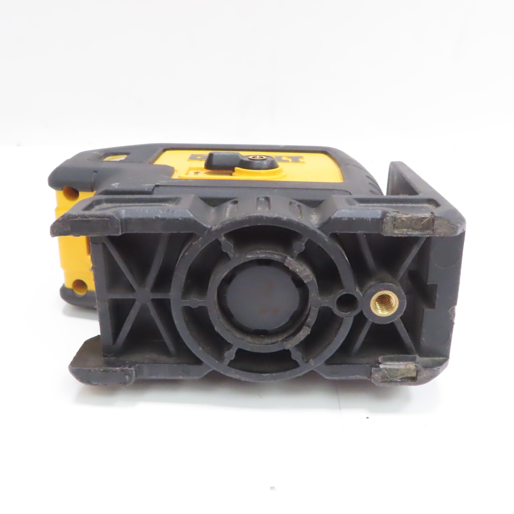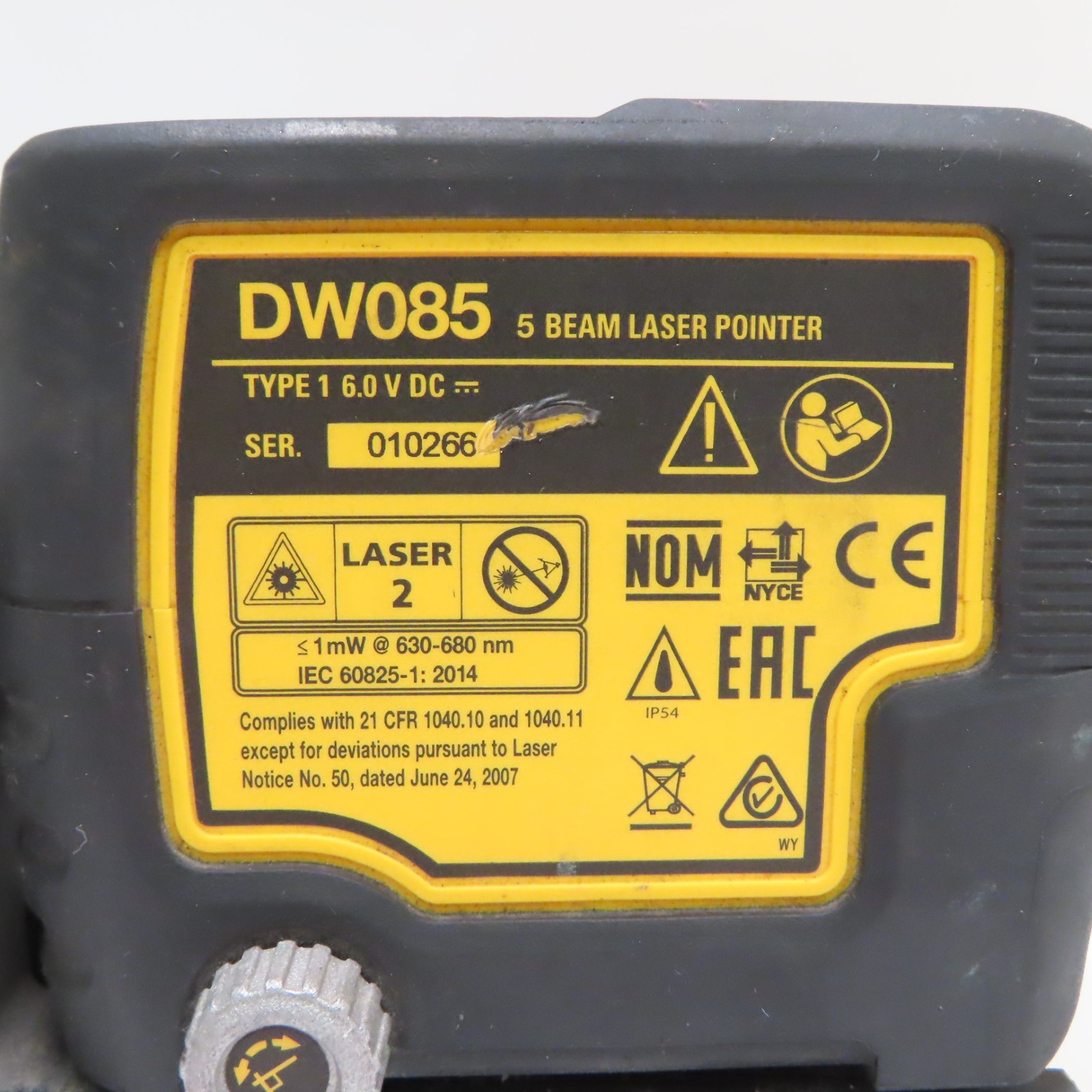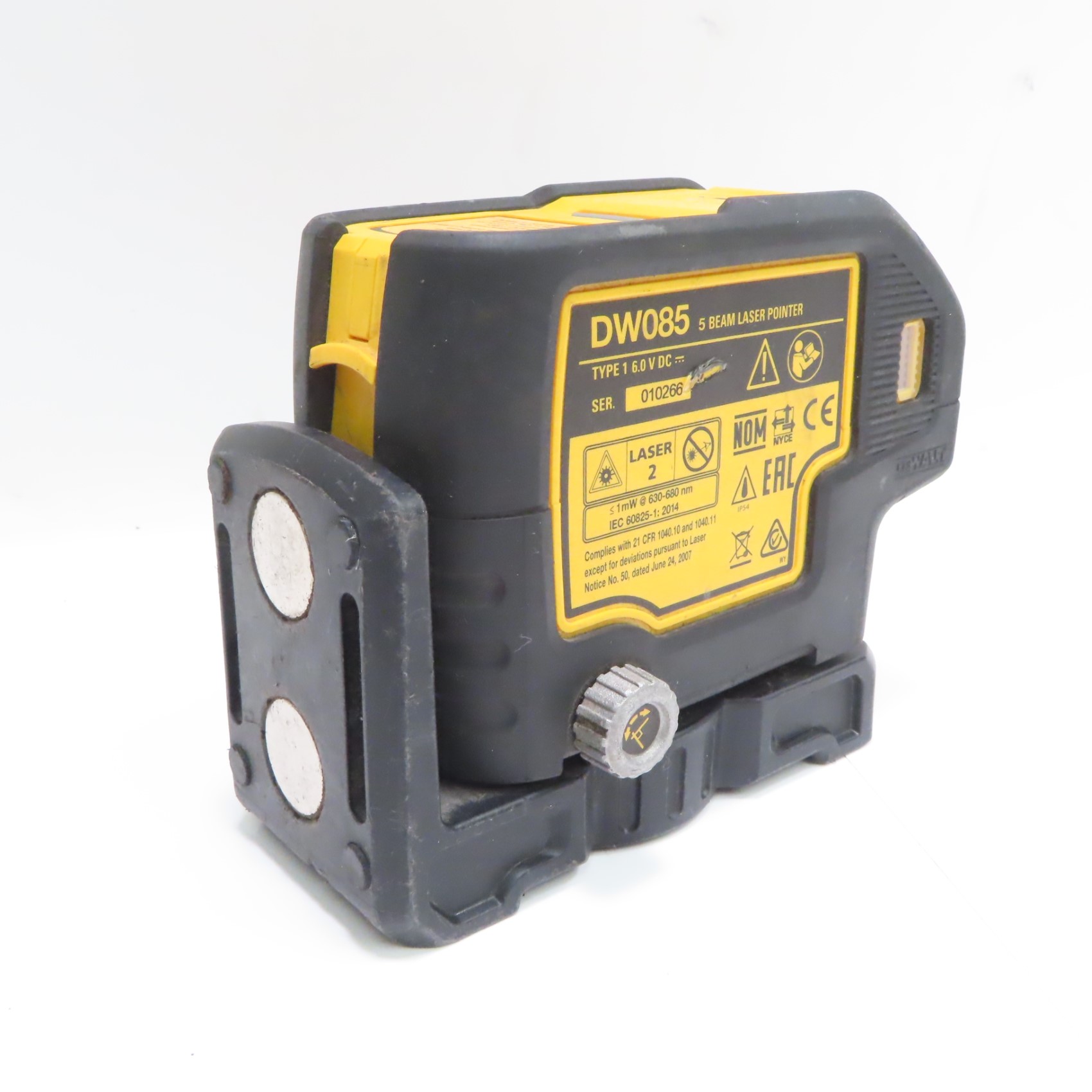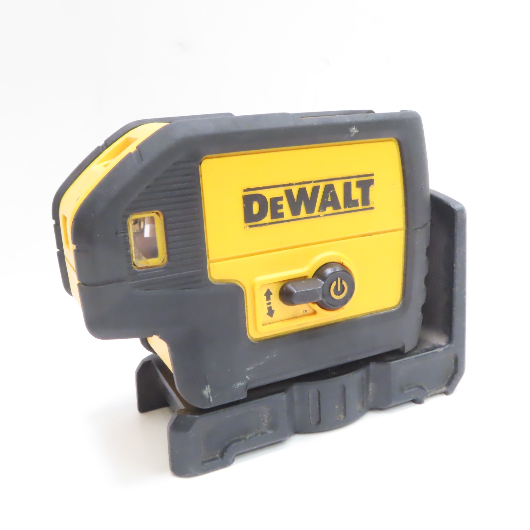Projects down beam with raised clearance, providing laser-dot visibility and alignment for wall track layout