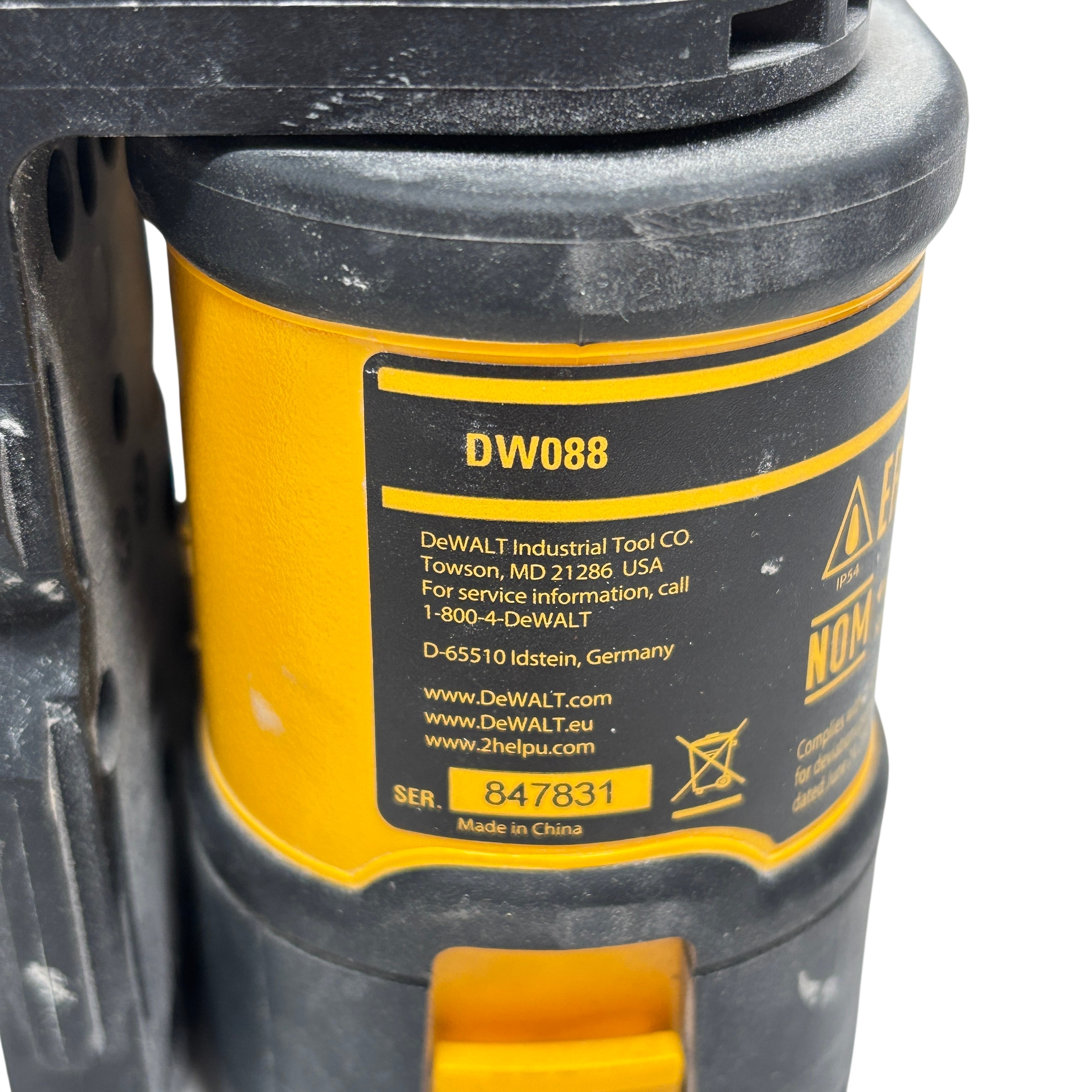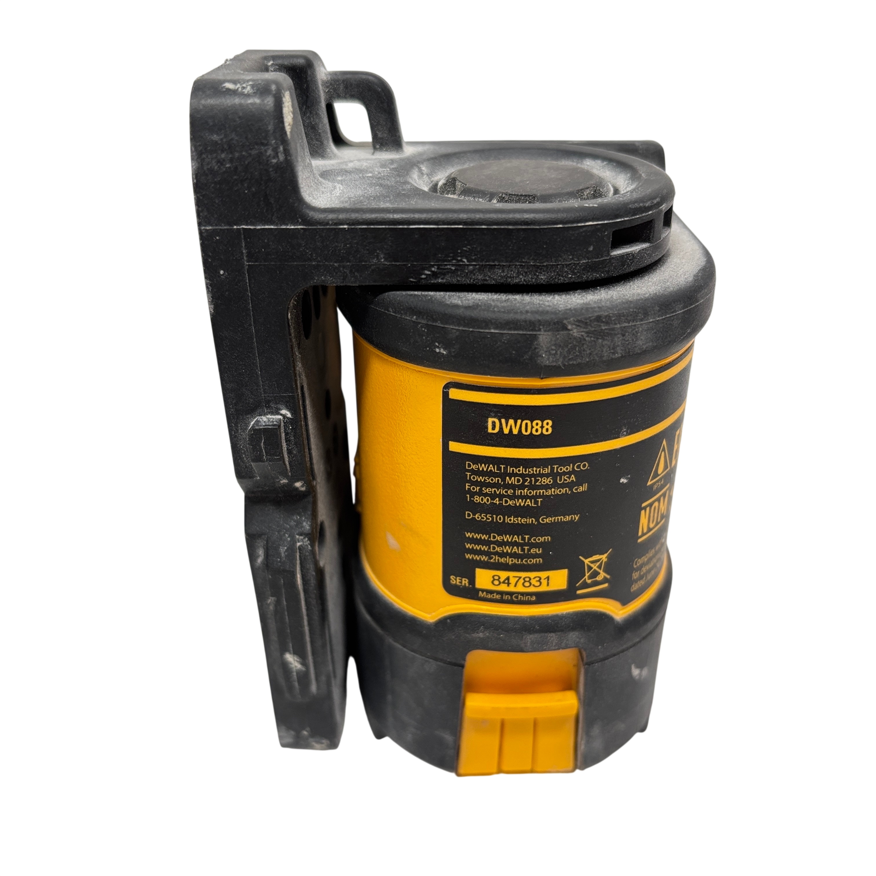 The DeWalt DW088 Laser Level is a professional-grade self-leveling laser tool designed for precise horizontal and vertical alignment. This laser level emits a Class 2 laser with power under 3mW at a wavelength of 630-680 nm, meeting IEC 60825-1:2014 safety standards. The compact unit comes with a mounting bracket and a rugged carrying case, making it ideal for construction, carpentry, and layout tasks. Its durable design and easy-to-use controls provide reliable accuracy and convenience on the job site.