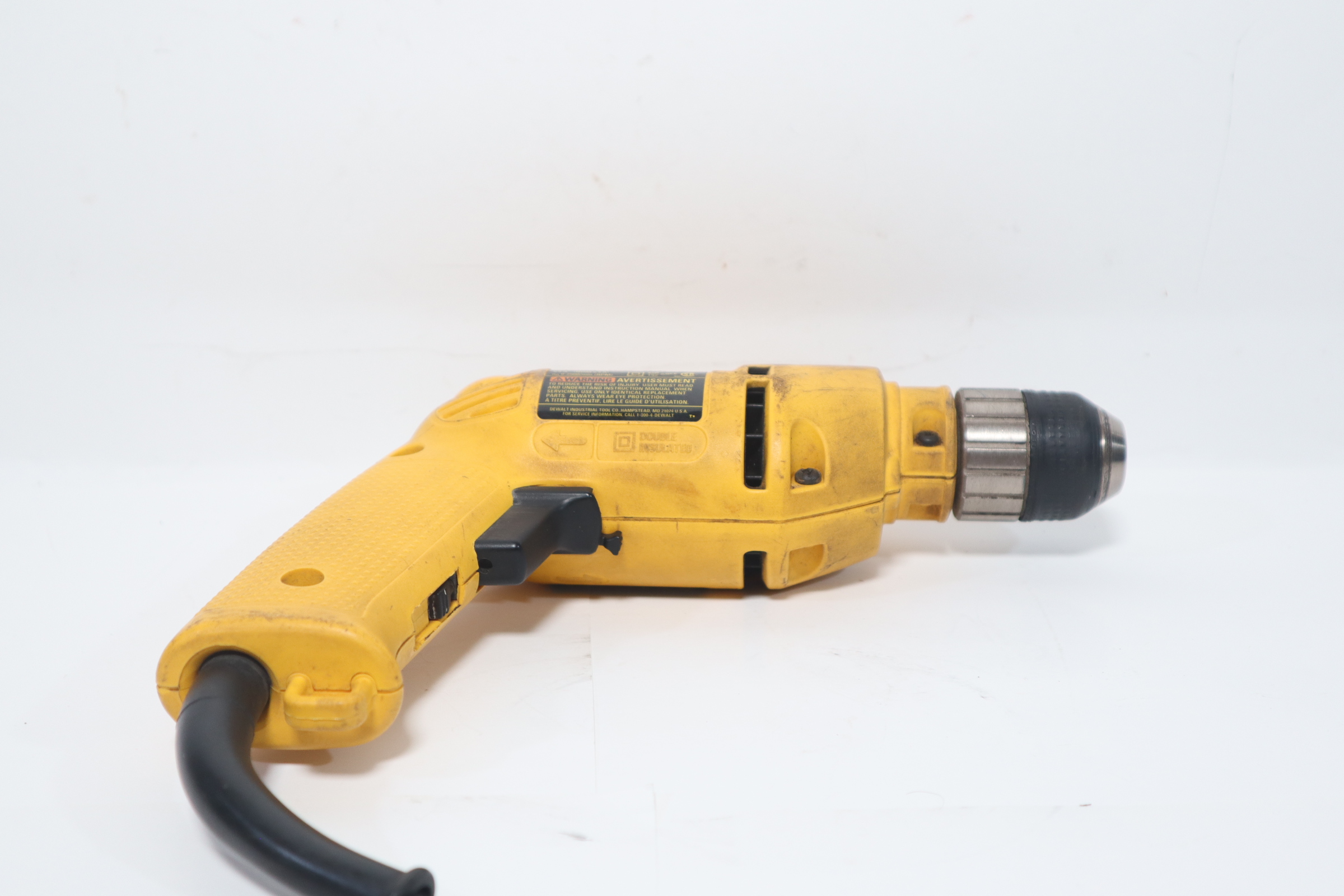 This corded drill was previously owned. It shows signs of normal use. It is in good condition. It has been tested and works. The tool has some scratches and scuff marks on it.
