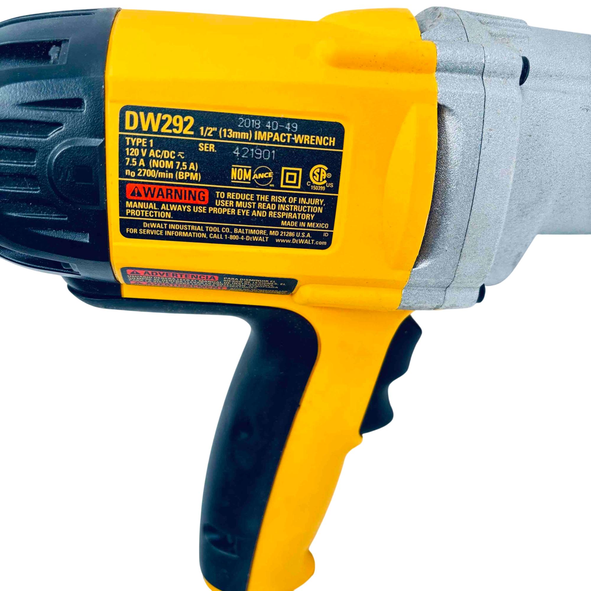 Unleash the power of the DeWalt DW292 1/2" Impact Wrench, a must-have for any serious toolkit. This corded electric power tool delivers consistent performance with its robust 7.5 Amp motor, designed for heavy-duty applications. With its striking yellow and black design, ergonomic grip, and reliable torque, it’s perfect for tackling the toughest jobs efficiently and comfortably.