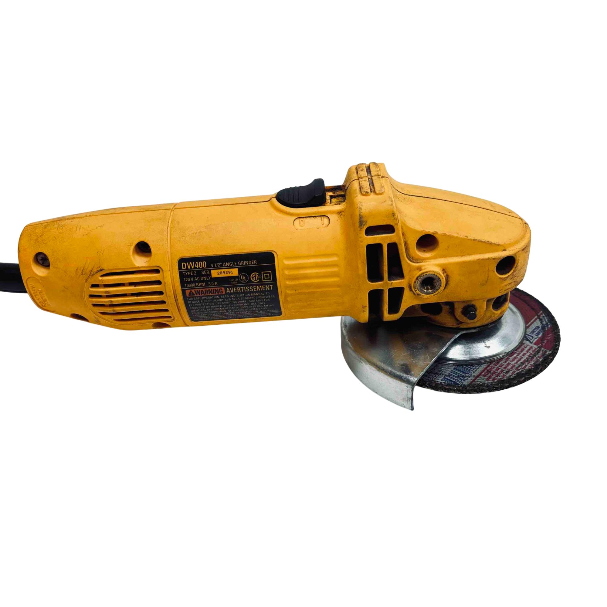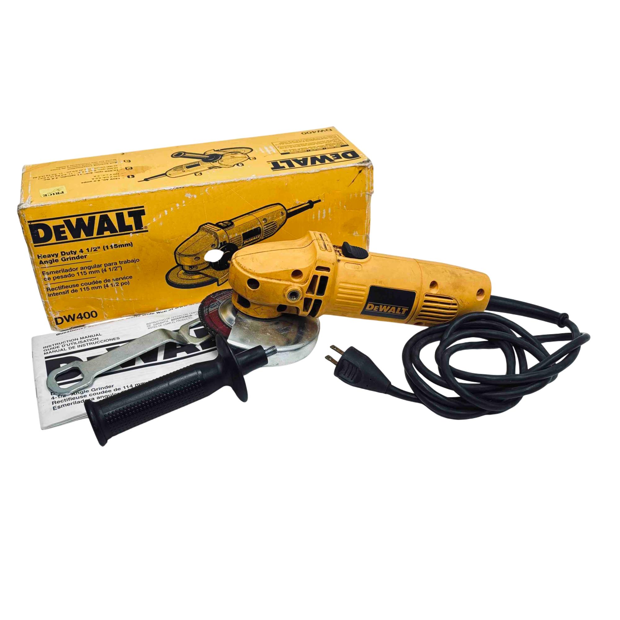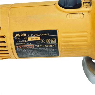 The DeWalt DW400 4-1/2" Angle Grinder is a durable and reliable power tool, perfect for cutting, grinding, and surface preparation on a variety of materials. Featuring a 120V motor that delivers 10,000 RPM and a robust ergonomic design, this DeWalt grinder is widely trusted by both professionals and DIY enthusiasts for its safety features and performance. Lightly used, it remains an excellent, cost-effective choice for anyone in need of an industrial-grade grinder.