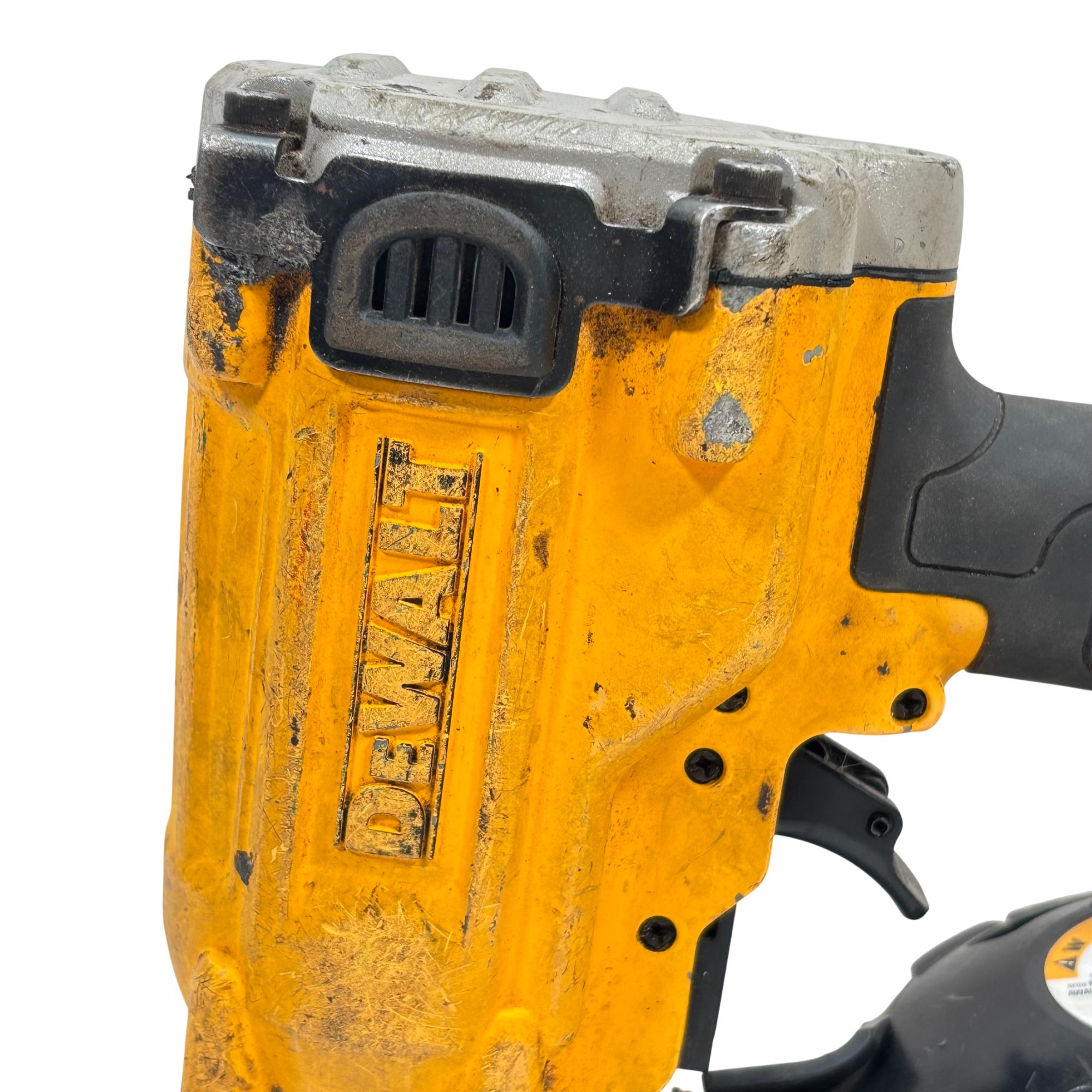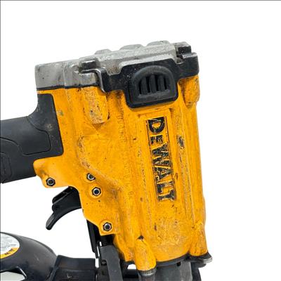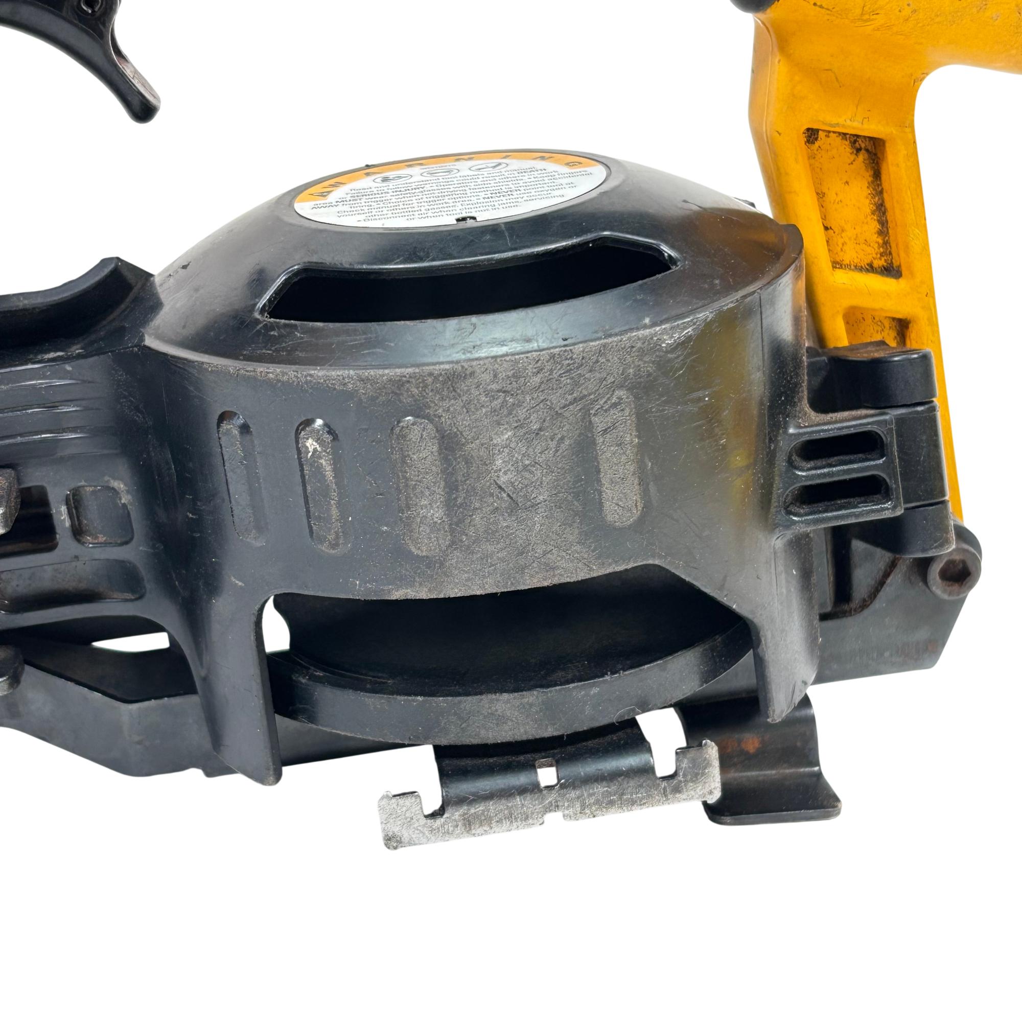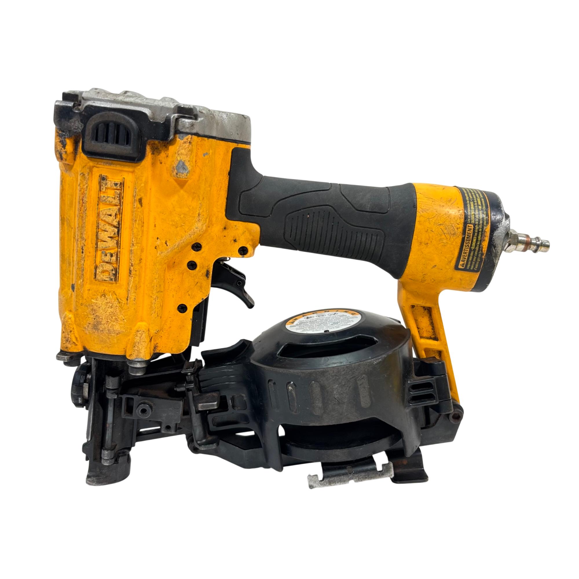 DeWalt DW45RN 0.120" Diameter 15° Pneumatic Coil Roofing Nailer is a heavy-duty tool designed for precise roofing applications. It features a 15-degree angled magazine for coil nails up to 1 3/4 inches, delivering consistent and efficient performance. Built for professional use, this pneumatic nailer combines durability with ergonomic handling for optimal control during extended tasks.