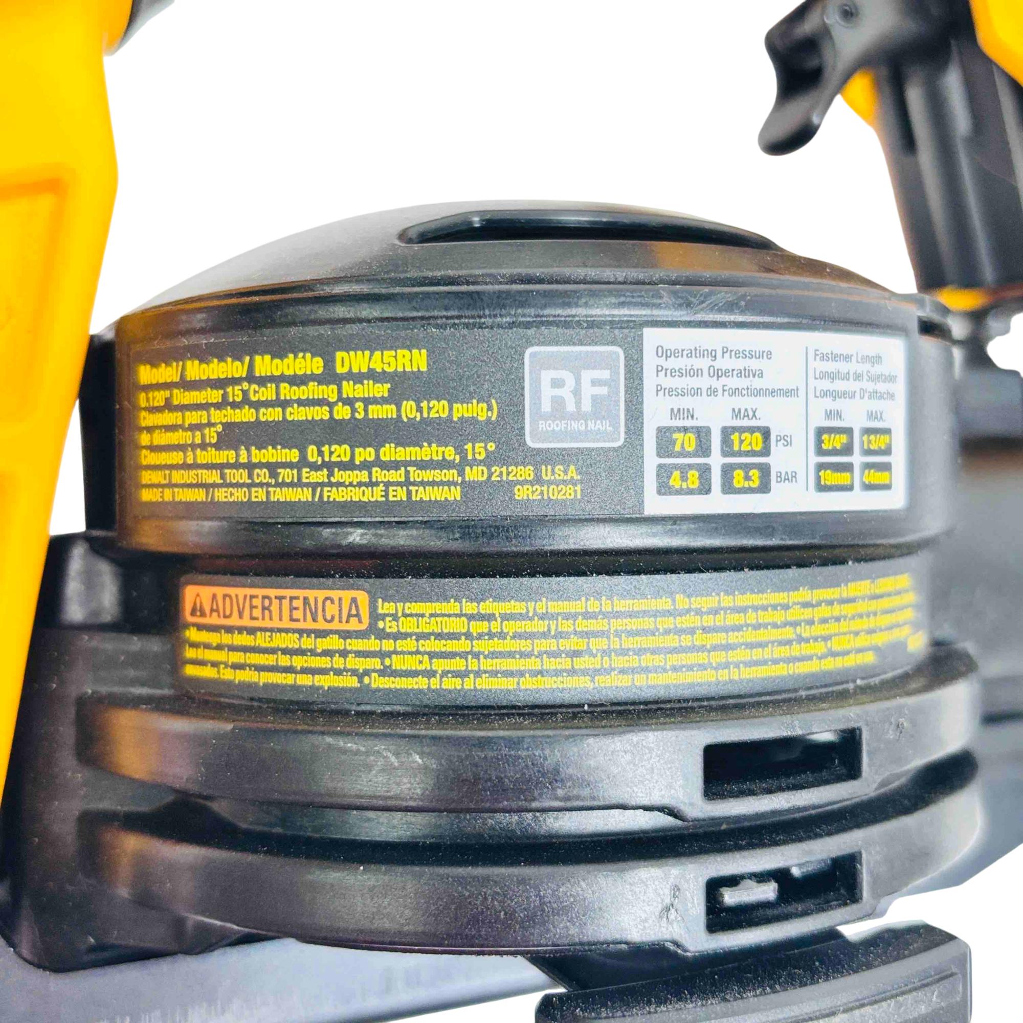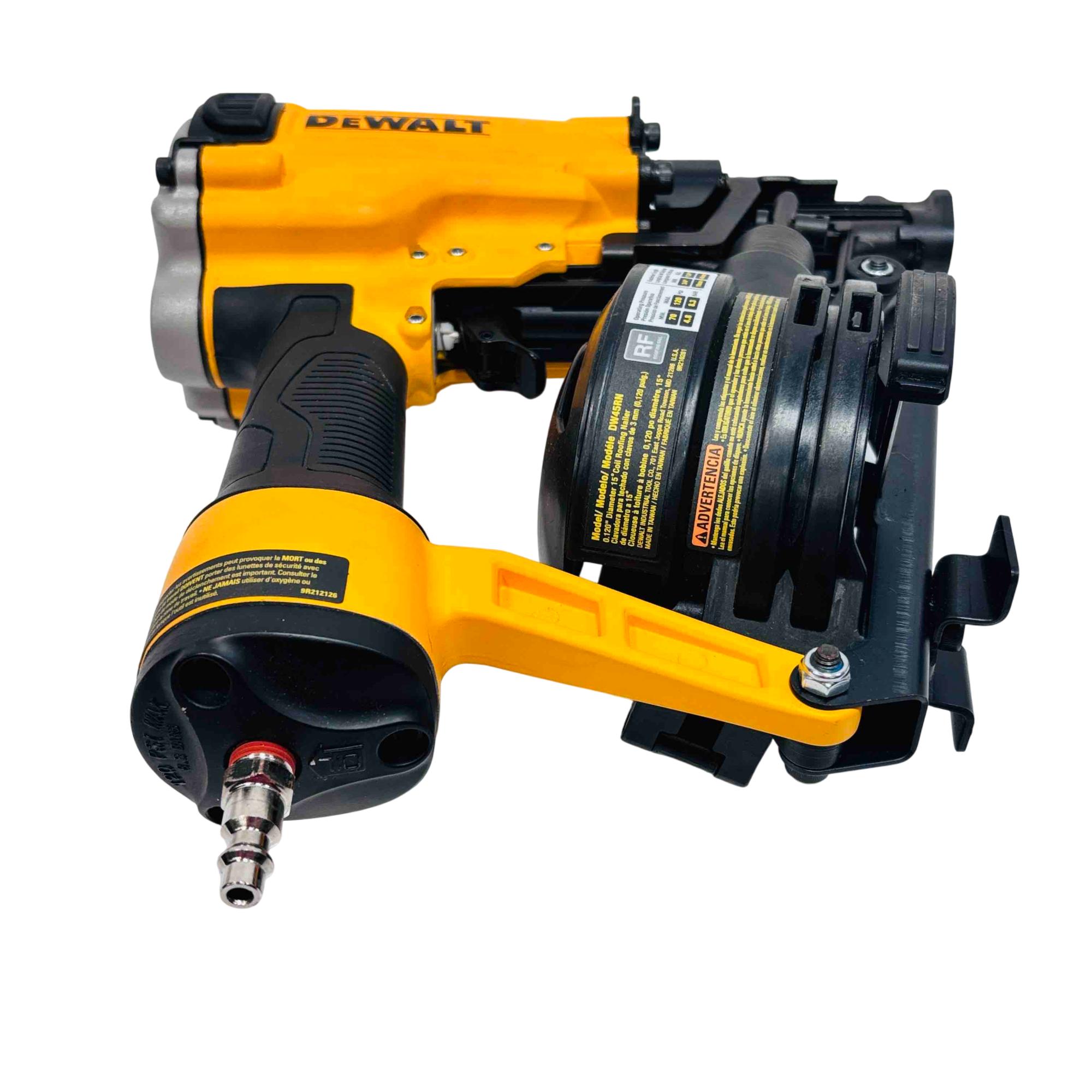 The DeWalt DW45RN Pneumatic Roofing Nailer is engineered for professionals seeking superior durability and performance. Designed with a lightweight, ergonomic build, it features a high-speed valve technology for rapid firing, making it ideal for asphalt shingle roofing and other demanding construction tasks. Built to last with a robust metal housing and backed by DeWalts trusted reliability, this tool ensures precise and efficient operation on every job site.