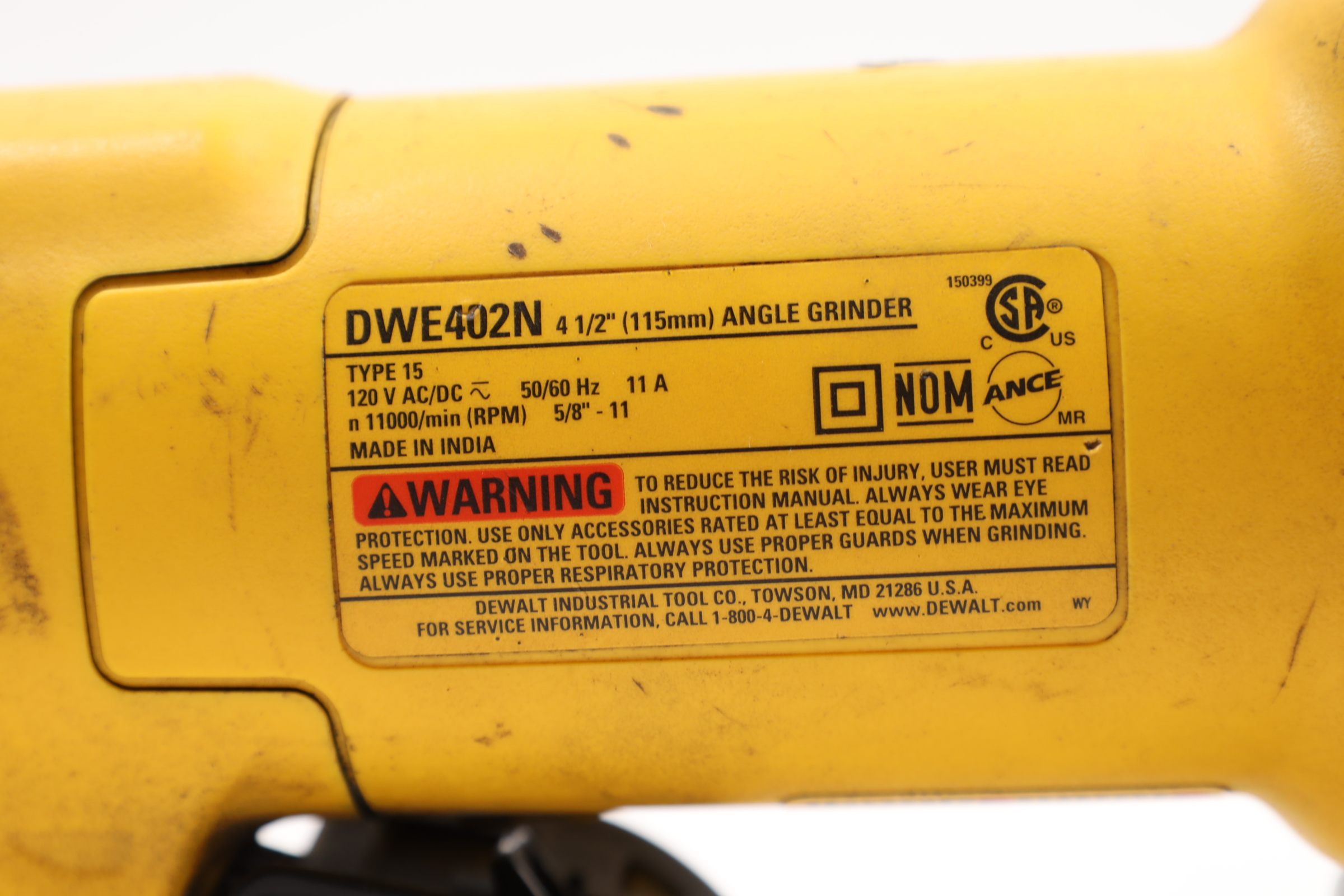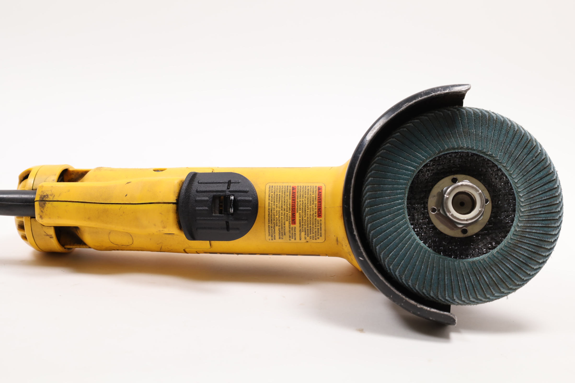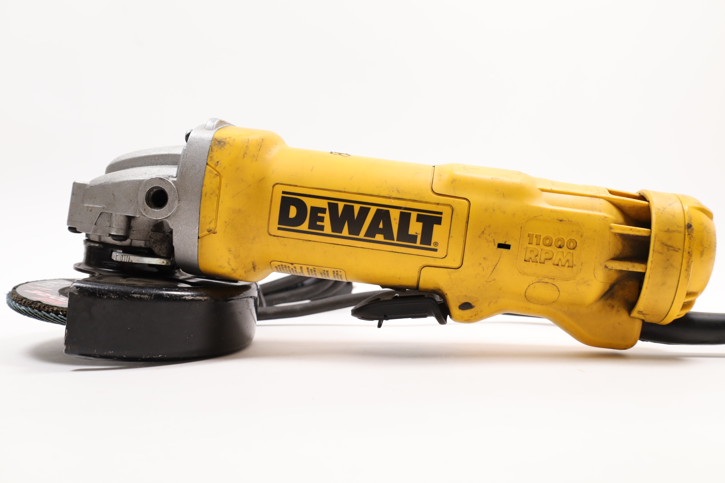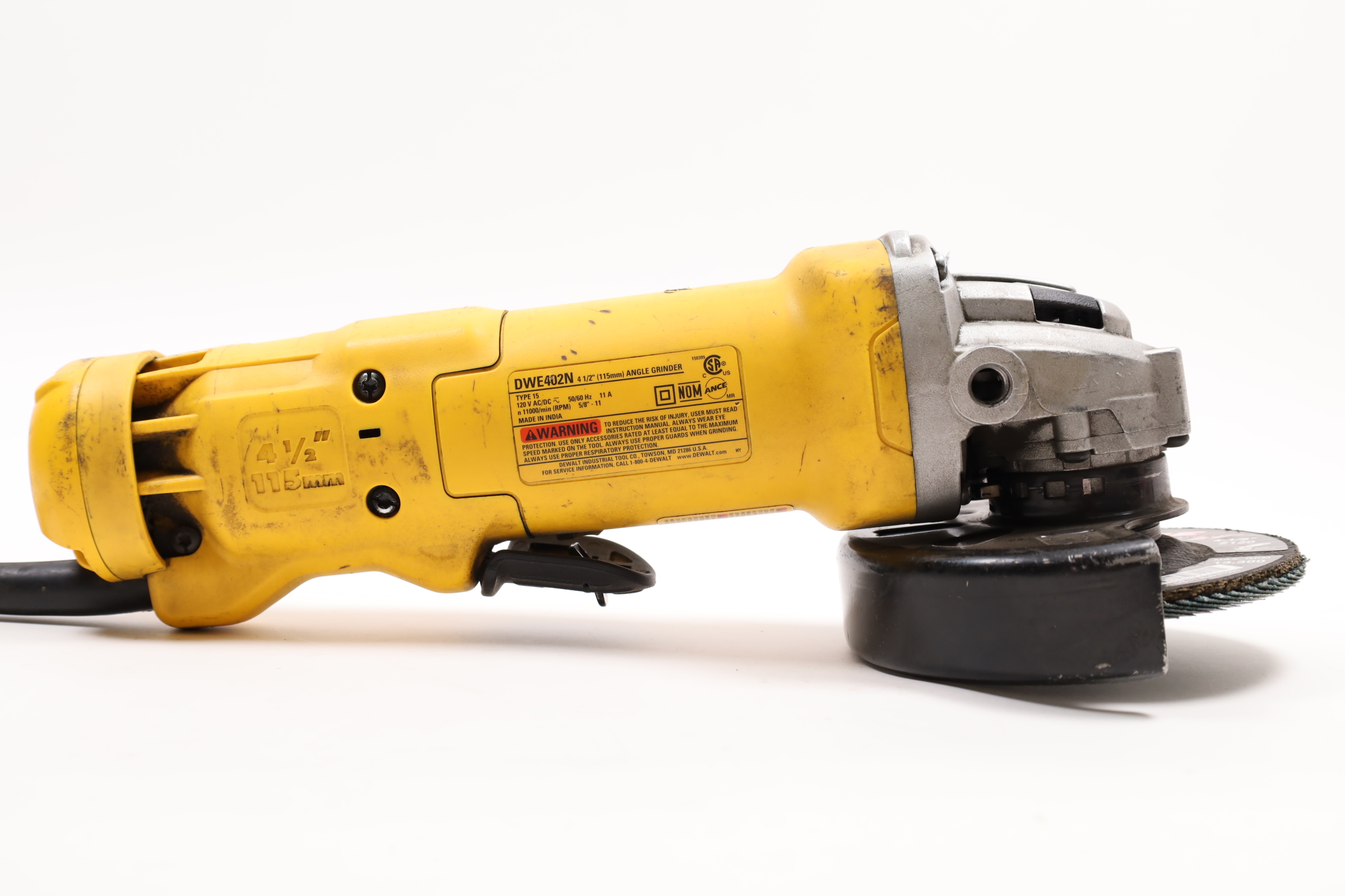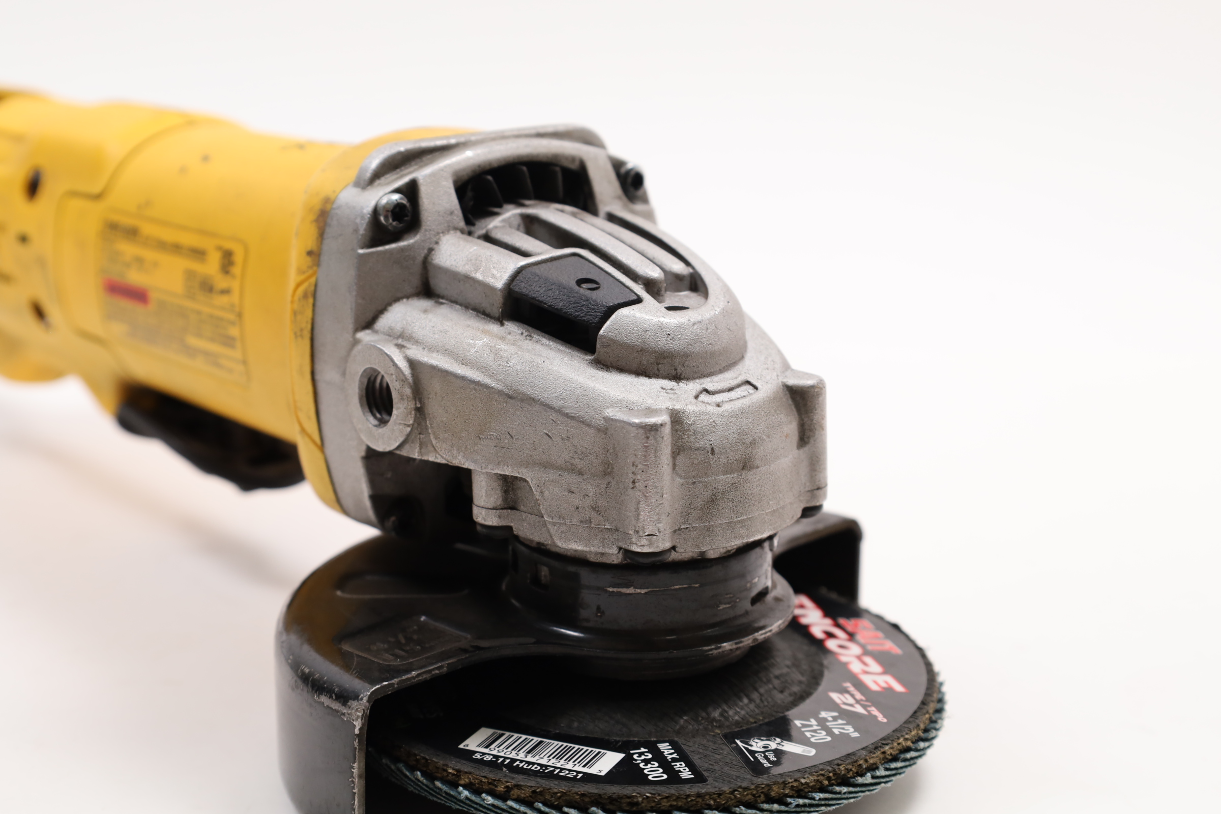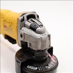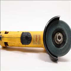 A versatile and robust tool designed for a range of grinding applications. It's powered by an 11 Amp AC/DC motor that delivers 11,000 RPM, providing an excellent power to weight/size ratio. The grinder features a Dust Ejection System for enhanced durability, a One-Touch Guard that allows for 360-degree rotation, and a Quick-Change Wheel Release for tool-free wheel removal. Additional features include a top-mounted and protected spindle lock button, a small gripping surface for optimal comfort, an ergonomic side handle, and auto-off brushes that protect the tool from damage.
