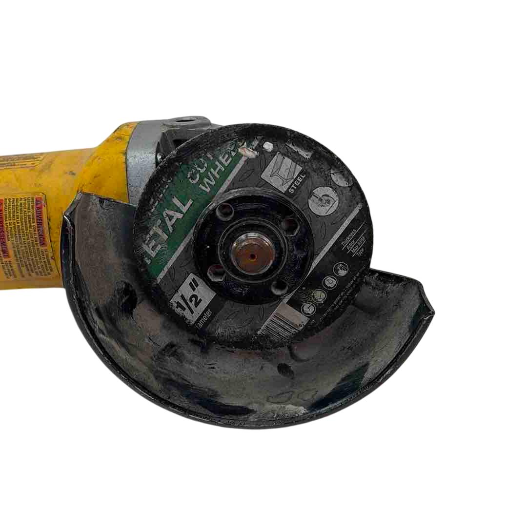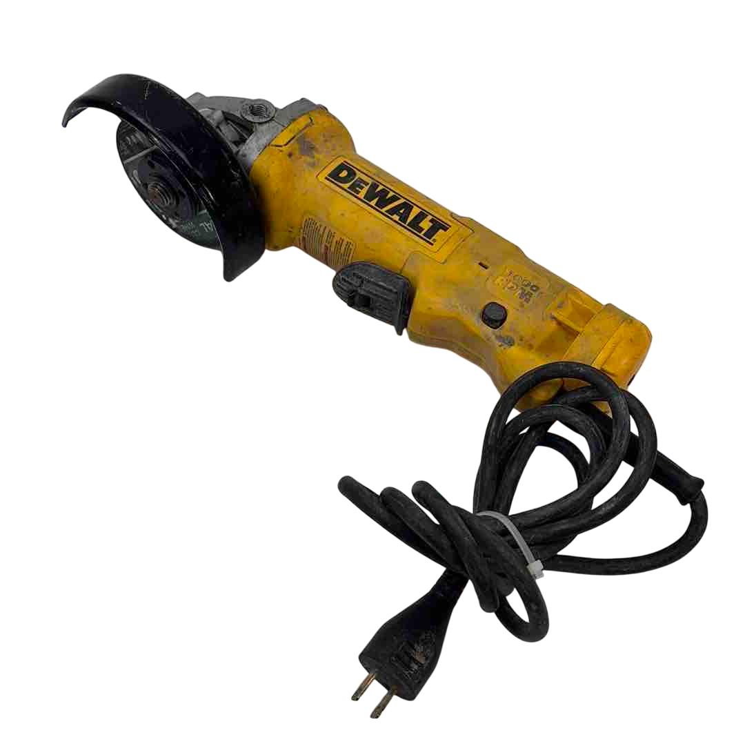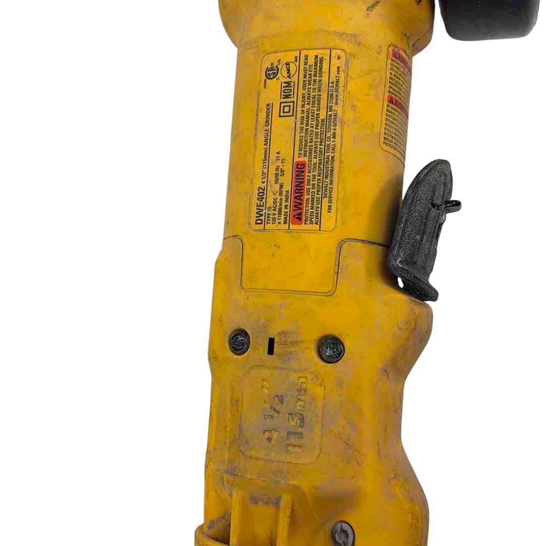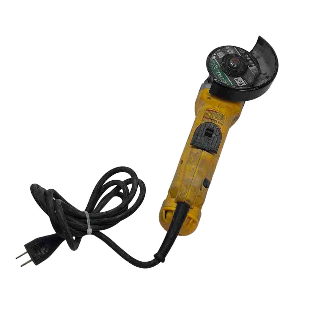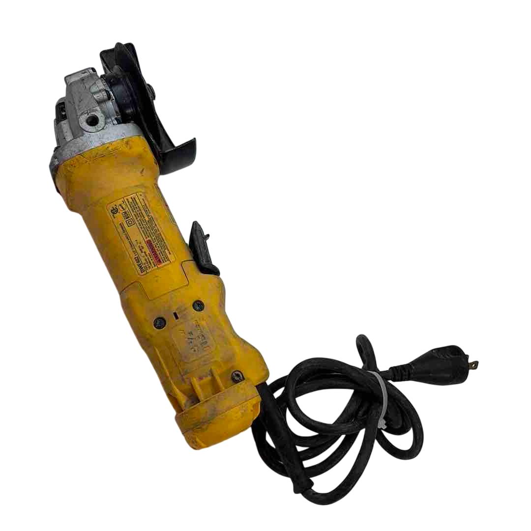 A versatile and robust tool designed for a range of grinding applications. It's powered by an 11 Amp AC/DC motor that delivers 11,000 RPM, providing an excellent power to weight/size ratio. The grinder features a Dust Ejection System for enhanced durability, a One-Touch Guard that allows for 360-degree rotation, and a Quick-Change Wheel Release for tool-free wheel removal. Additional features include a top-mounted and protected spindle lock button, a small gripping surface for optimal comfort, an ergonomic side handle, and auto-off brushes that protect the tool from damage.