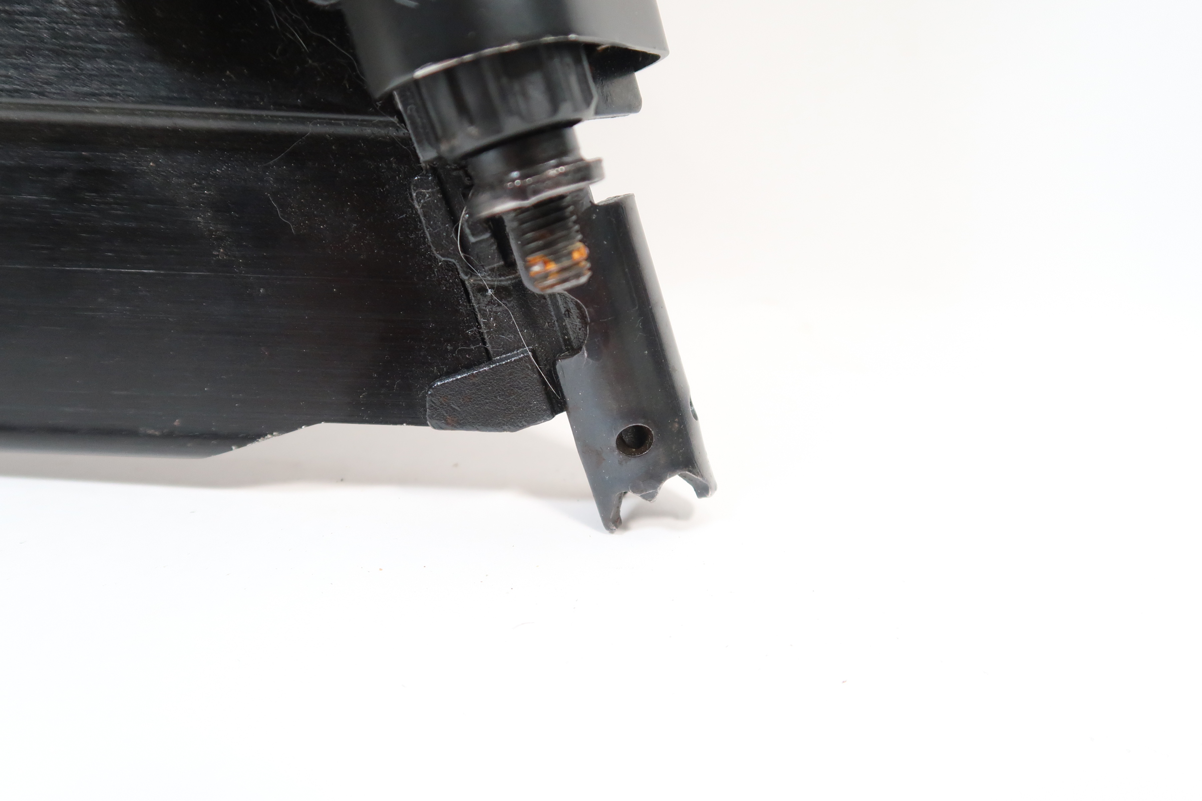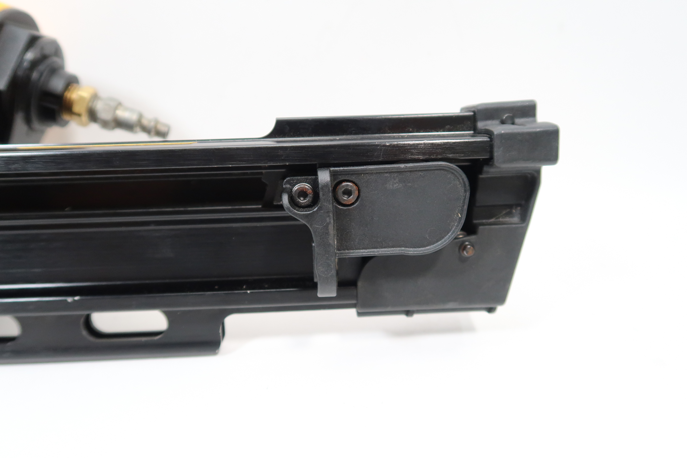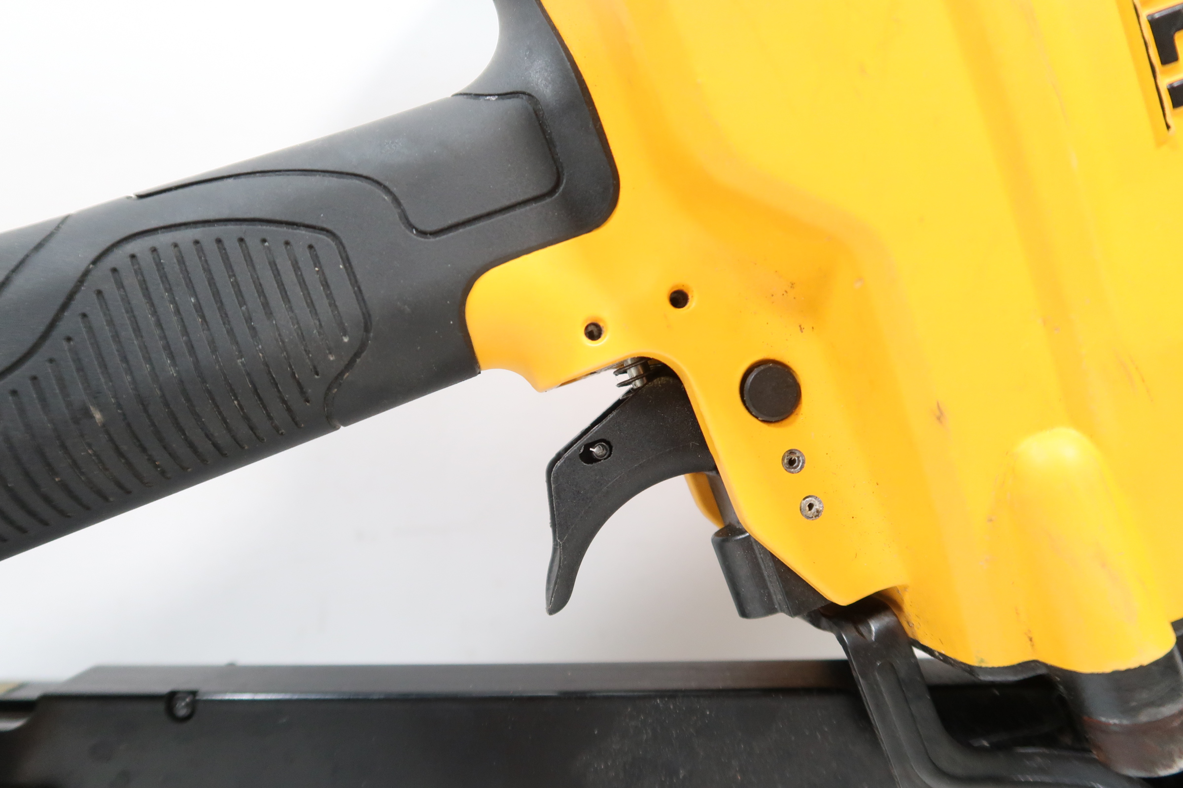 Tool-free depth of drive adjustment, selectable trigger and adjustable rafter hook