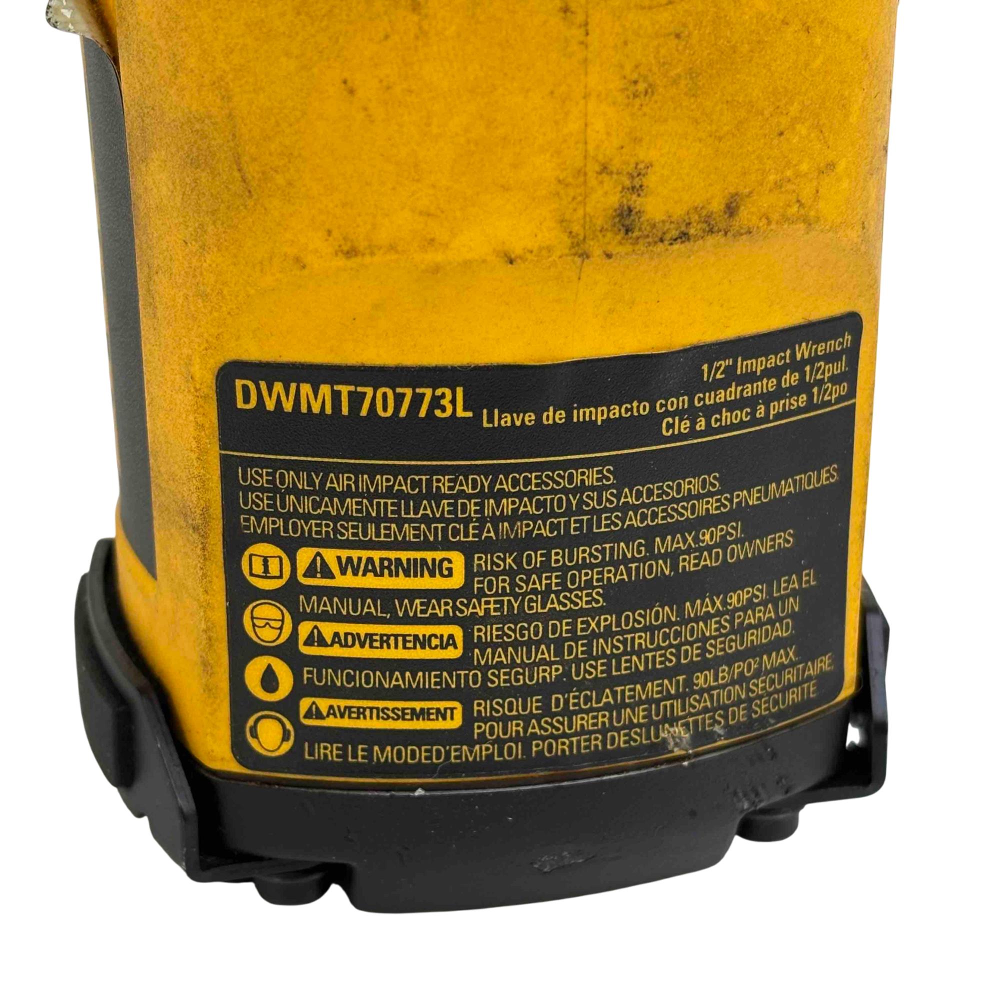 Elevate your toolkit with the DeWalt DWMT70773L 1/2" Pneumatic Impact Wrench, a powerful and reliable tool designed for heavy-duty use. Featuring DeWalts signature black and yellow design, this impact wrench delivers exceptional performance with a maximum pressure of 90 PSI, ensuring precision and efficiency for your toughest projects. Ideal for both professionals and DIY enthusiasts, this tool promises durability and comfort with its ergonomic grip and high-impact design.