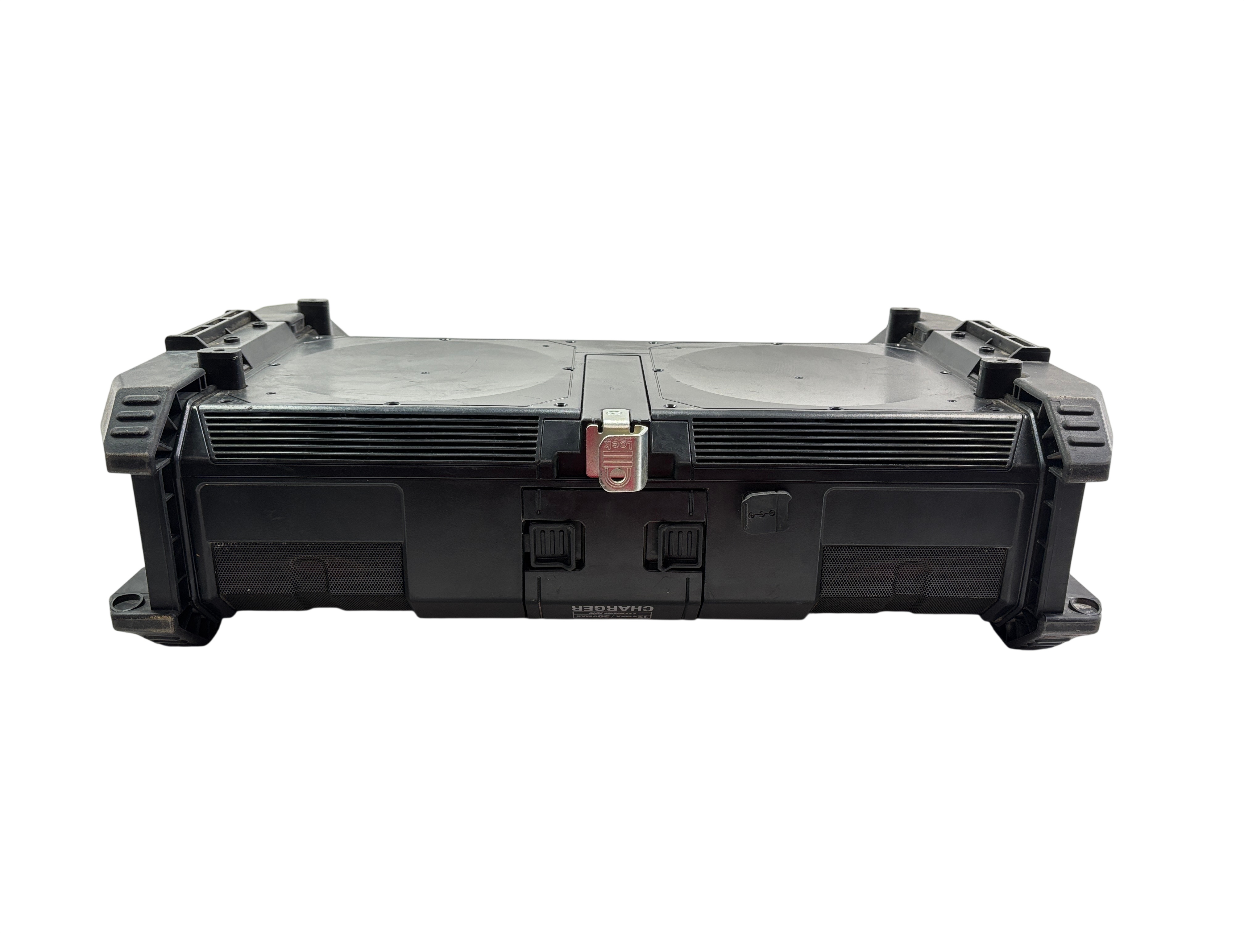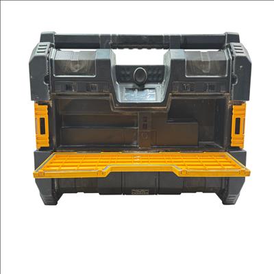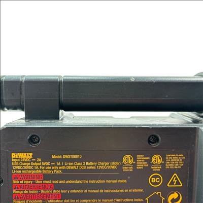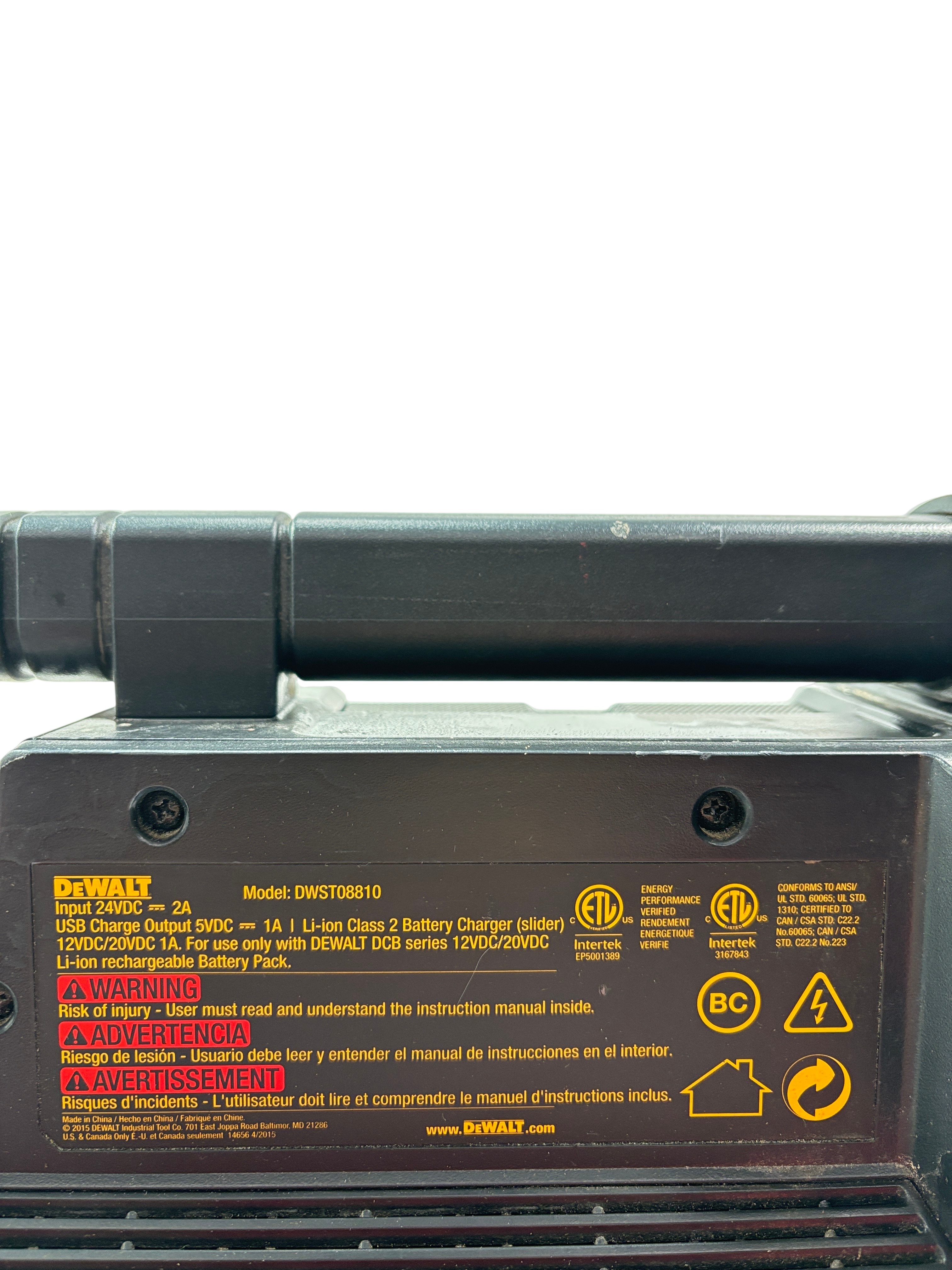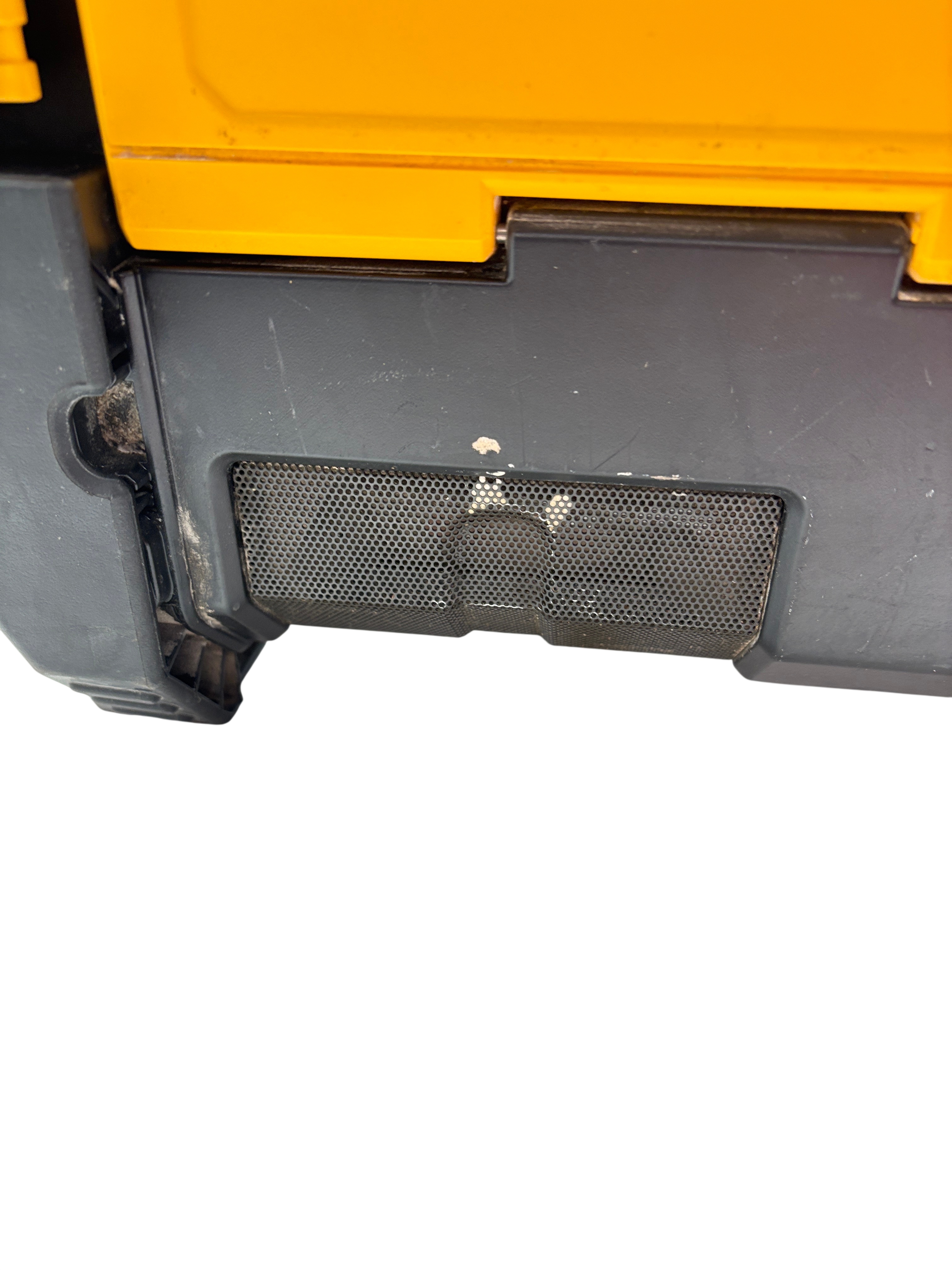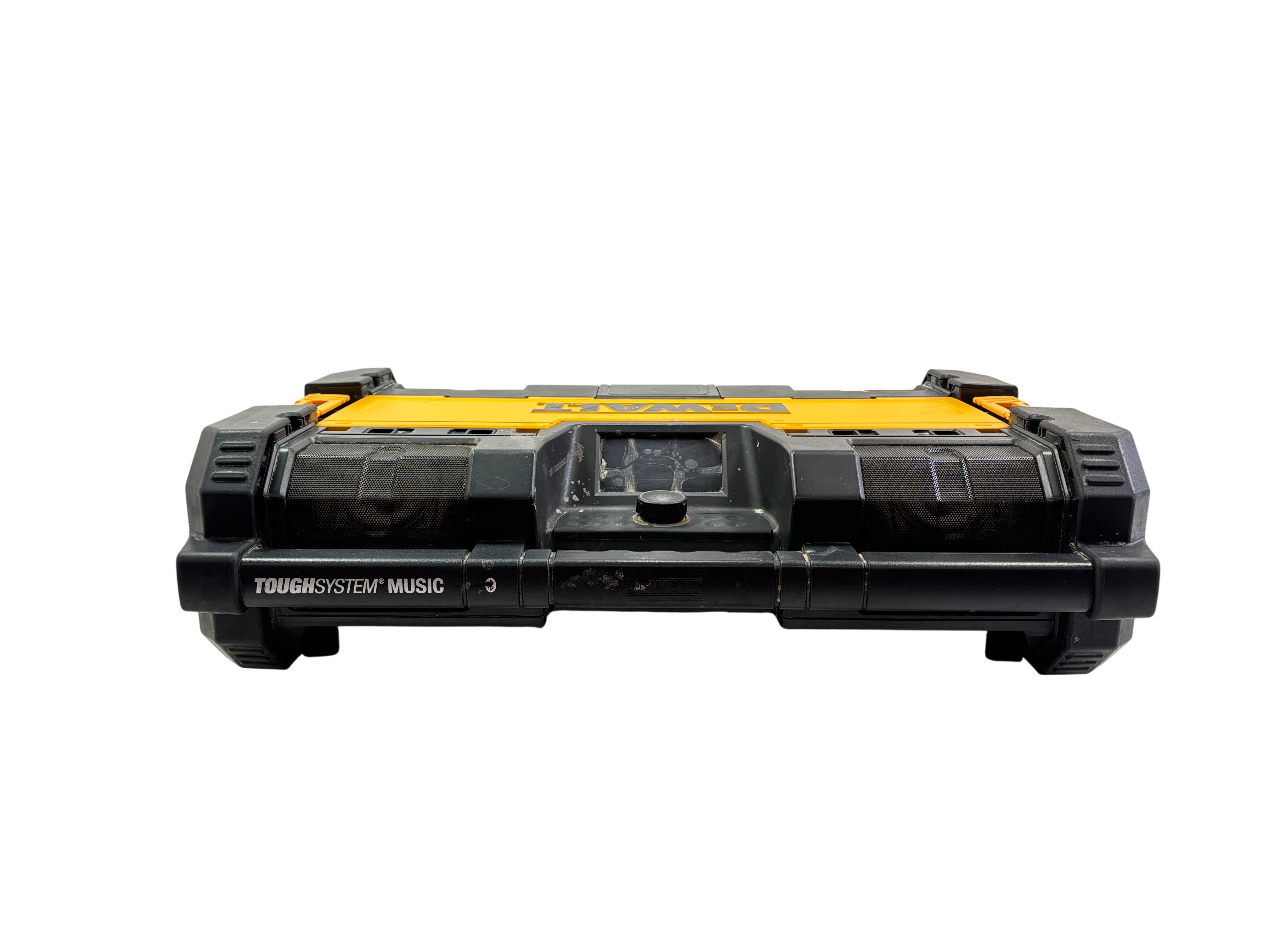The DeWalt DWST08810 Job Site Radio is a rugged and portable audio solution designed for tough job site environments. Compatible with DEWALT DCB series 12V and 20V lithium-ion rechargeable battery packs, this radio features Bluetooth connectivity for wireless streaming, an AM/FM tuner, and a USB port for charging mobile devices. Its durable yellow and black housing includes a convenient carry handle and a digital display with preset station buttons for easy operation. Ideal for professionals seeking reliable audio and device charging on the go, this radio delivers powerful sound and versatile functionality in a compact form factor.