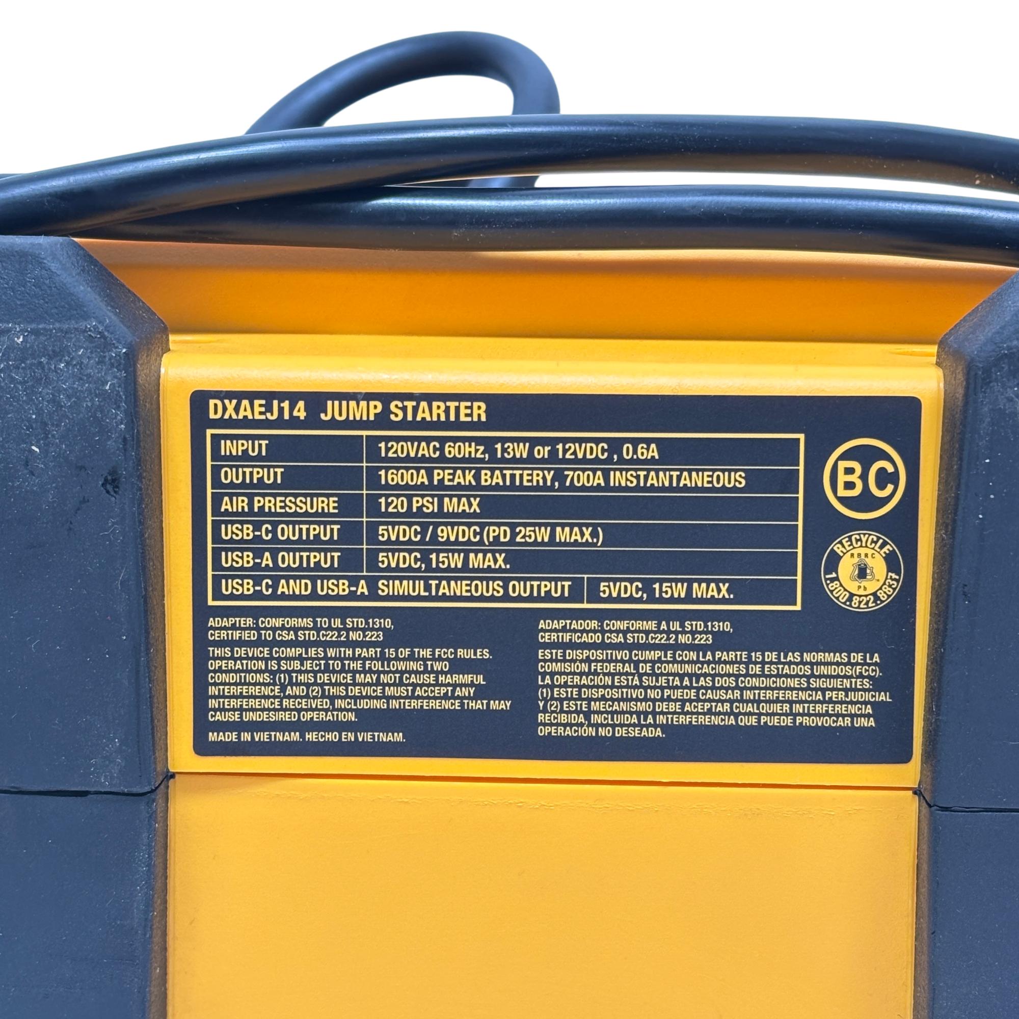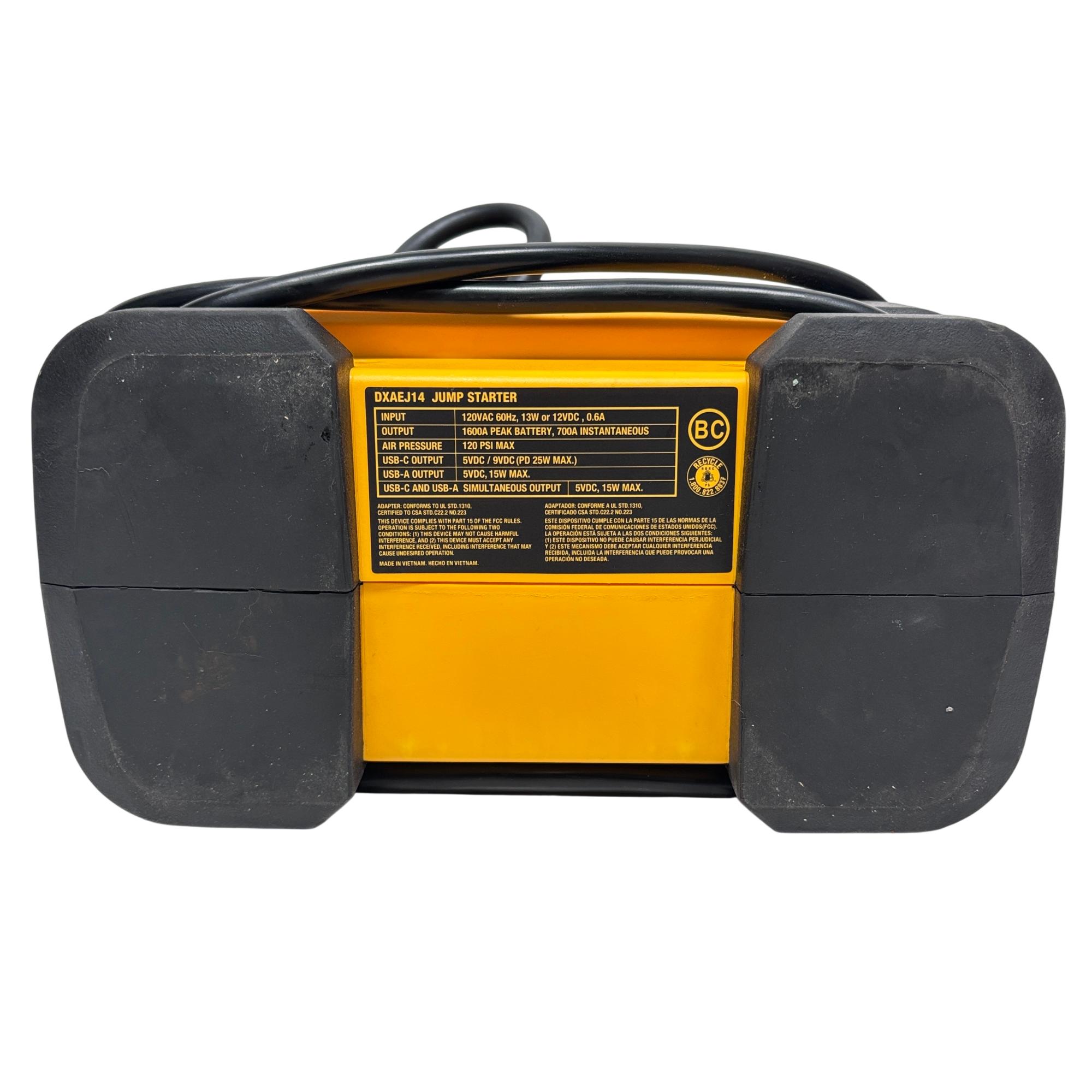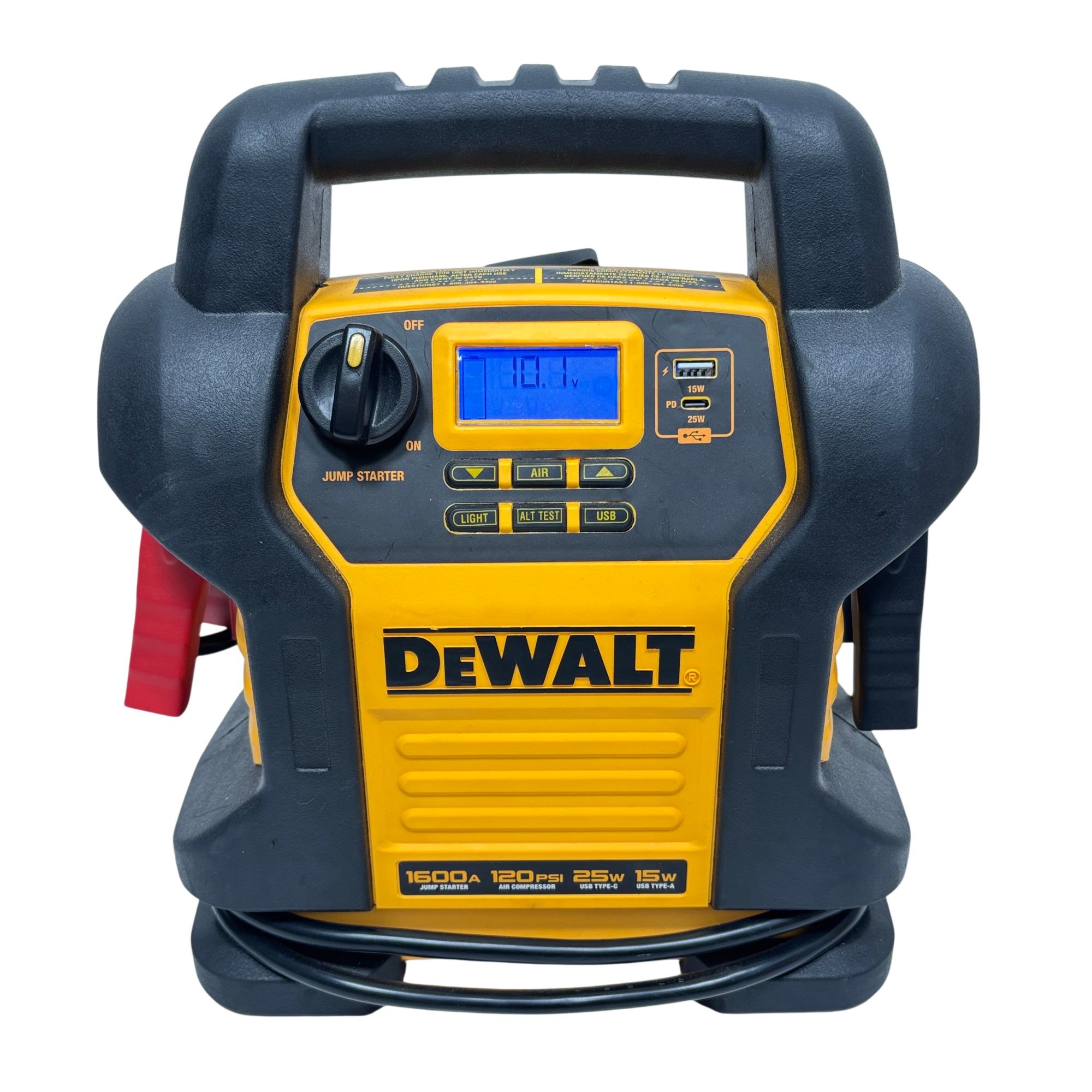 This 1400 Peak Amp rechargeable jump starter is perfect for many large V8 engines. It delivers 700 instant amps of jump-starting power. It includes a patented alternator check function. The reverse polarity alarm to alert you if the clamps are hooked up incorrectly. An included 120-psi digital air compressor has an auto-stop functionality. This jump features a Sure Fit nozzle for accuracy. An LCD screen provides real-time information. Operate in dark environments with the LED area lights. If you need portable power for your cell phone, tablet or other small electronic device, this jump starter has two 3.1 Amp USB outlets provided.