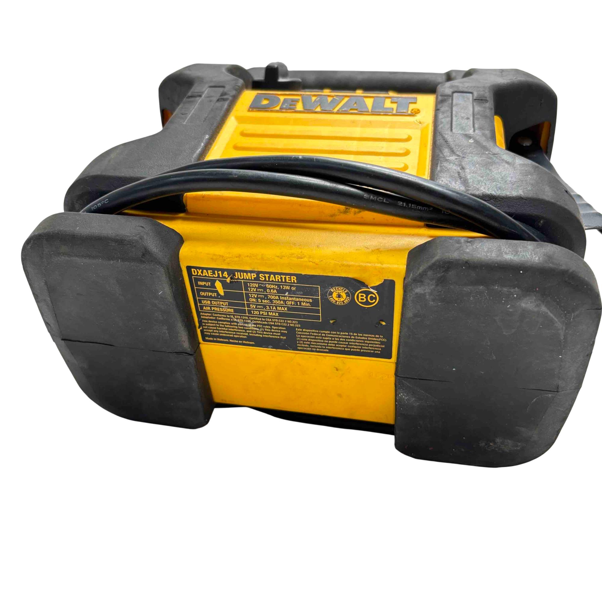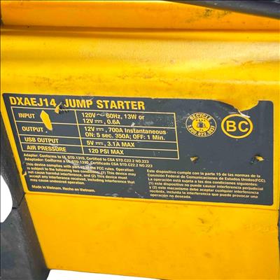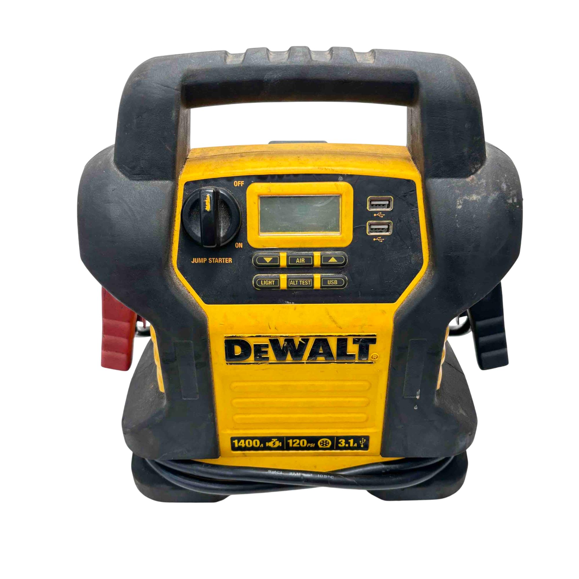 The DeWalt DXAEJ14 is a robust jump starter and portable power station designed for automotive and emergency use. Delivering up to 1400 peak amps and featuring a built-in 120 PSI air compressor, dual USB charging ports, and a digital LCD display, it offers reliable performance for jump-starting vehicles, inflating tires, and charging electronics. Crafted by DeWalt, this tool is perfect for car owners who want peace of mind on the road.