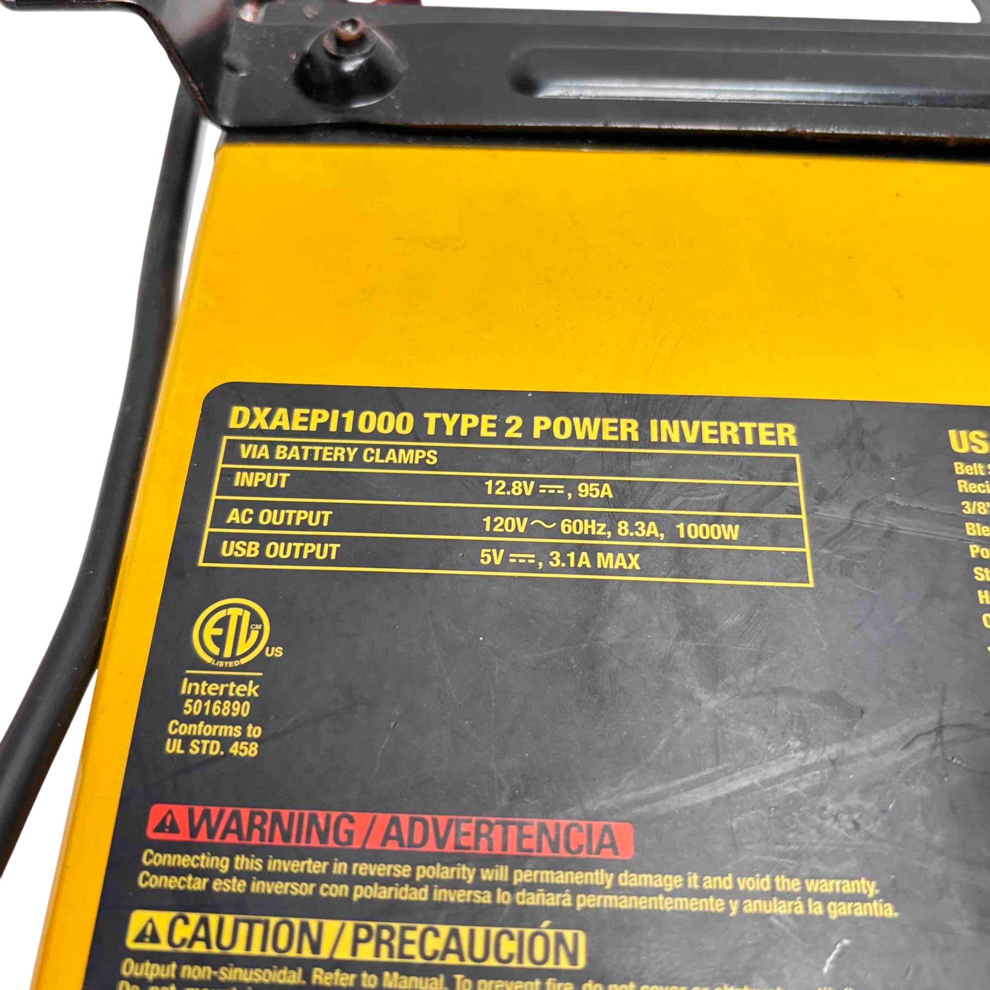 Power up your devices with the DeWalt DXAEPI1000 1000W Power Inverter. This reliable inverter features a robust 1000W of continuous power, making it perfect for powering tools, electronics, and more directly from your vehicle. Equipped with battery clamps and USB output, it offers versatility and convenience for all your power needs on-the-go.
