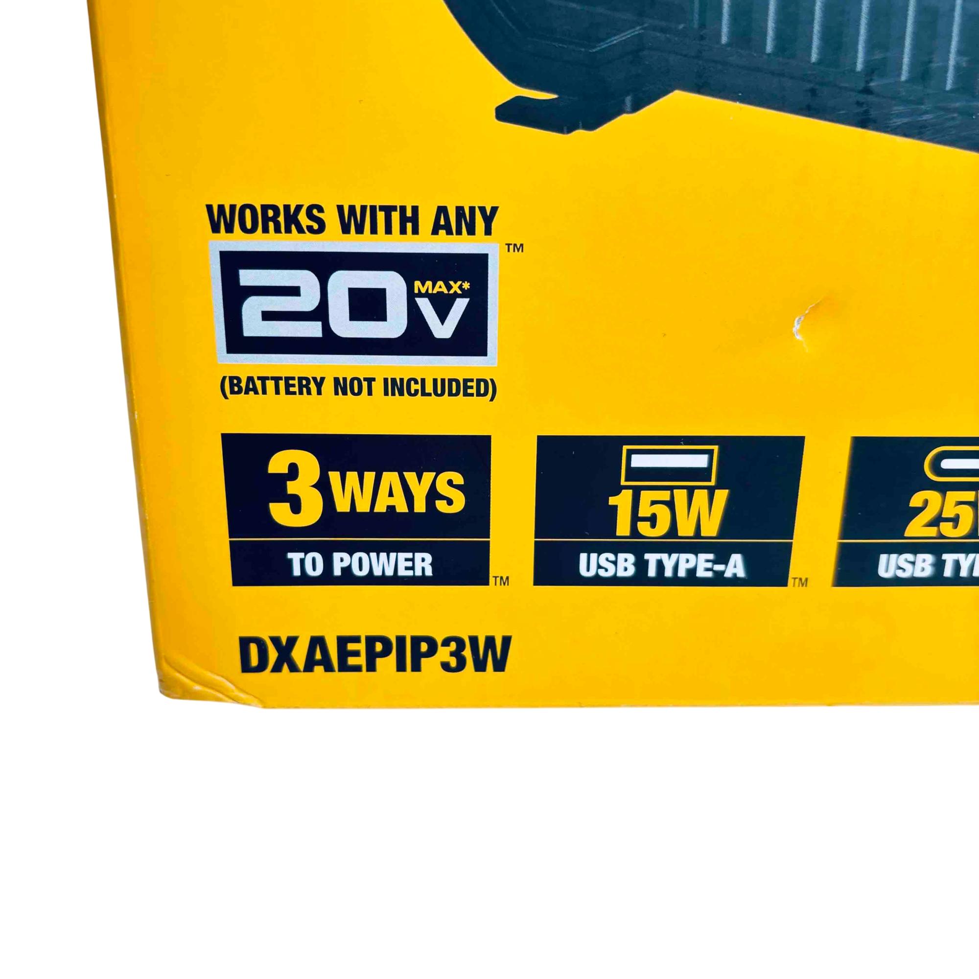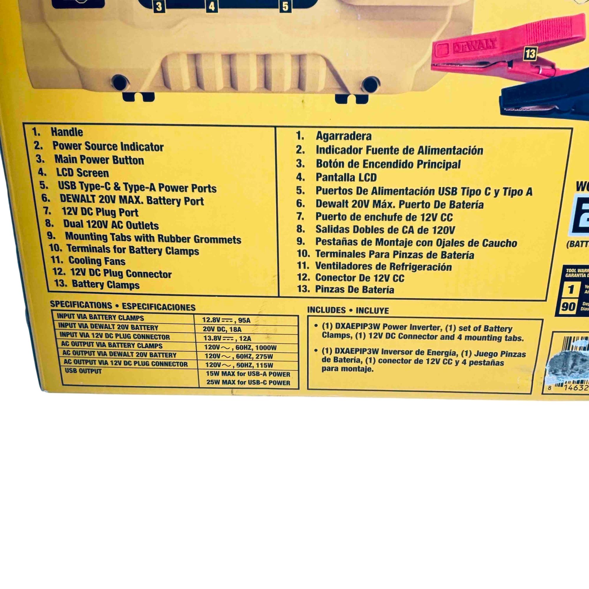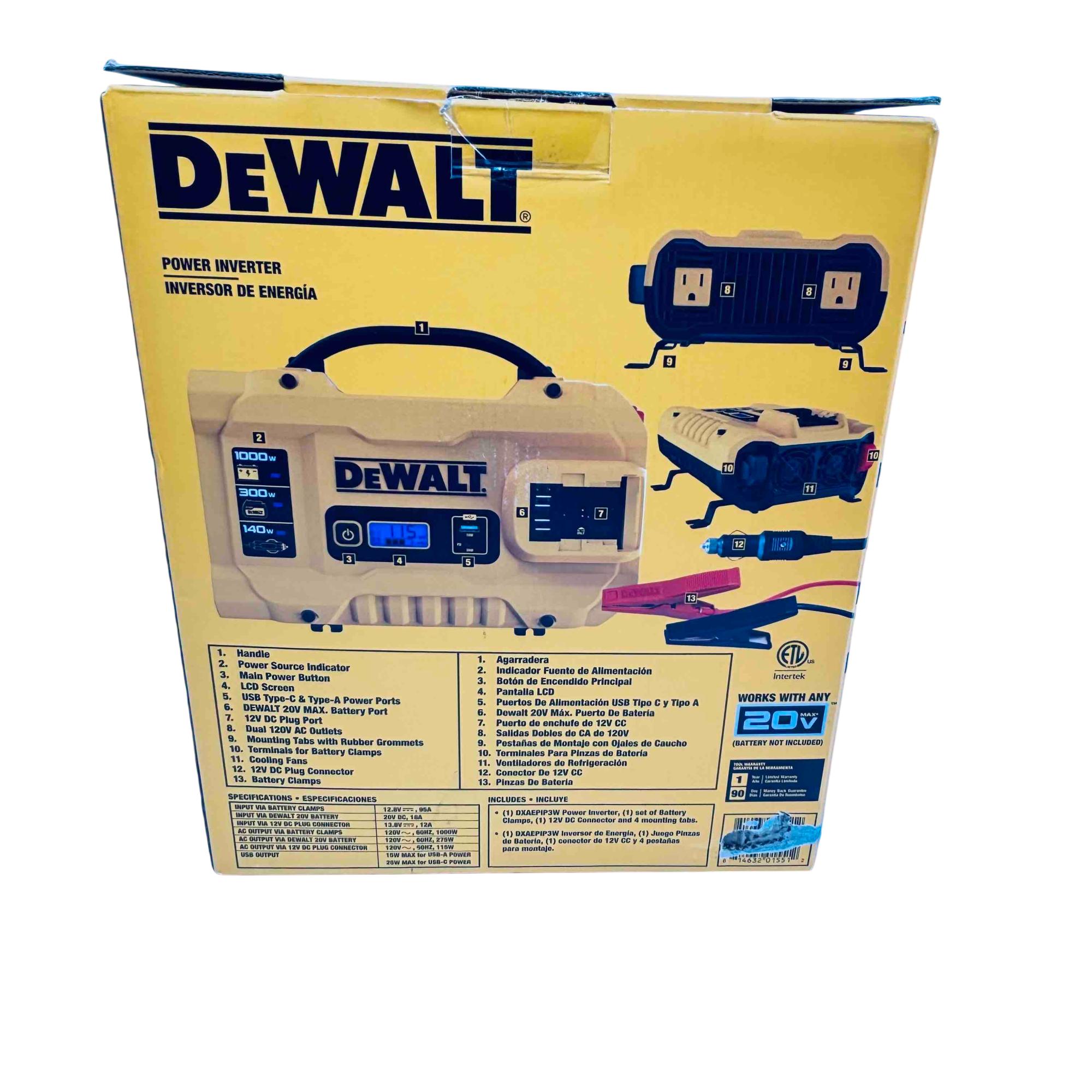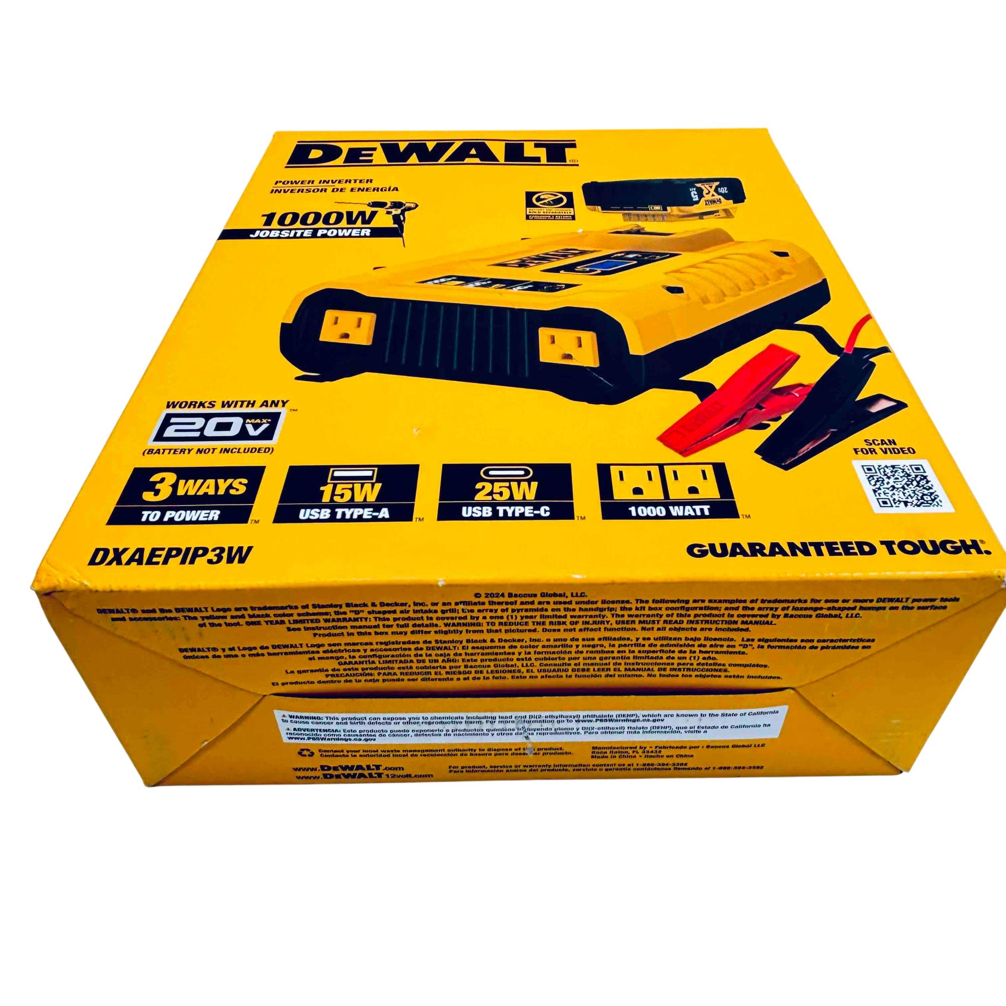 Unleash the power and versatility of the DeWalt DXAEPIP3W 1000W Jobsite Power Inverter. This robust inverter provides reliable output to power your tools and devices, featuring essential USB Type-C and Type-A ports. Perfect for job sites or on-the-go energy needs, its designed for ultimate durability and flexibility, working seamlessly with DeWalt 20V MAX batteries (sold separately).