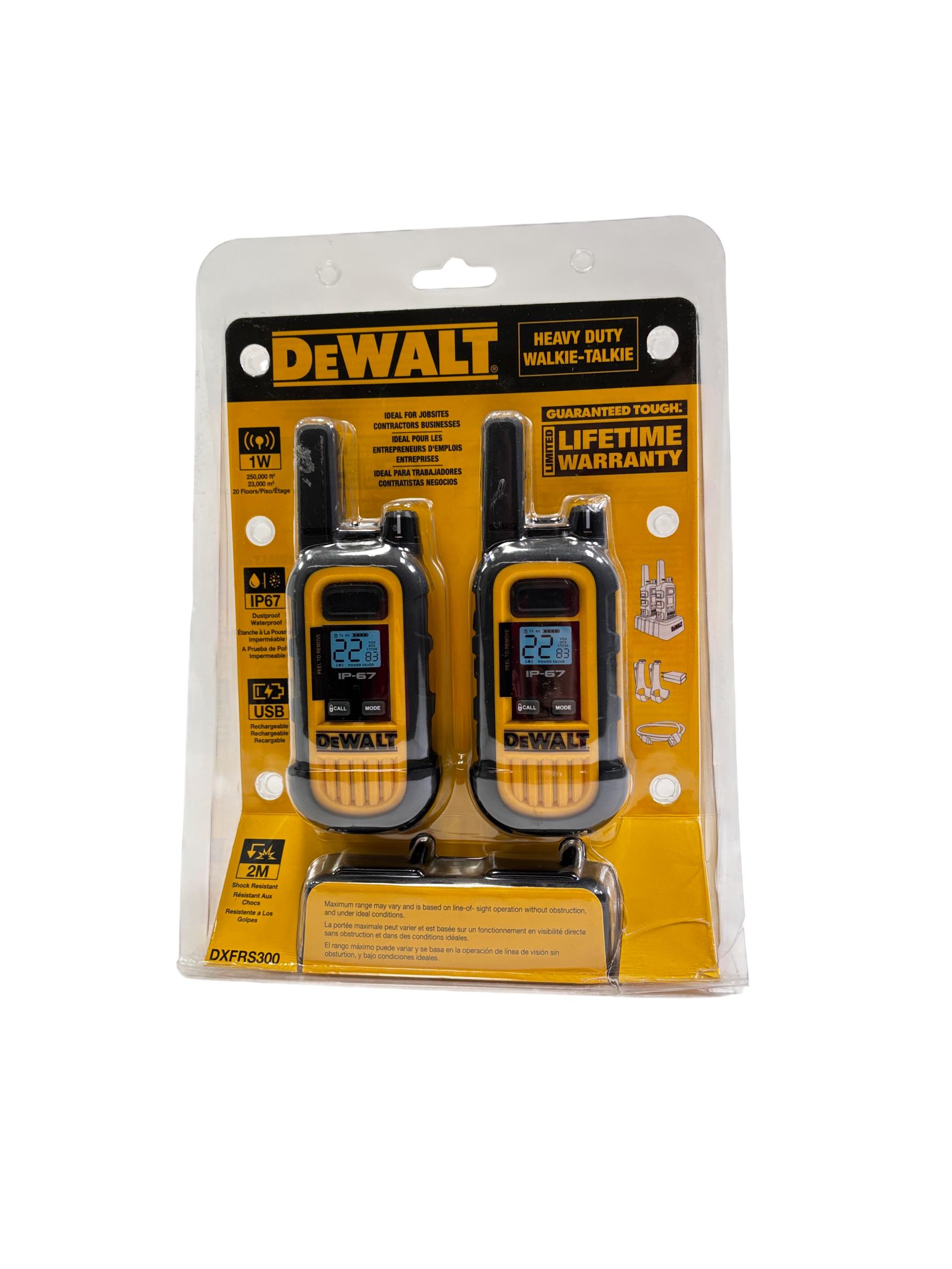 DeWalt DXFRS300 1W 22-Channel Heavy Duty Walkie Talkie deliver reliable communication across 22 channels with 2,662 channel combinations, optimized for demanding jobsite environments. Featuring an IP67 rating, these rugged radios provide water and dust resistance, and their anti-slip design ensures secure handling during tough tasks. USB rechargeable capability and a clear digital display enhance convenience and usability on the go.
