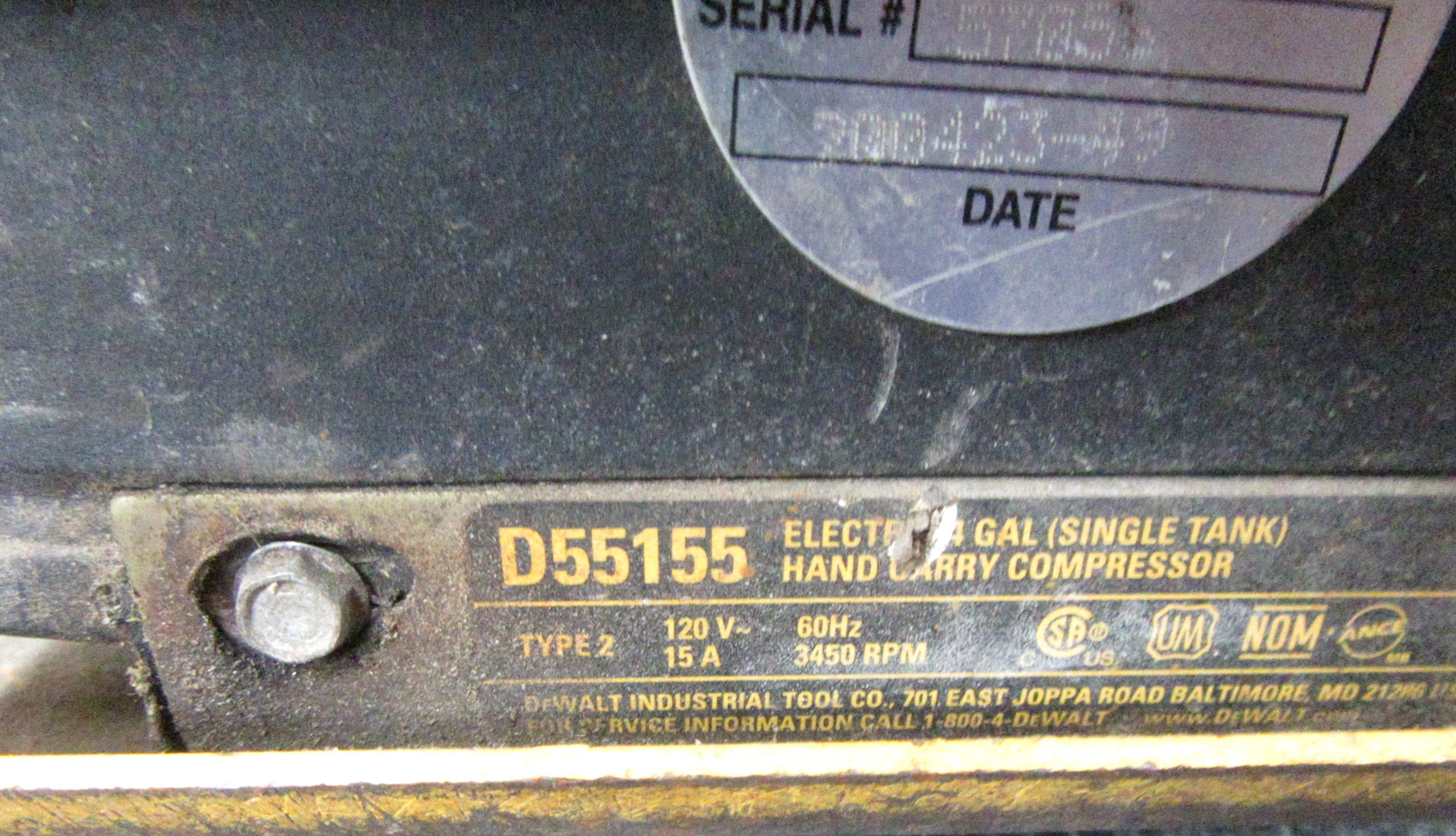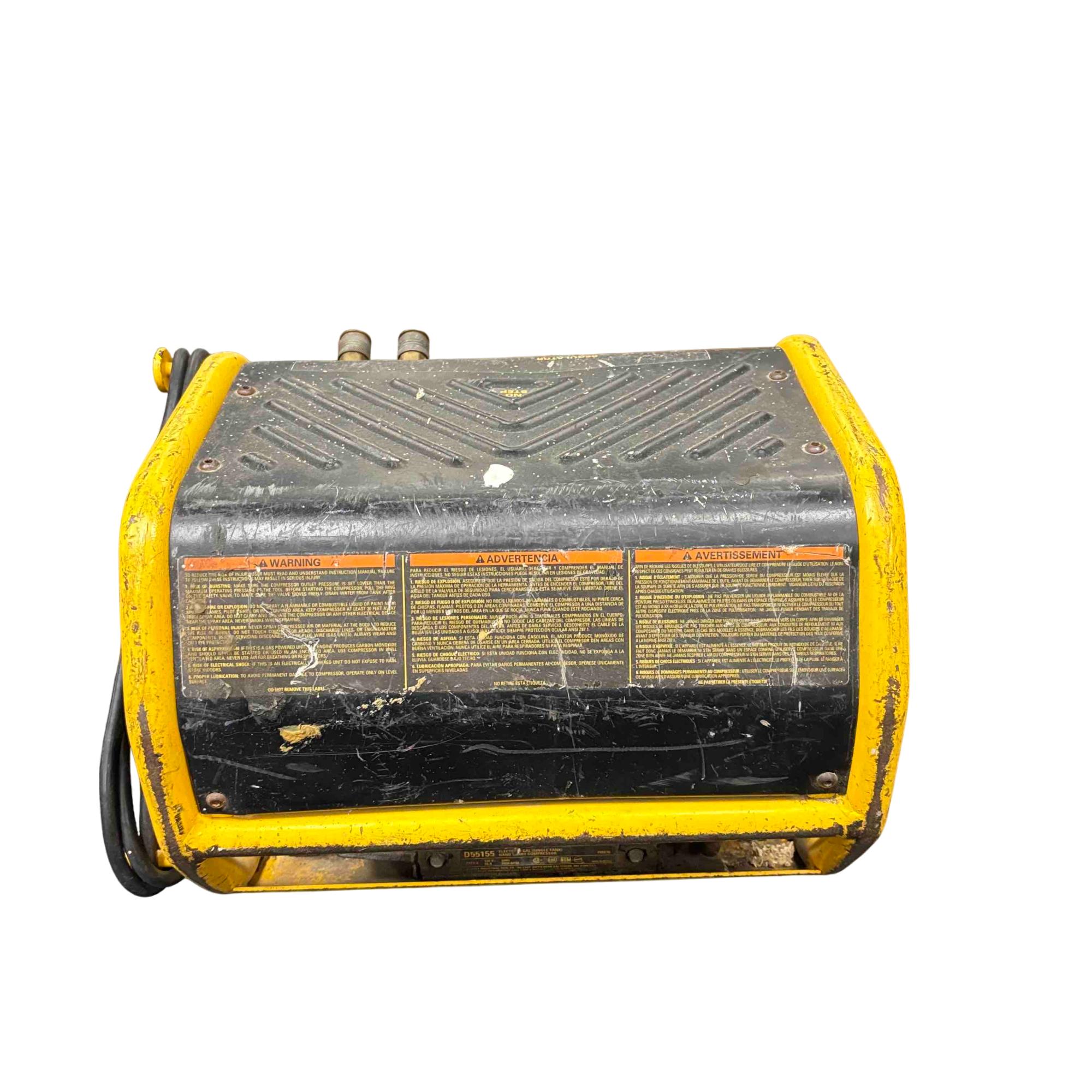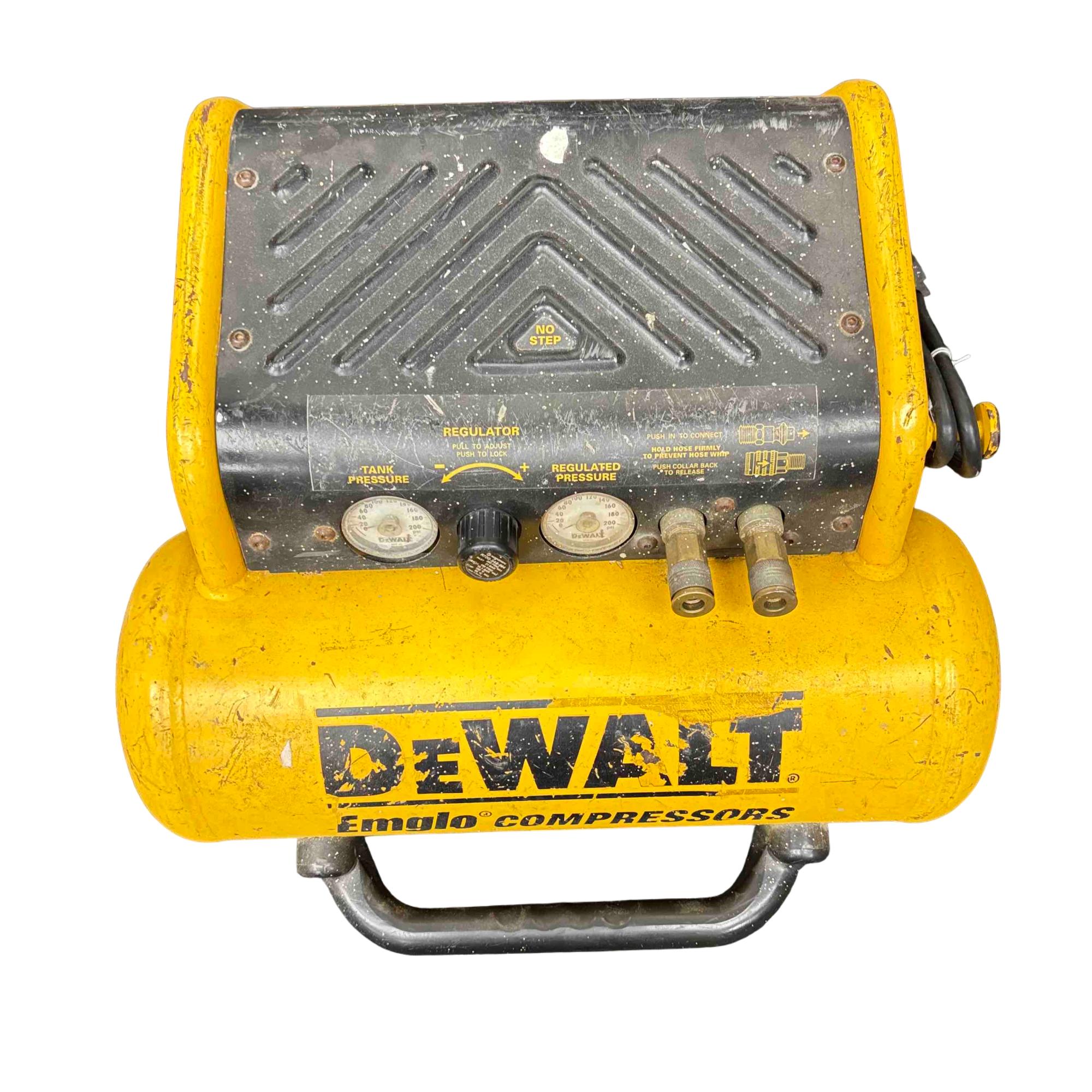 The DeWalt Emglo D55155 is a portable electric air compressor designed for rugged job site performance. Featuring a 1.2 HP motor and dual gauges for tank and regulated pressure, this yellow and black powerhouse is trusted by professionals for its reliable air delivery and compact design. Perfect for powering pneumatic tools, inflating tires, and providing consistent compressed air wherever you need it.