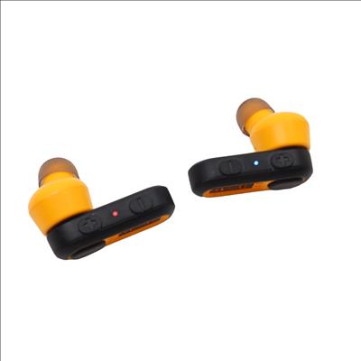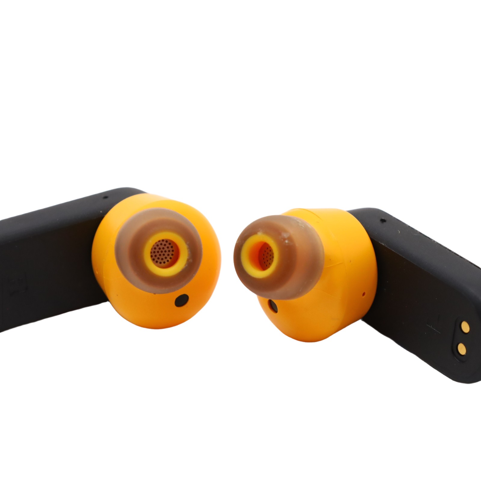 Designed for use in demanding environments. Featuring an in-ear smart sensor, the earbuds automatically pause audio when removed and resume playback when replaced. They offer sweat and water resistance with an IPX6 rating, suitable for dusty or sweaty conditions. Environmental Noise Control technology aims to provide clear call quality, and the set includes additional ear cushions and a Type C charging cable for convenient use with both iPhone and Android devices.