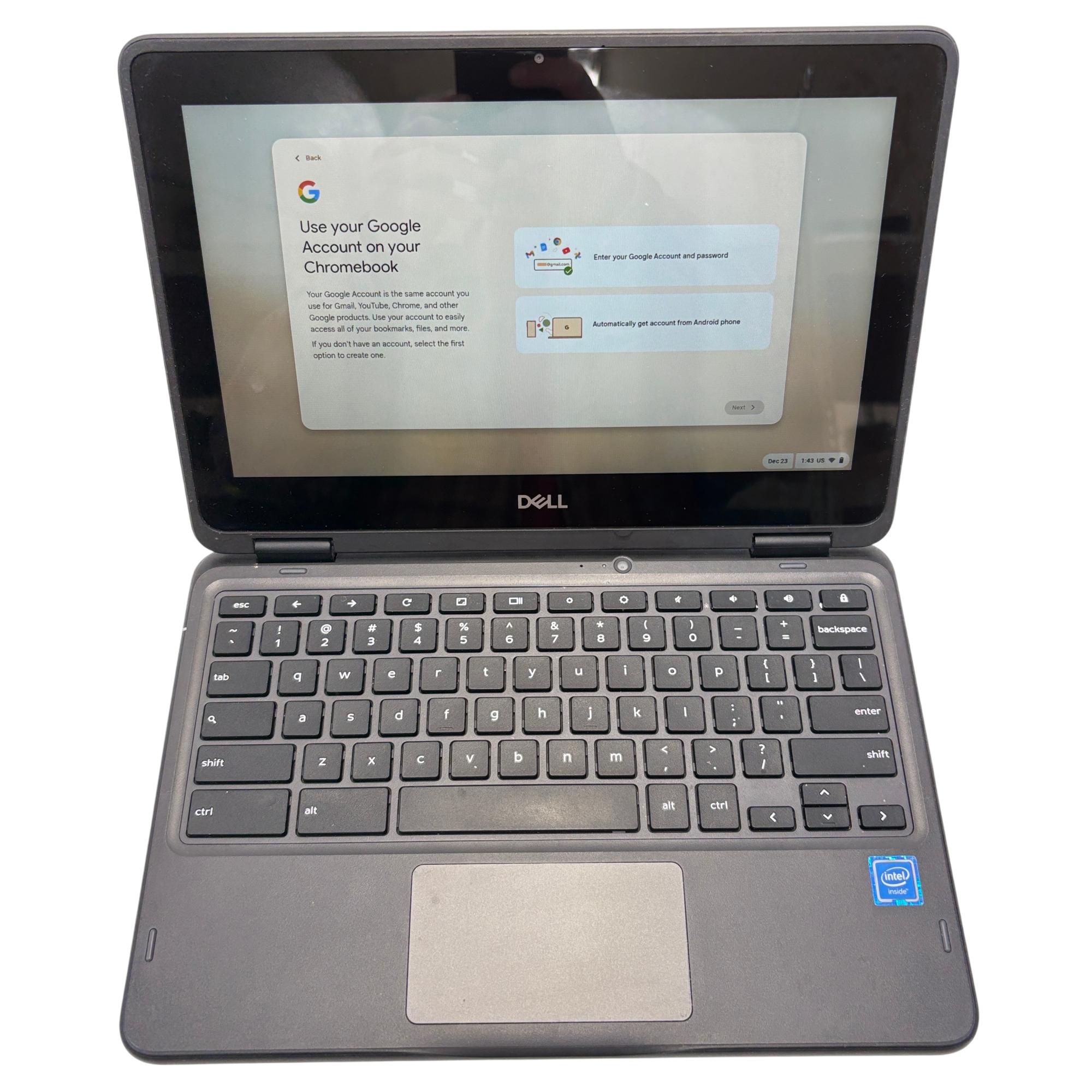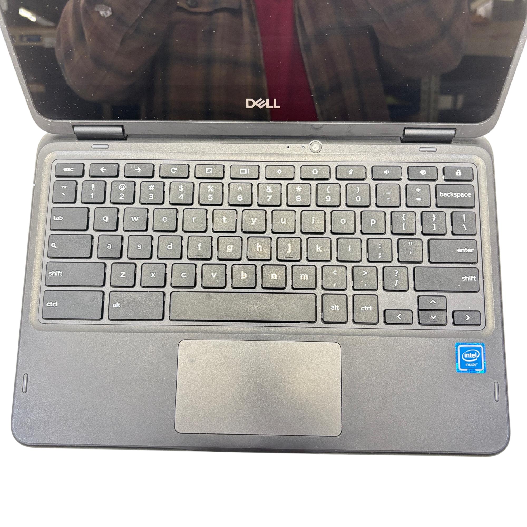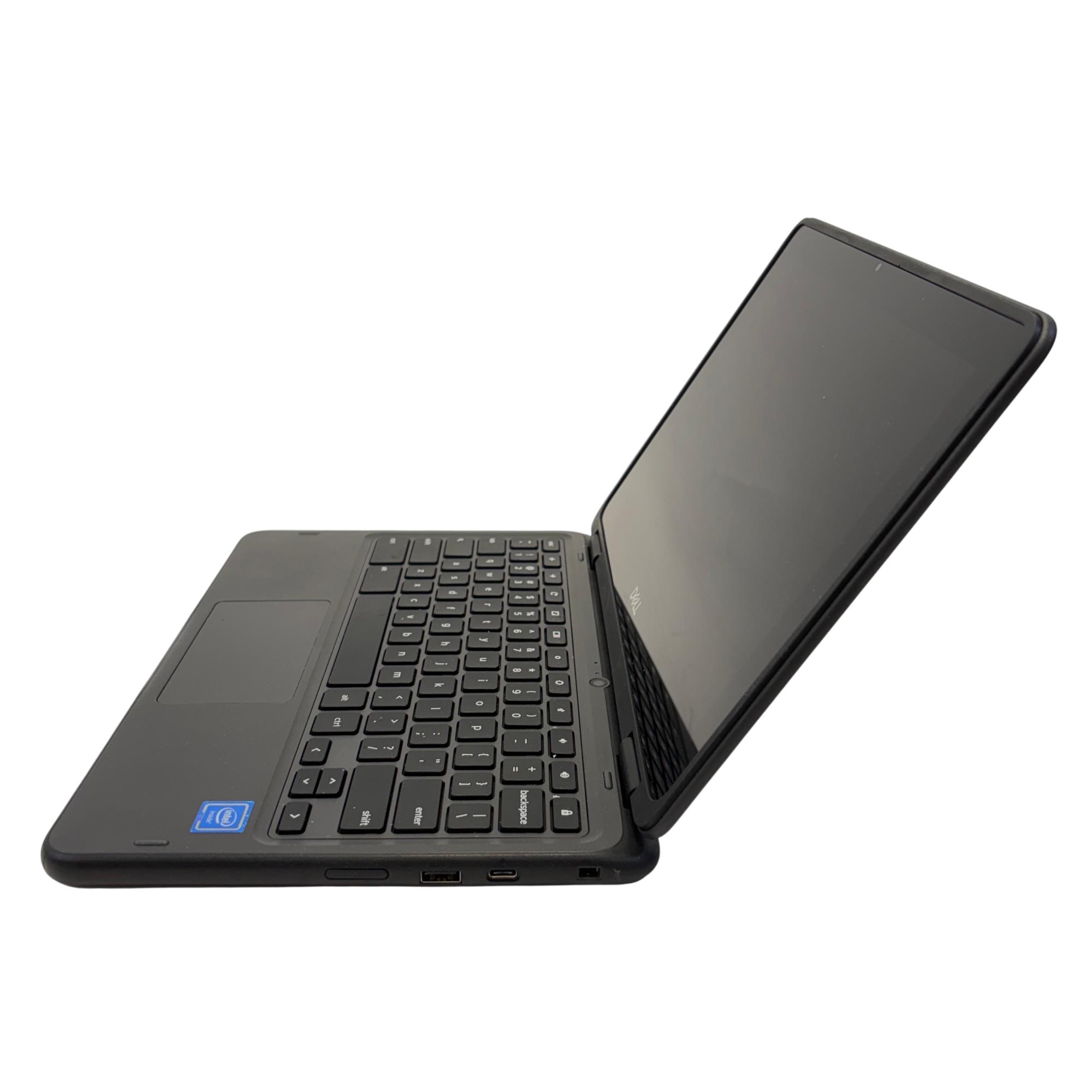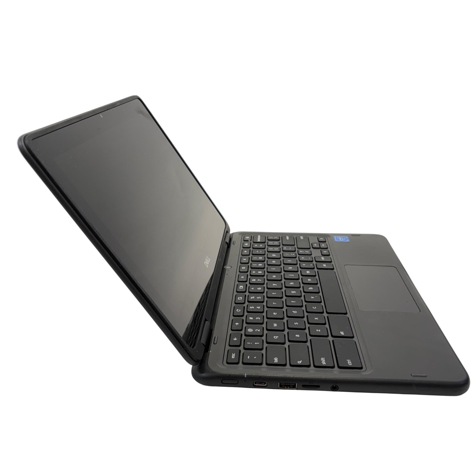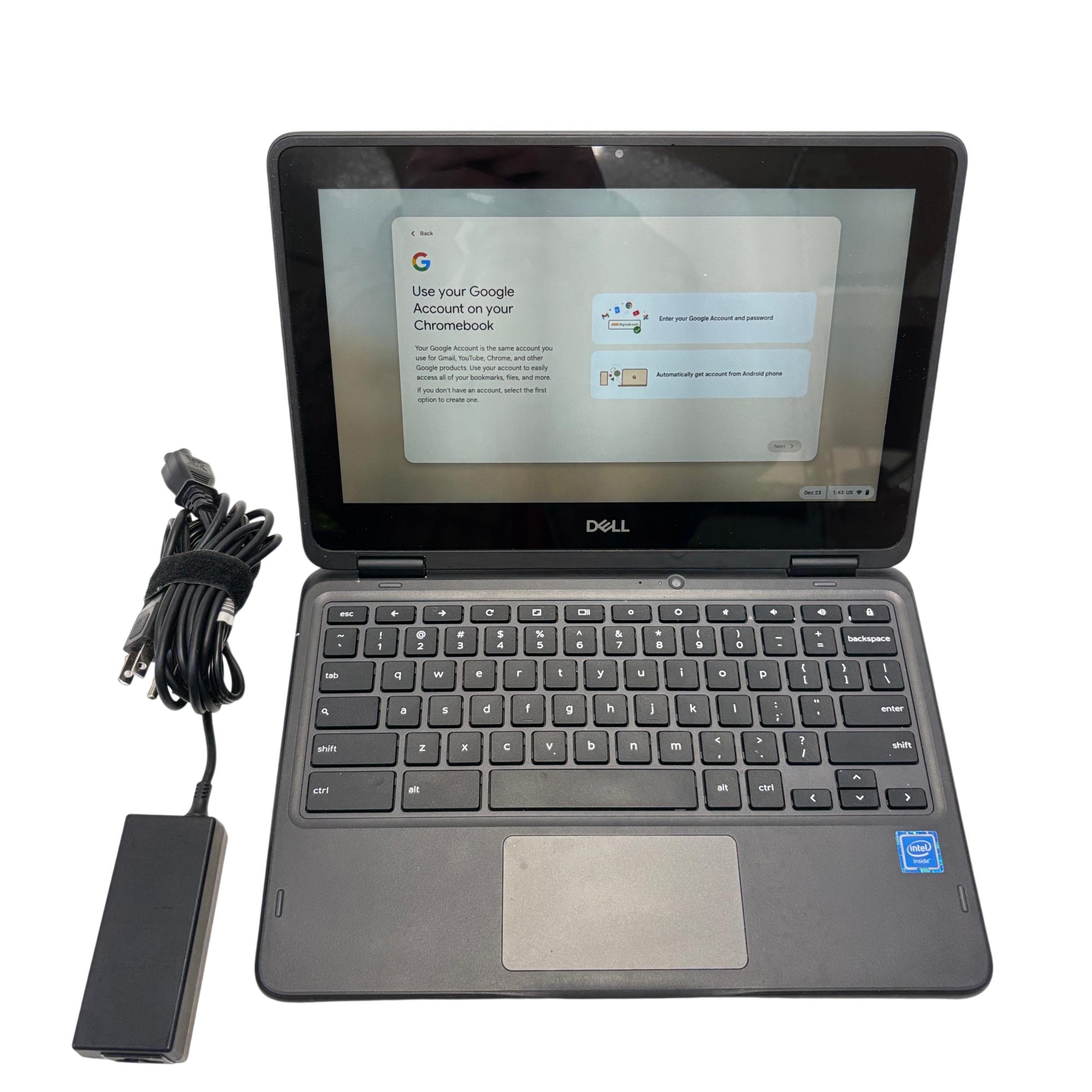 The Dell Chromebook 3100 Laptop features a compact design with an Intel Celeron processor, 4GB of RAM, and 16GB eMMC storage for efficient performance. This black 2-in-1 touchscreen laptop is built for portability and ease of use, delivering reliable functionality for everyday computing and education needs.