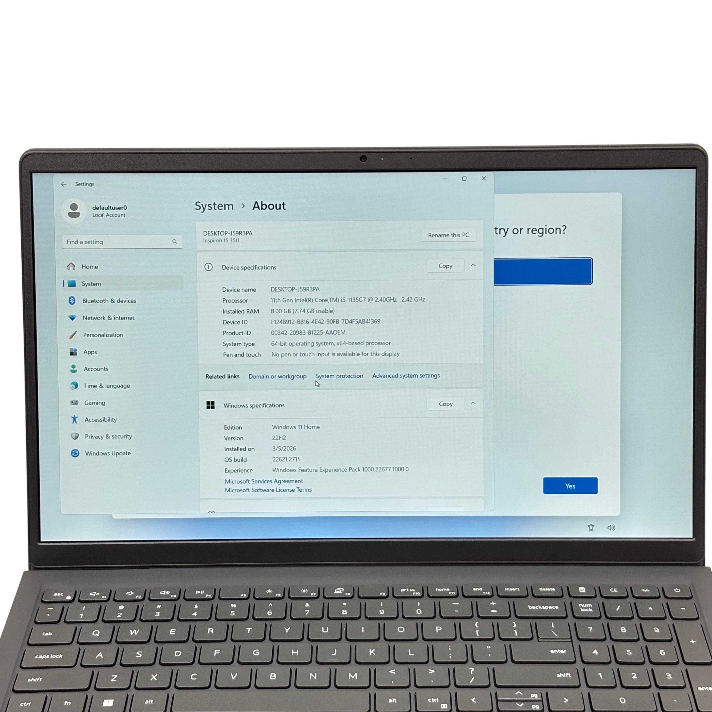 11th Gen Intel Core i5-1135G7 @ 2.40GHz (8 MB cache, 4 cores, 8 threads, up to 4.20 GHz Turbo)