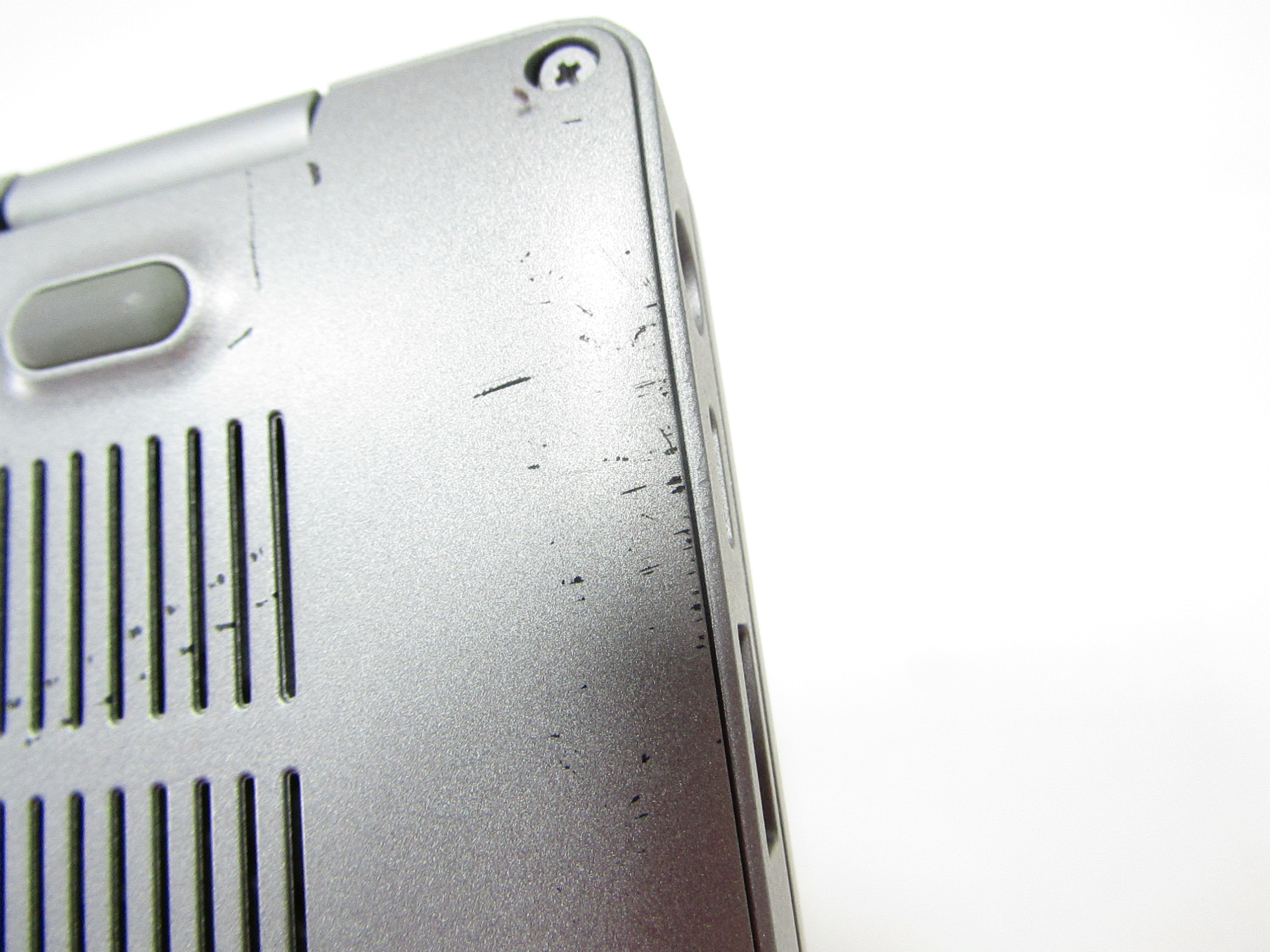 Previously owned. The laptop is in fair condition that has several tiny specks left of the touchpad and keyboard, some light scratches on the right side on the top cover, a heavy scuff on the bottom vent, a few lighter scuffs on the far right side on the vent, a little paint chipping on the bottom near the bottom edge and and light scratches on the bottom near the right side edge. The laptop has been tested and is fully functional.