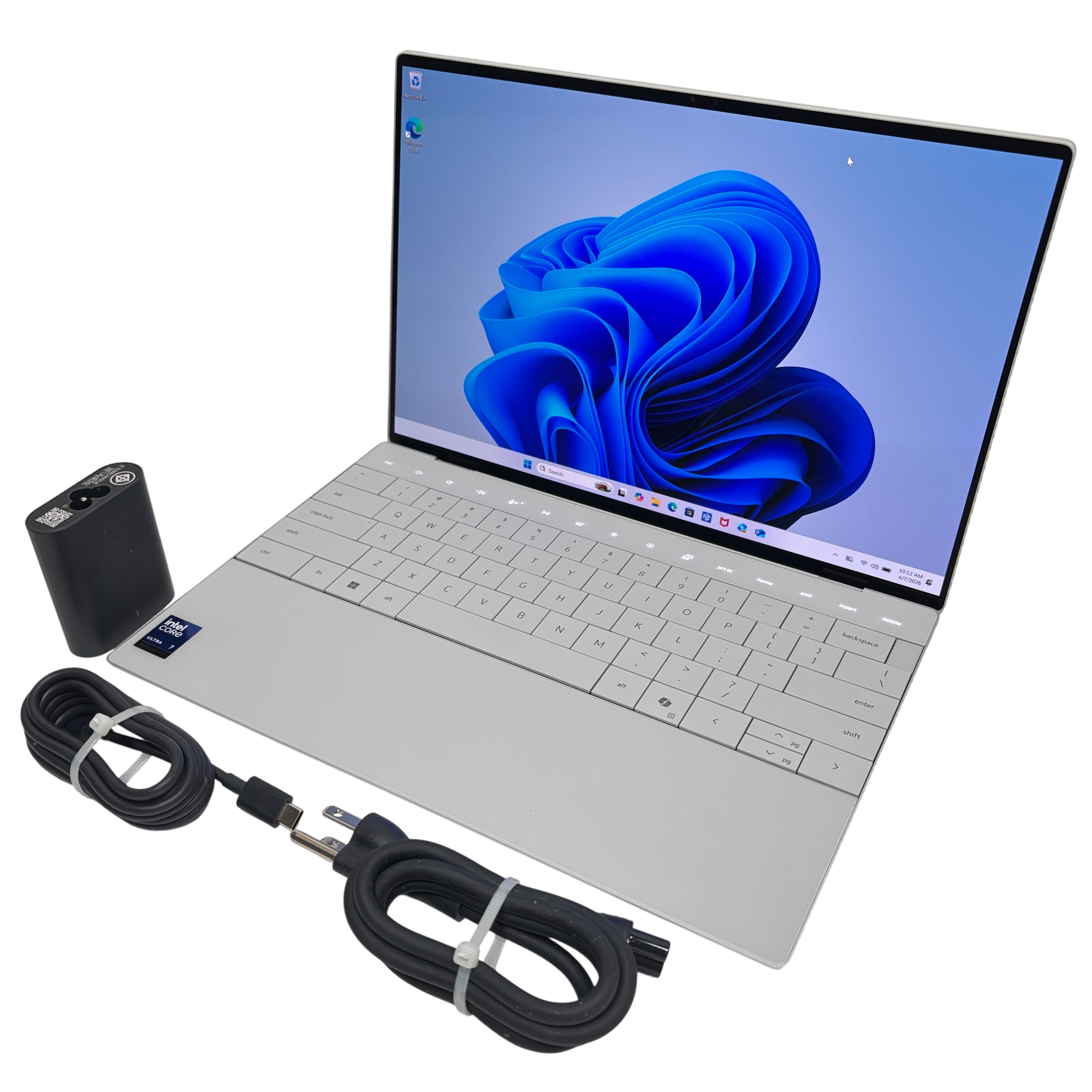 Dell XPS Laptop features a powerful Intel Core i7 Ultra 7th Gen Evo Edition processor, delivering excellent performance for business and personal use. This sleek and lightweight silver laptop offers a premium aluminum build and a vibrant display with ultra-thin bezels. Included in the set are the laptop itself, a power adapter, and a power cord, making it ready for immediate use. Ideal for professionals seeking a compact yet powerful computing solution with Windows 11 pre-installed.