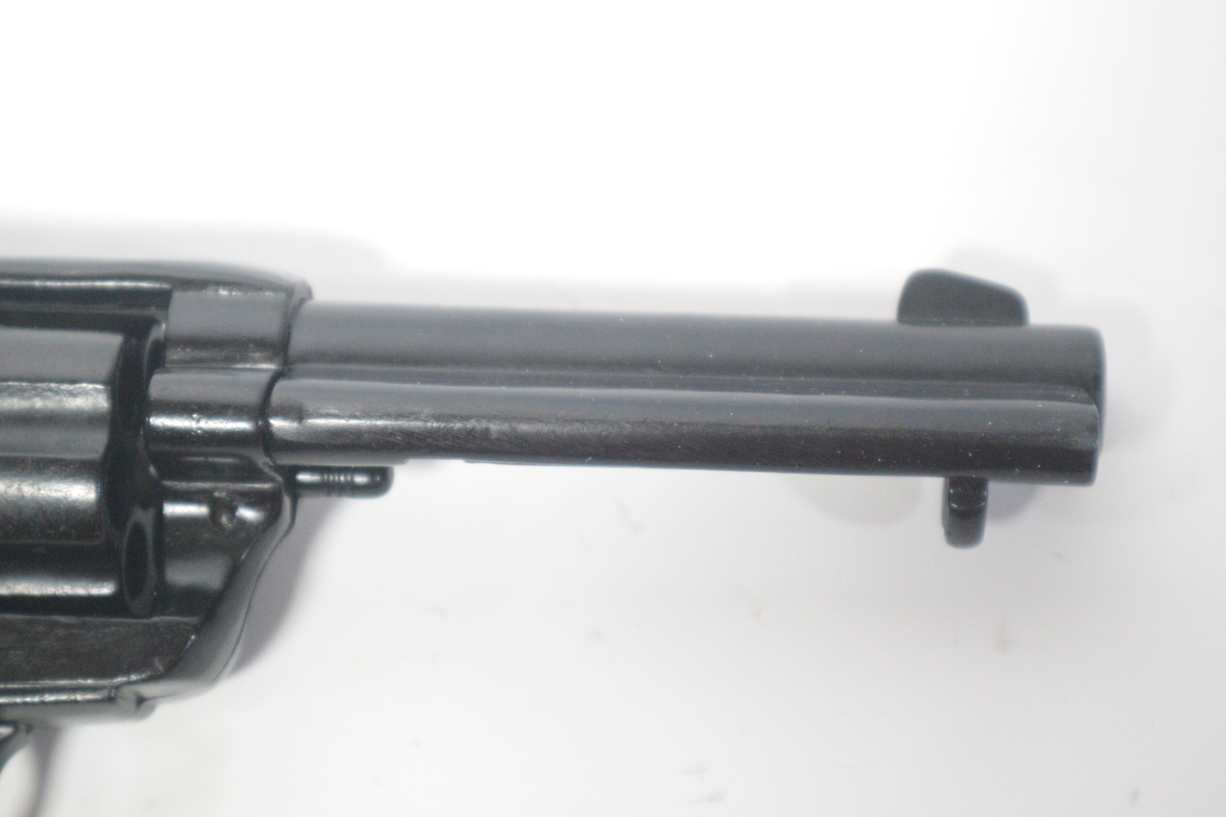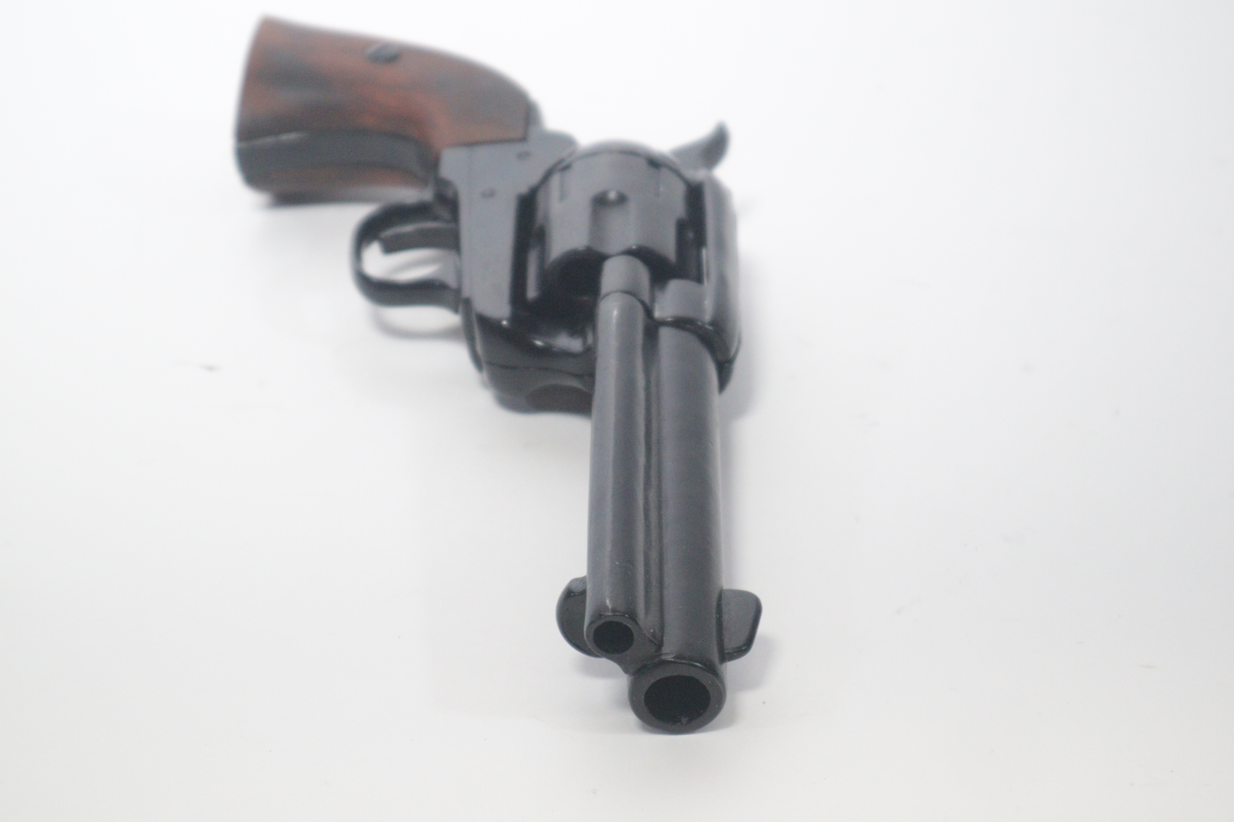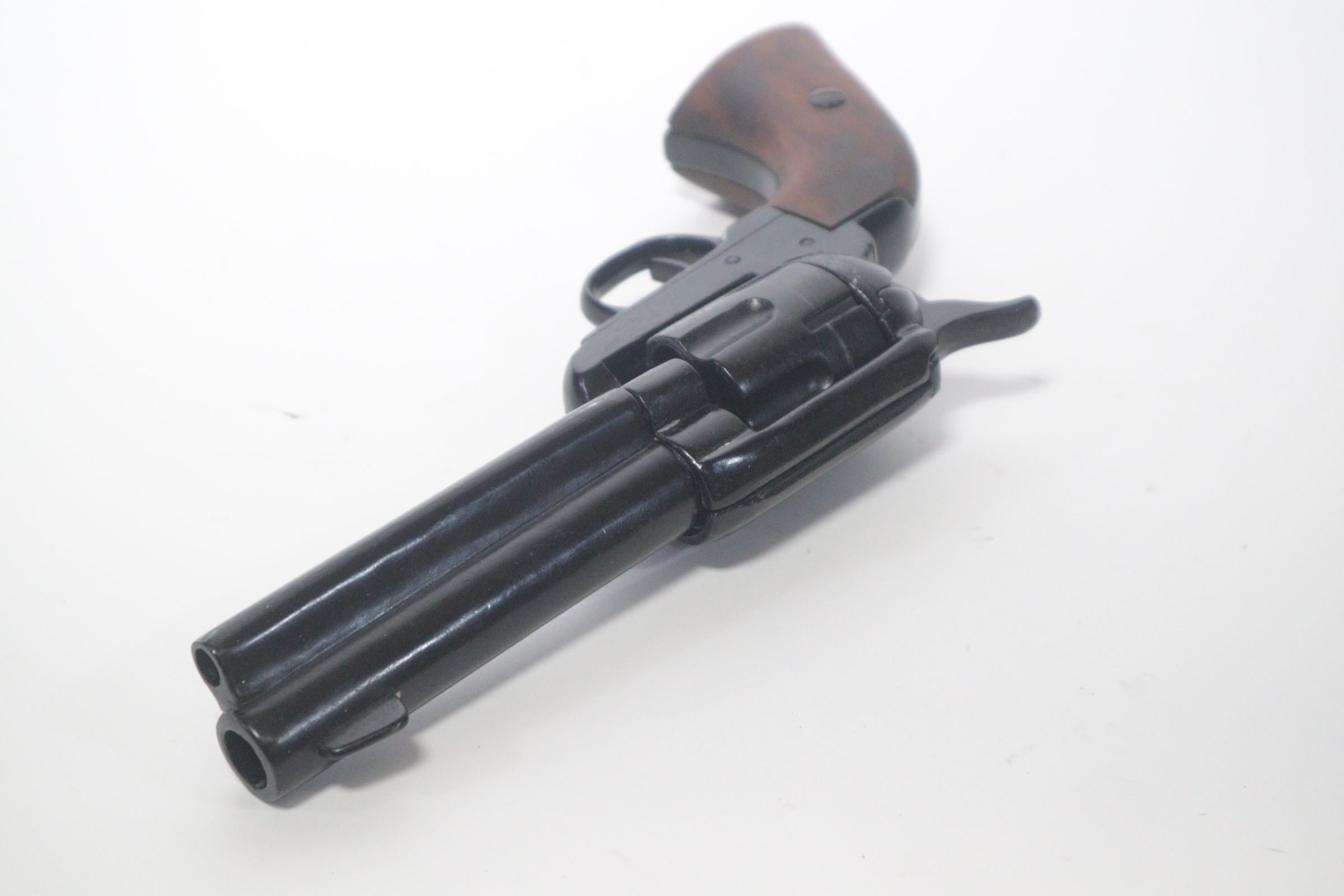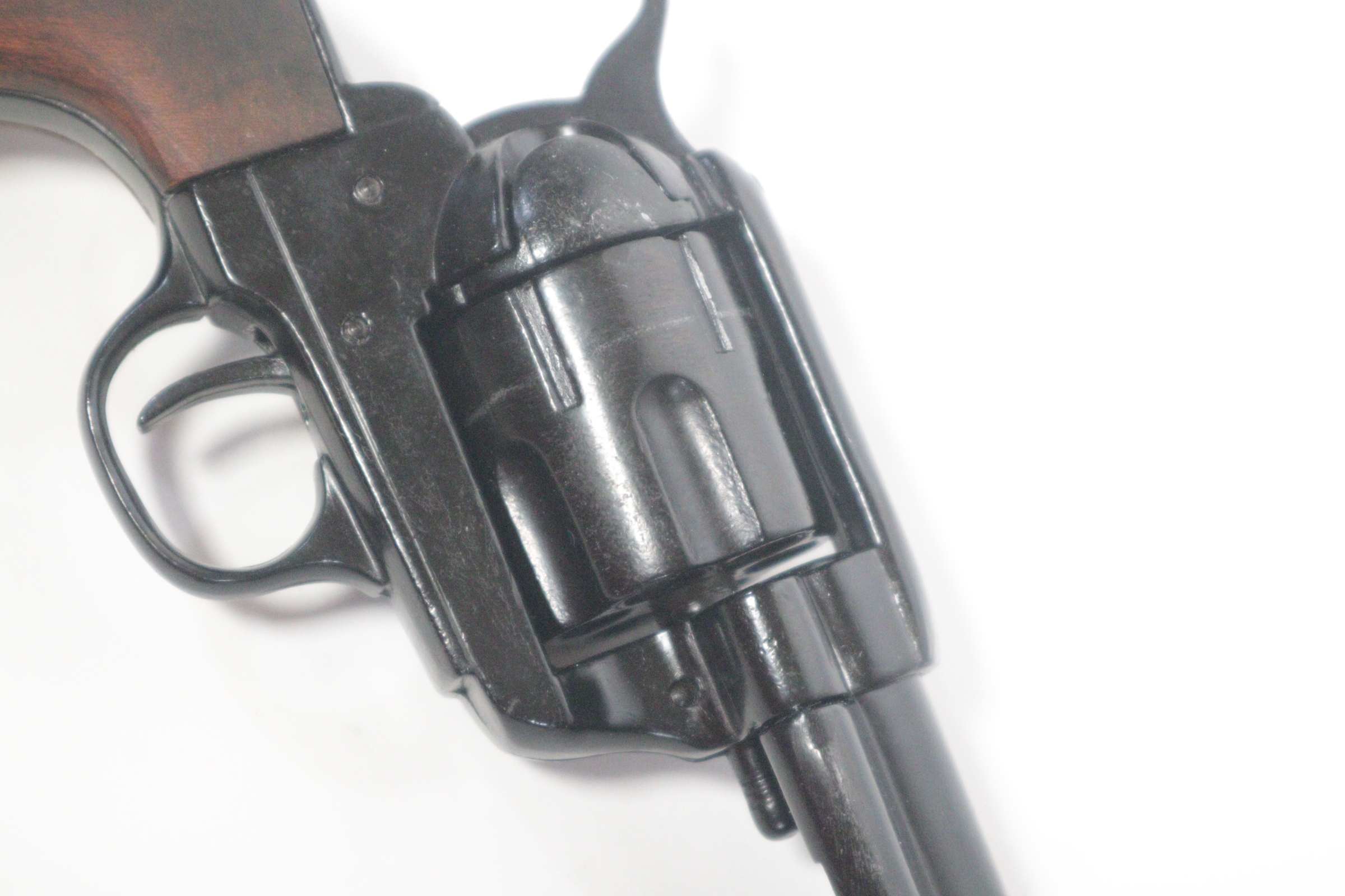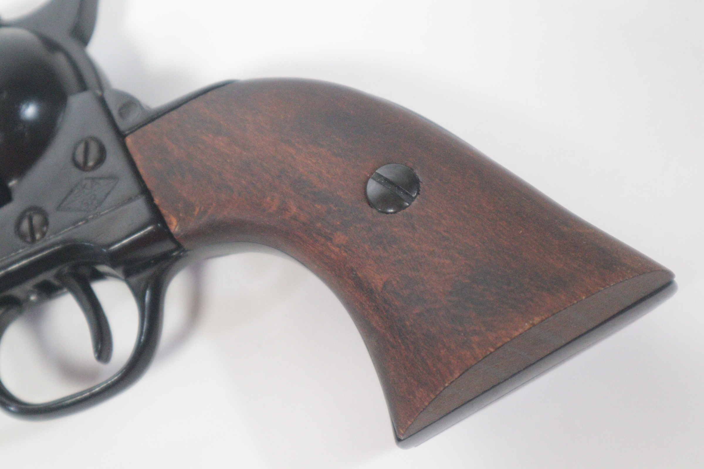 The single-action army revolver was produced in several forms and many calibers from 1872 to 1940, with production totaling about 350,000 pieces. This non-firing version has a functional lock mechanism with a revolving cylinder and working ejector system. This item is not for sale in some specific zip codes.