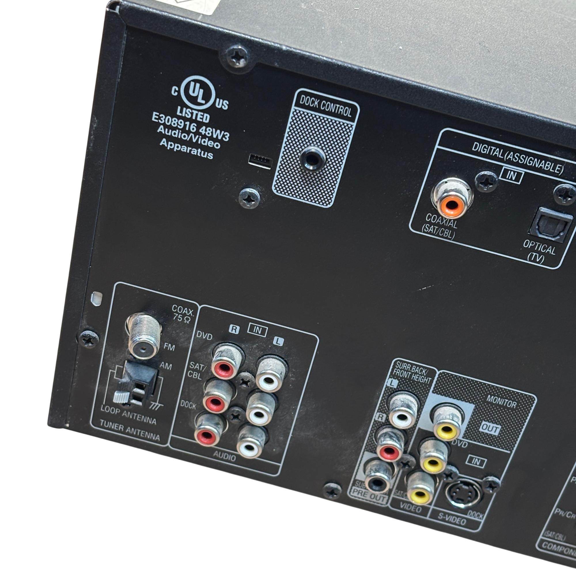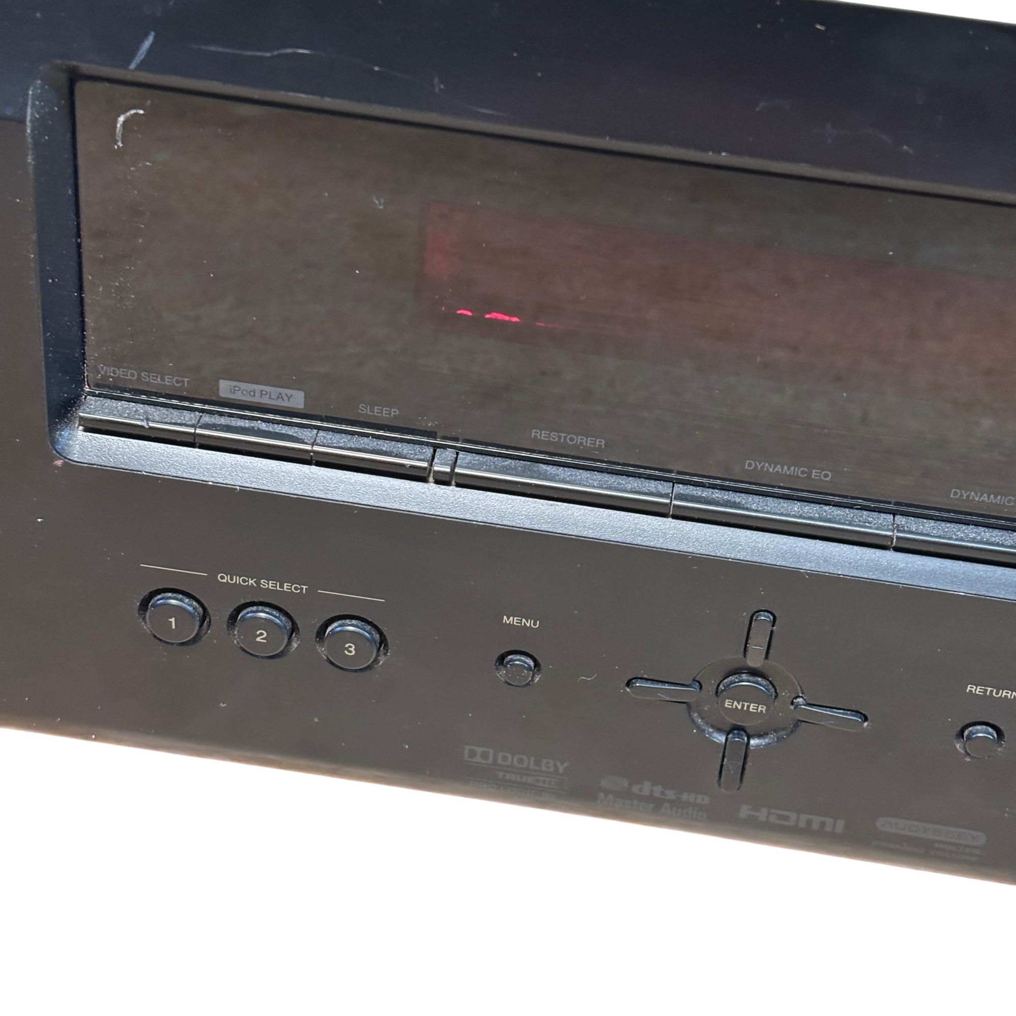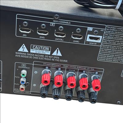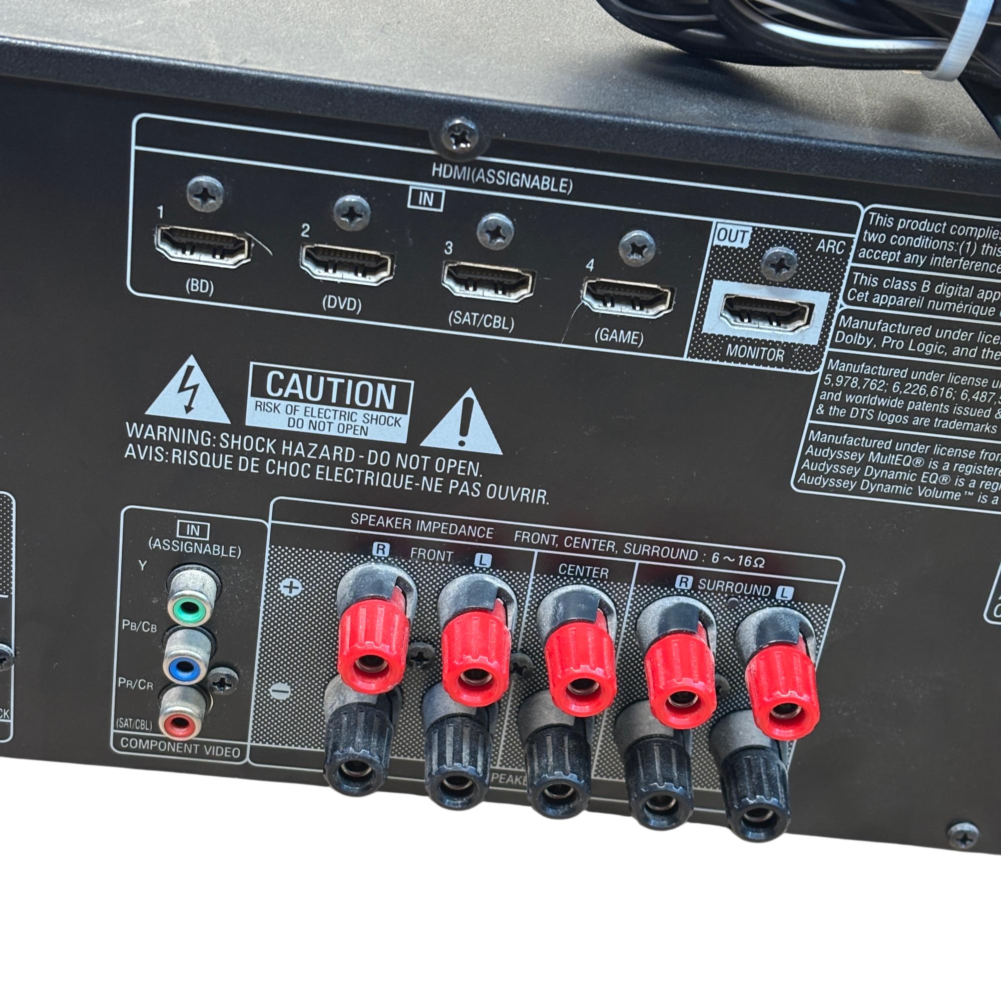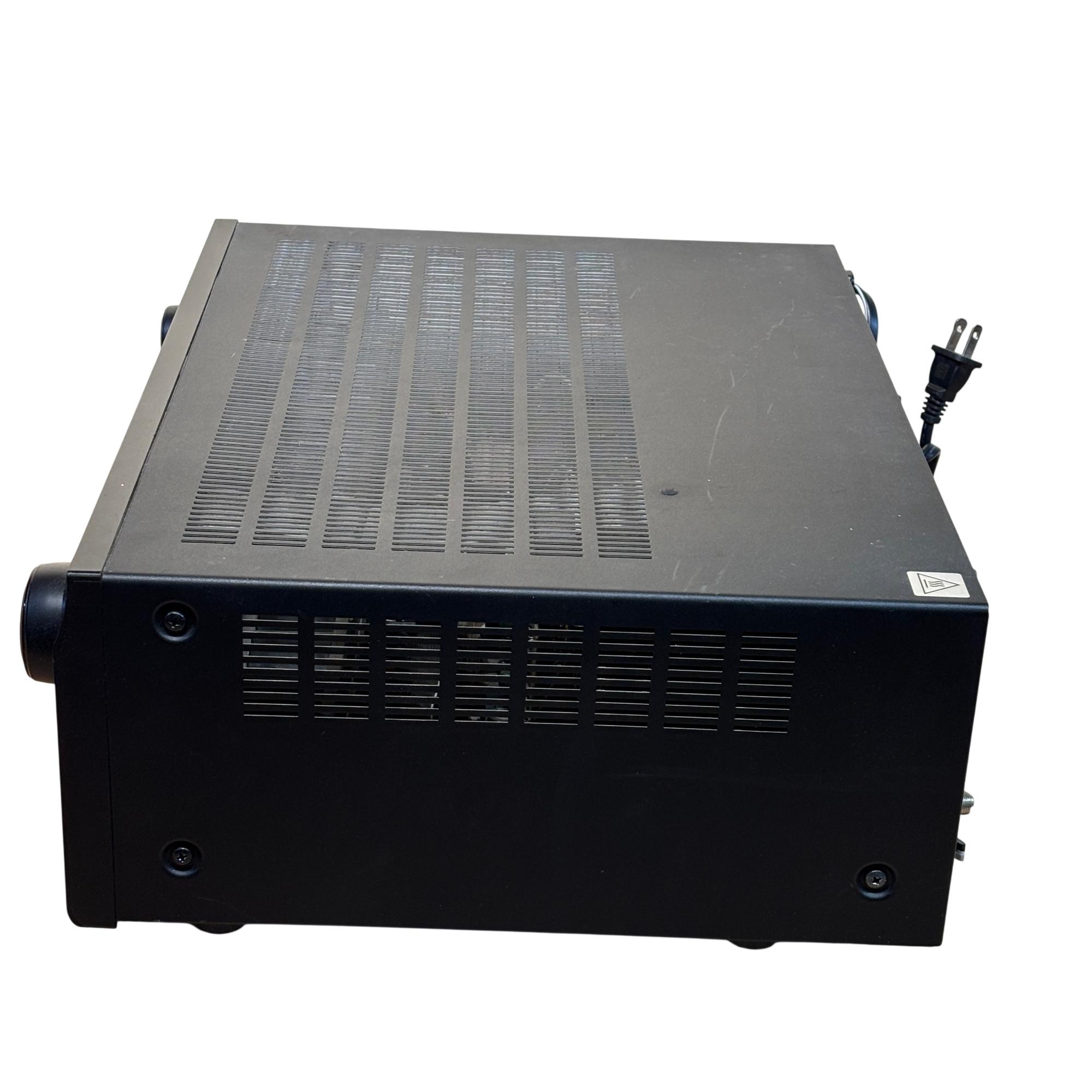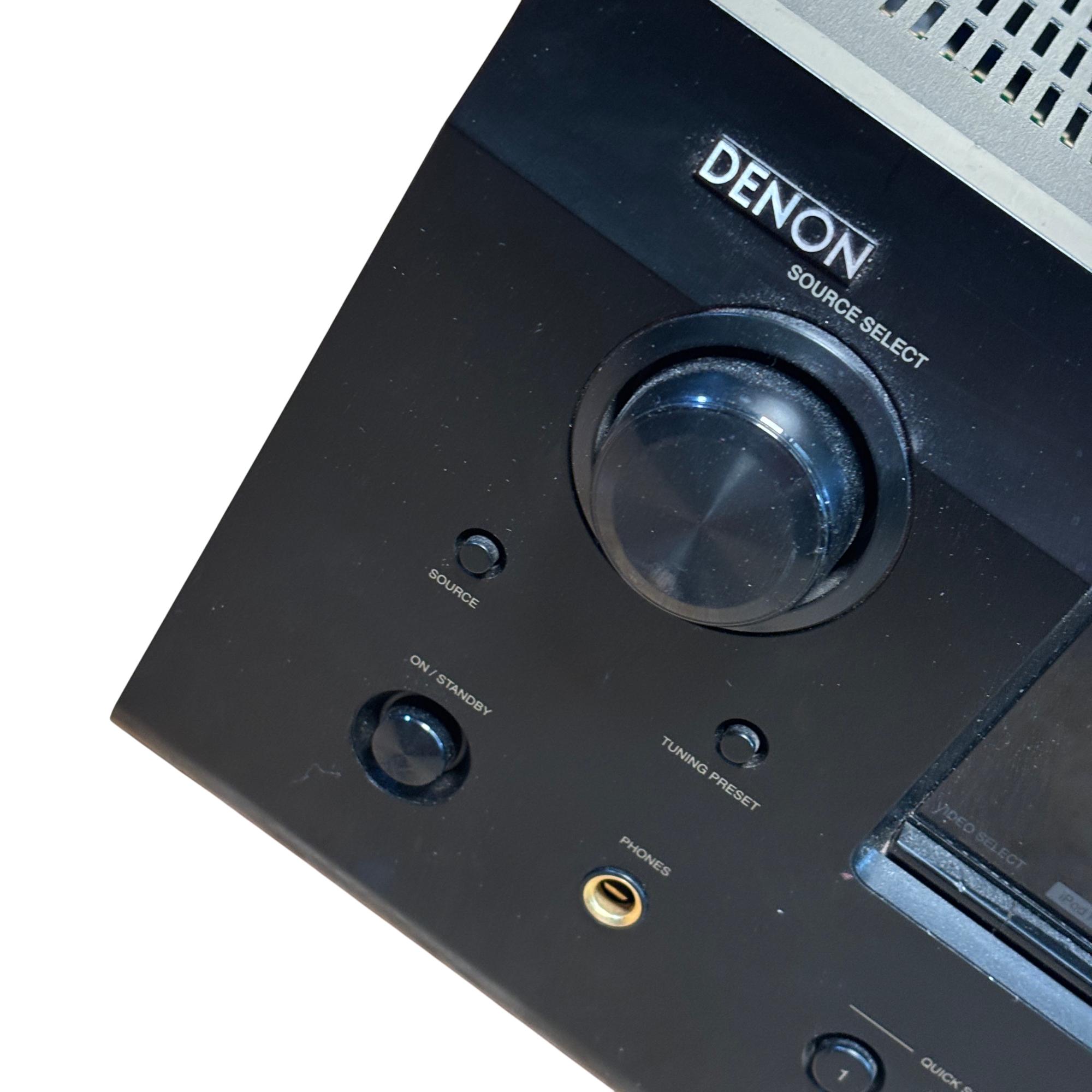 Denon AVR-591 5.1 Channel AV Surround Receiver with RC-1120 Remote delivers powerful 120W per channel for immersive home theater audio. This receiver features multiple input options, including HDMI and audio sources, with advanced surround sound processing to enhance cinema and music experiences. Its front panel offers intuitive control knobs and a clear display for easy operation and setup.