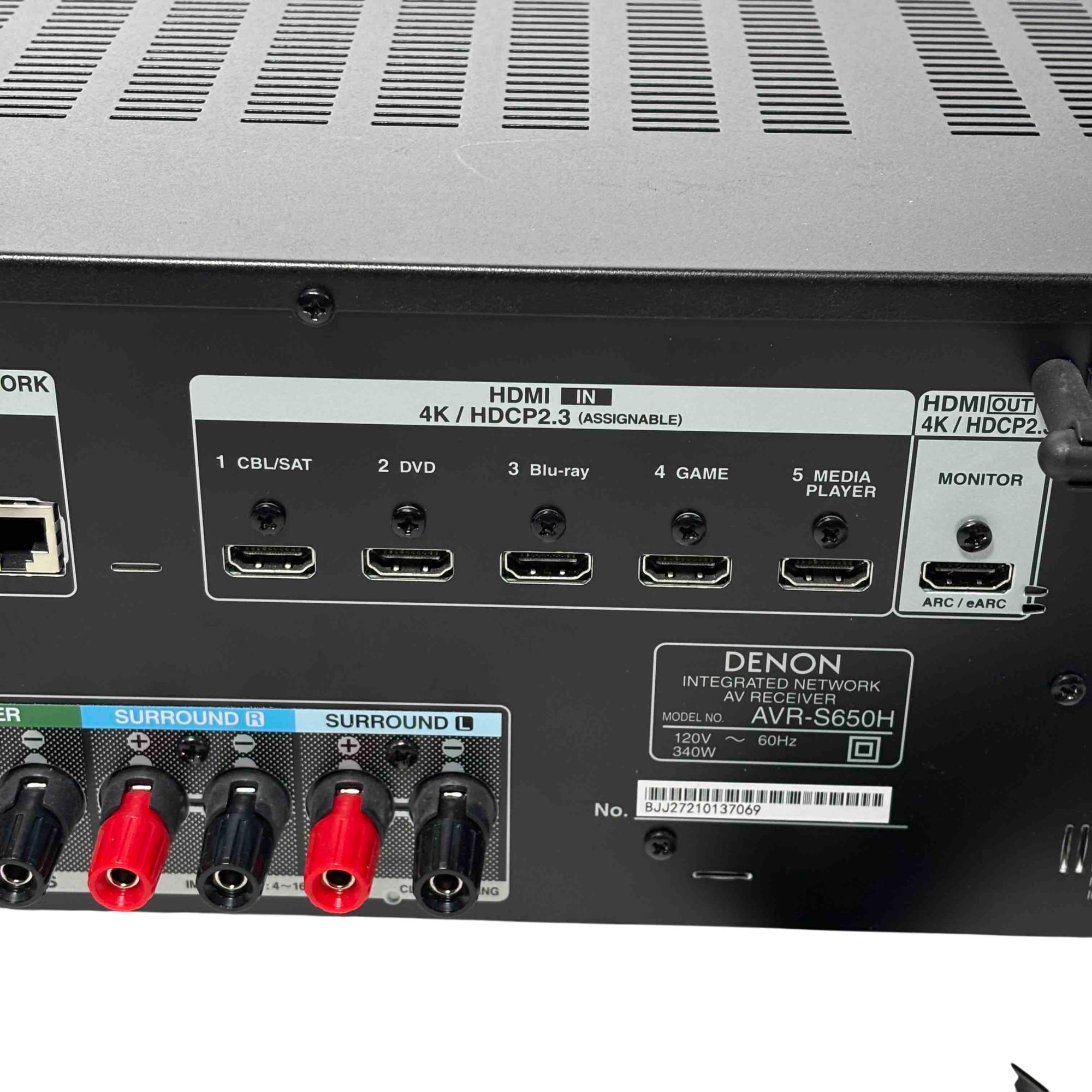 Experience high-quality sound with the Denon AVR-S650H Integrated Network AV Receiver. This powerful stereo system features Dolby Audio, HEOS multi-room technology, and Bluetooth connectivity, bringing you crisp, immersive audio for your home entertainment. Perfect for both music and movie lovers, it combines advanced media playback with easy usability to elevate your audio experience.