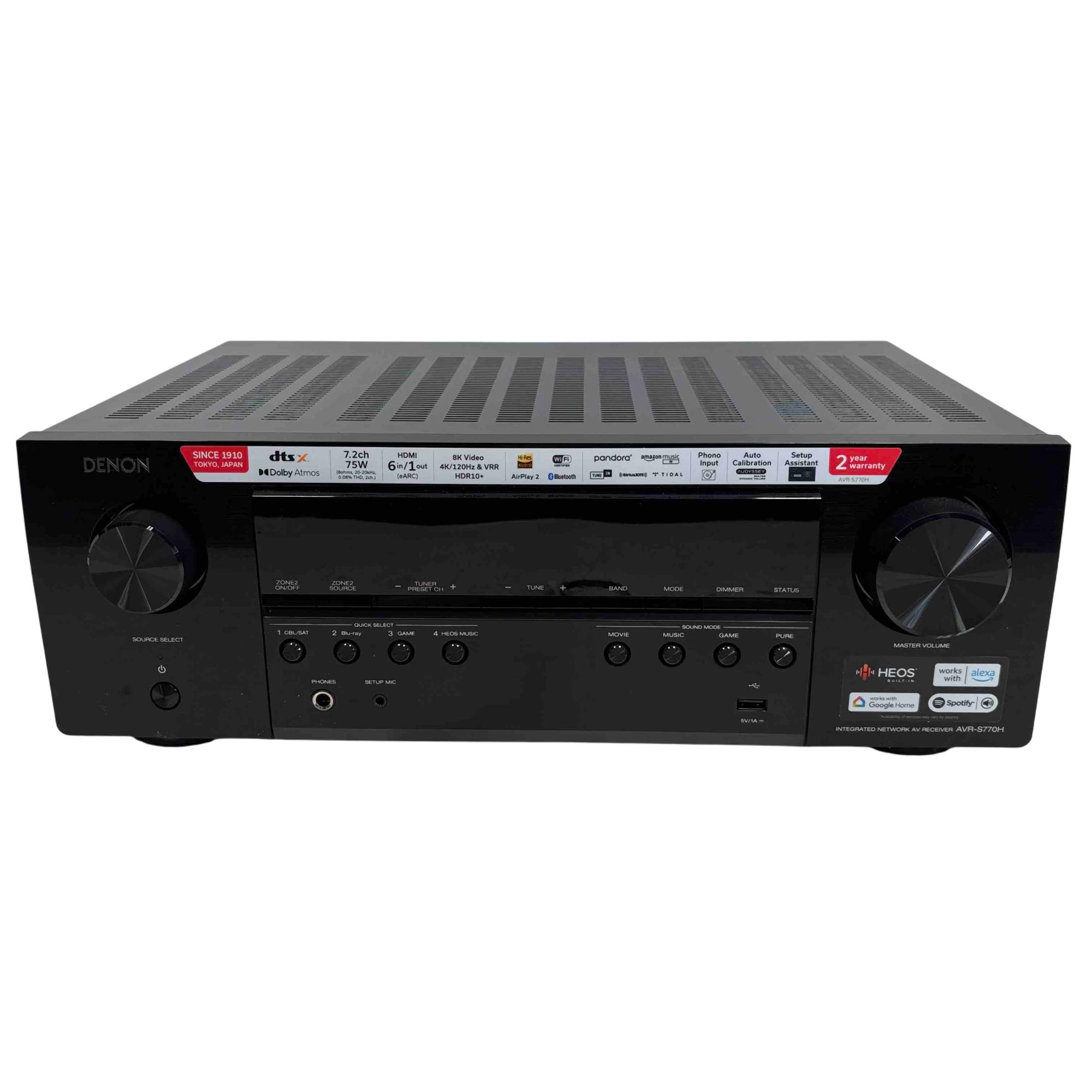 Experience immersive home theater sound with the Denon AVR-S770H, a powerful 7.2 channel AV receiver delivering 75W per channel. Featuring technologies like 8K video, 4K/120Hz pass-through, Dolby Atmos, DTS:X, and advanced connectivity with 6 HDMI inputs (eARC), this receiver is perfect for the modern entertainment enthusiast. Enjoy high-res audio, wireless streaming via HEOS, voice assistant compatibility, and seamless integration with your smart home.