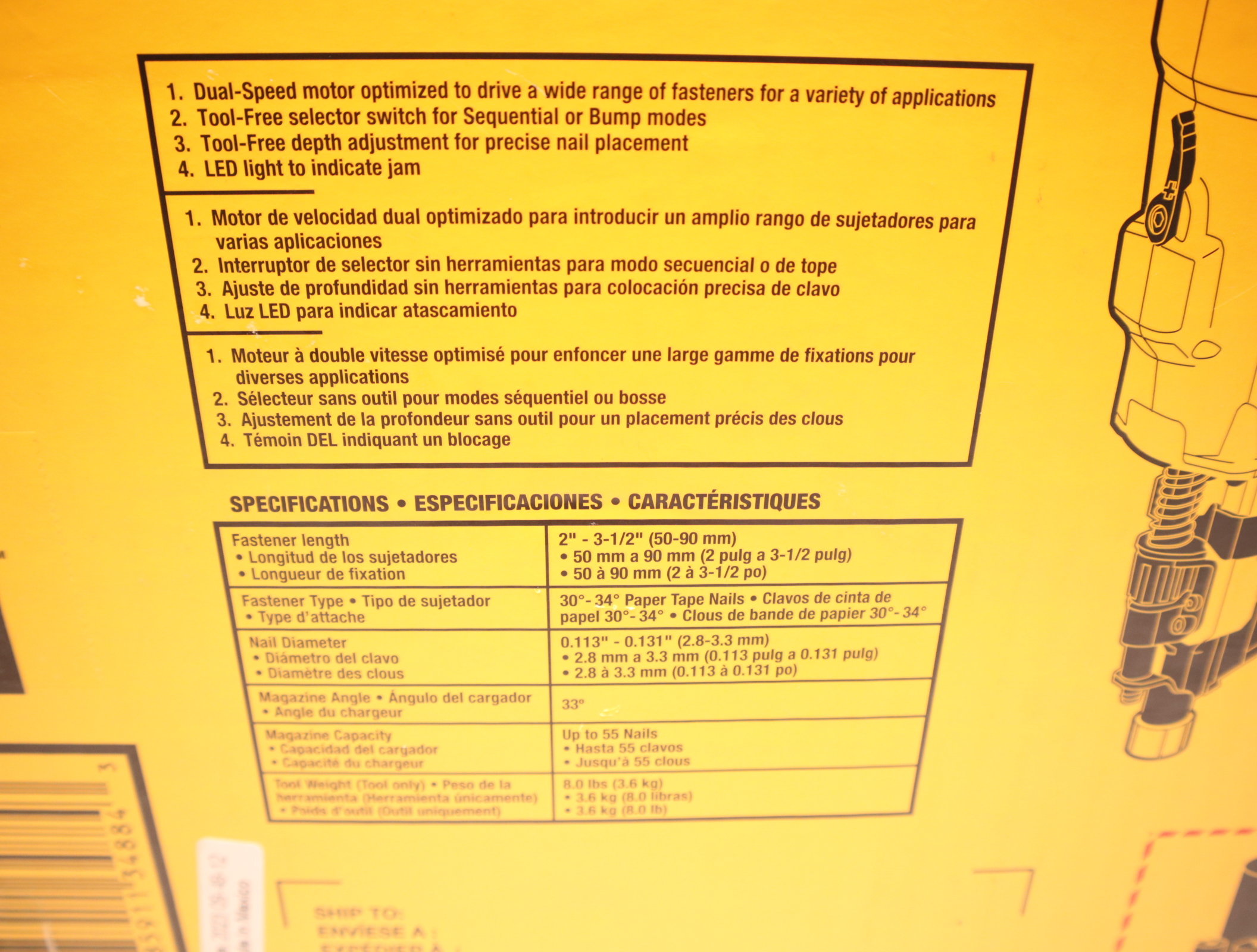 Accepts any 30° - 34° paper tape framing nails (clipped head or off set full round head)