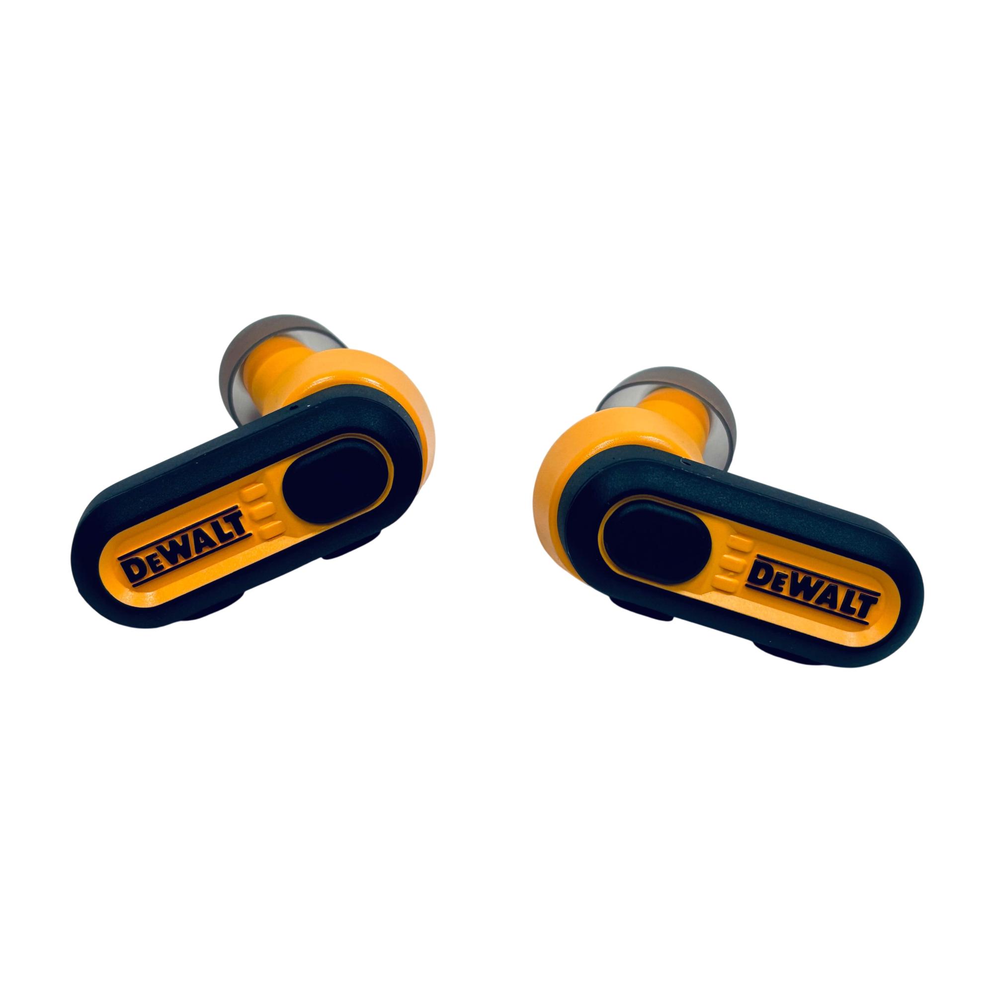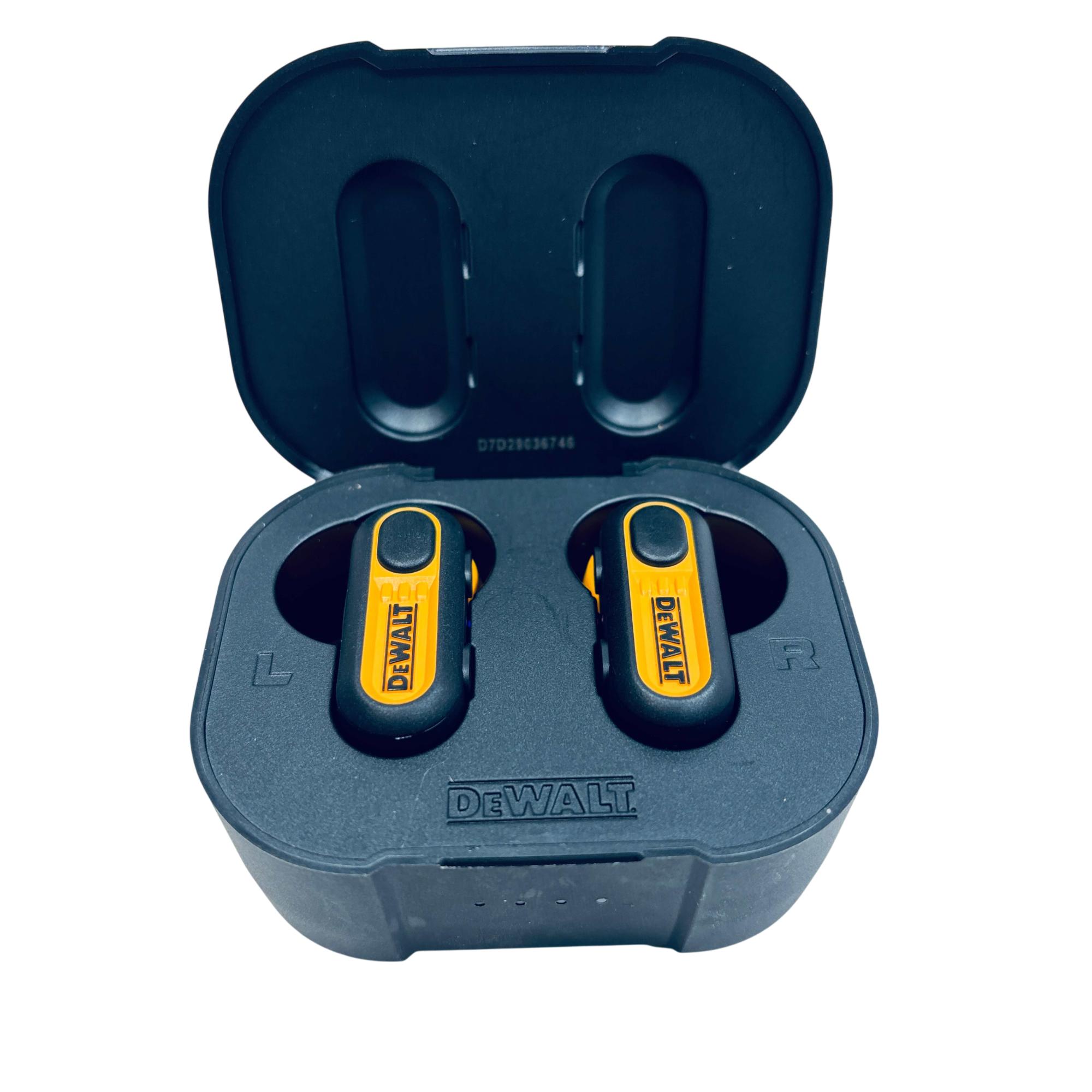 DEWALT DXMA1902092 Jobsite Pro-X1 True Wireless Bluetooth Earbuds deliver robust audio performance designed specifically for demanding work environments. These earbuds feature a durable black and yellow construction with true wireless Bluetooth connectivity, offering a secure and comfortable fit for extended use on the jobsite. Engineered to withstand tough conditions, they provide clear sound quality and convenient, on-the-go functionality for professionals.
