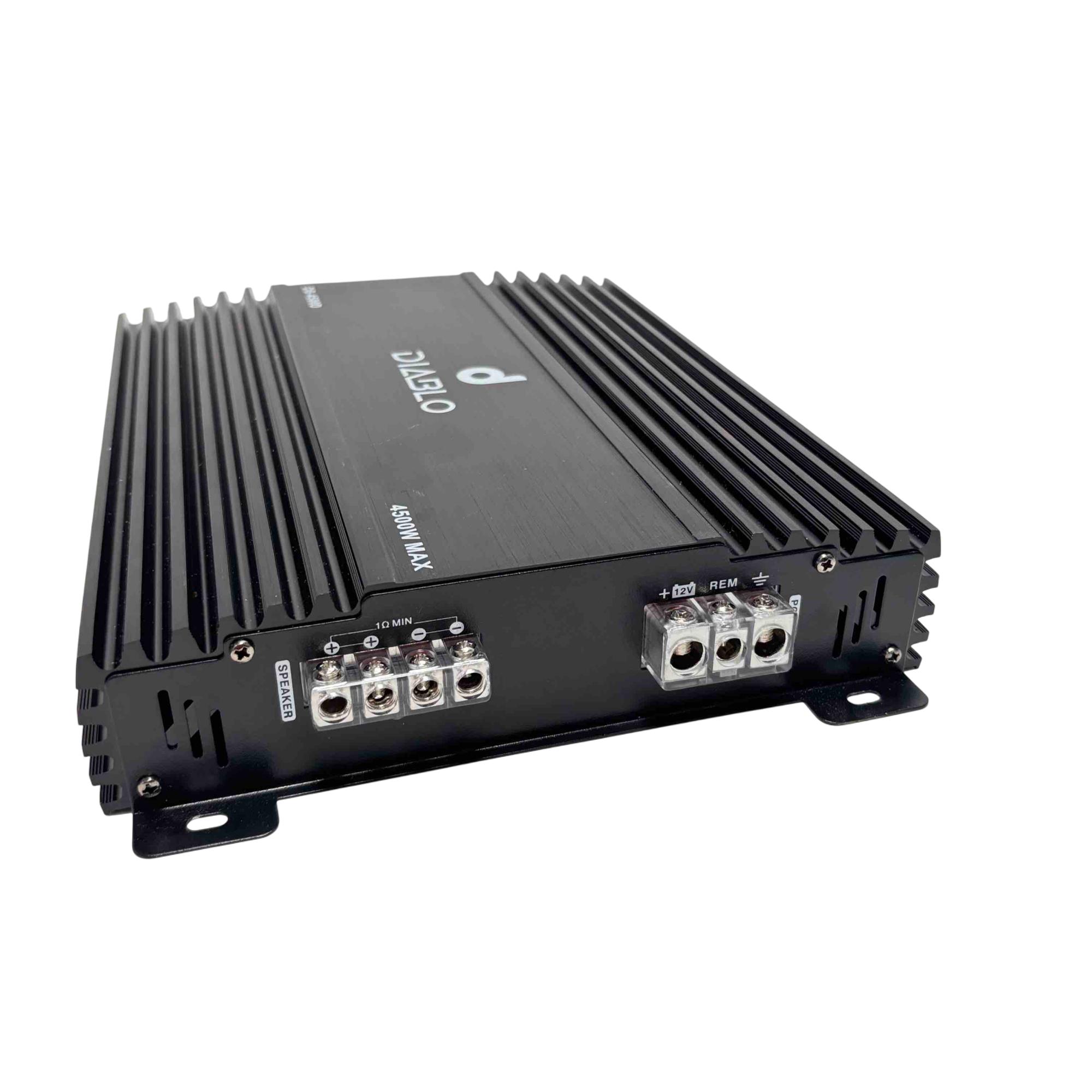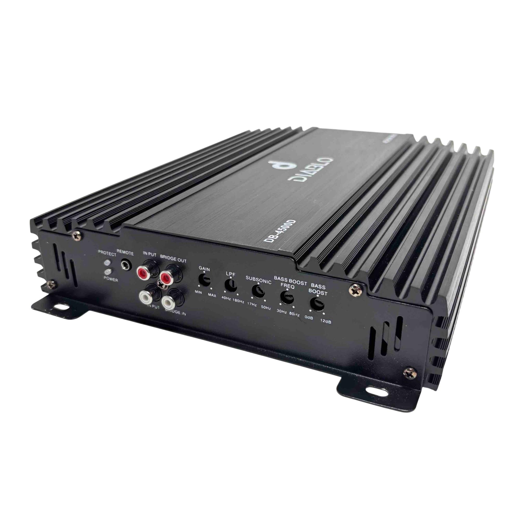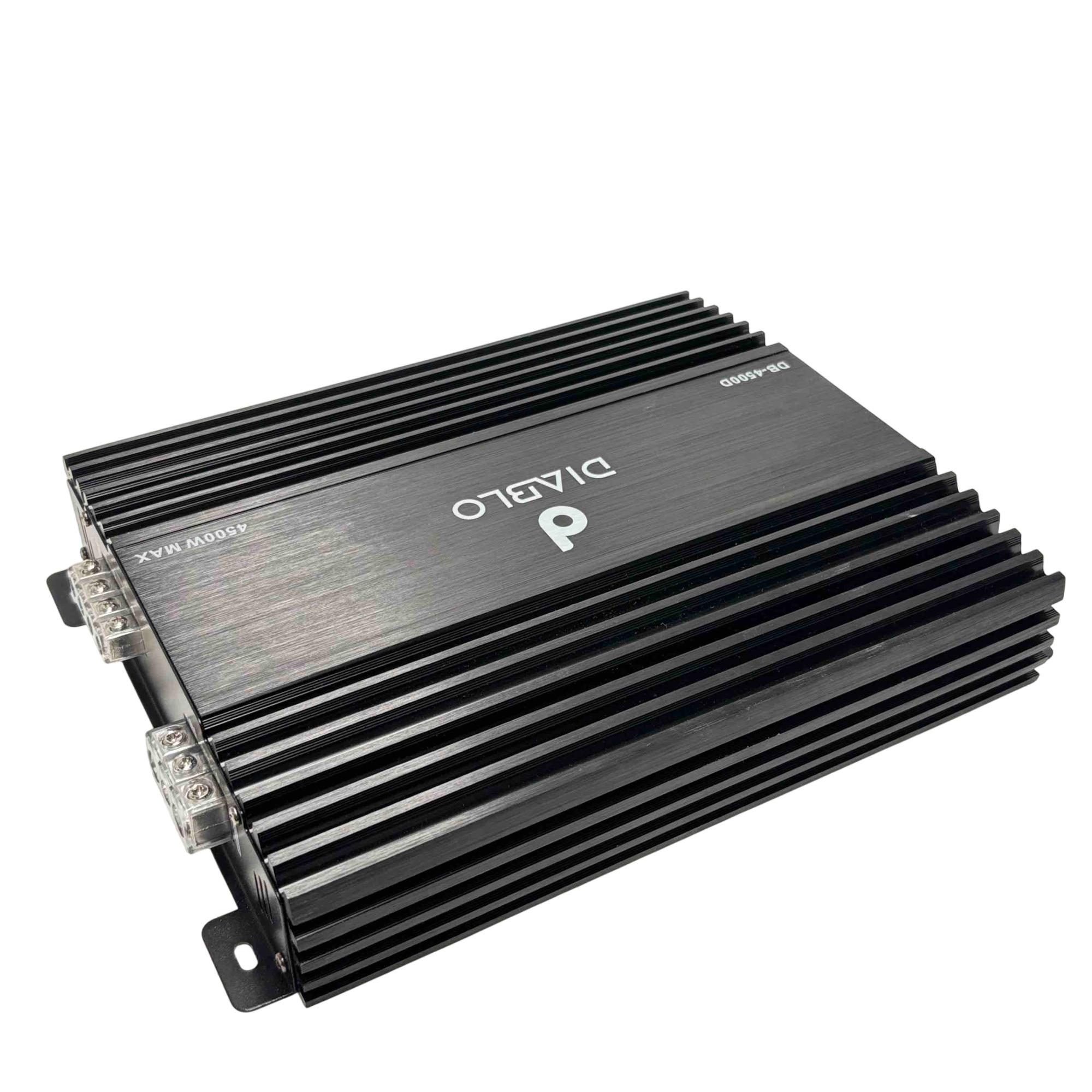 Unleash incredible power and performance in your vehicles sound system with the Diablo DB-4500D 4500W Max Car Audio Amplifier. This robust black metal amplifier features advanced input/output ports, adjustable bass and frequency controls, and superior heat dissipation for uninterrupted, high-quality audio. Get ready for deep bass and crystal-clear sound, perfect for any car audio enthusiast.