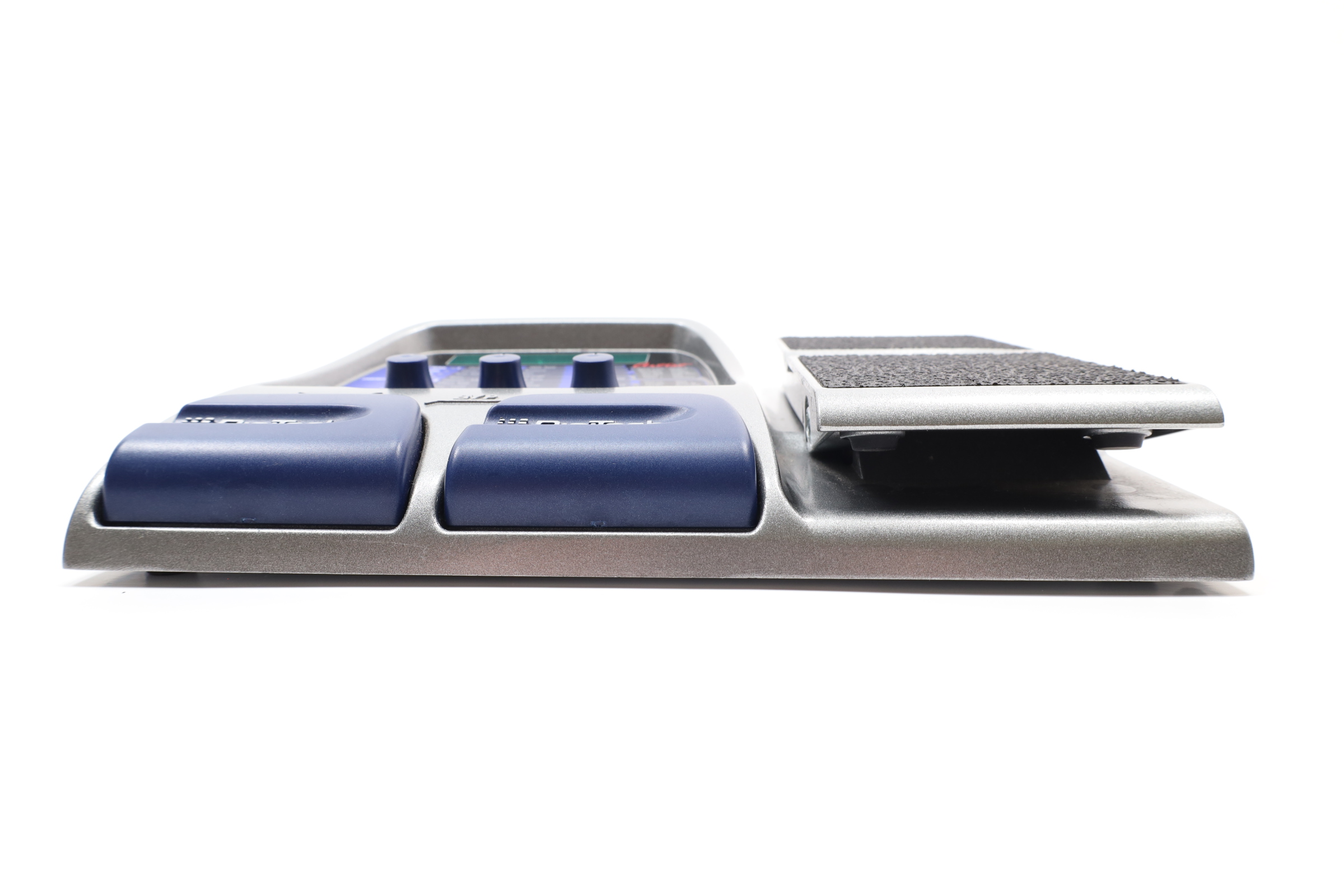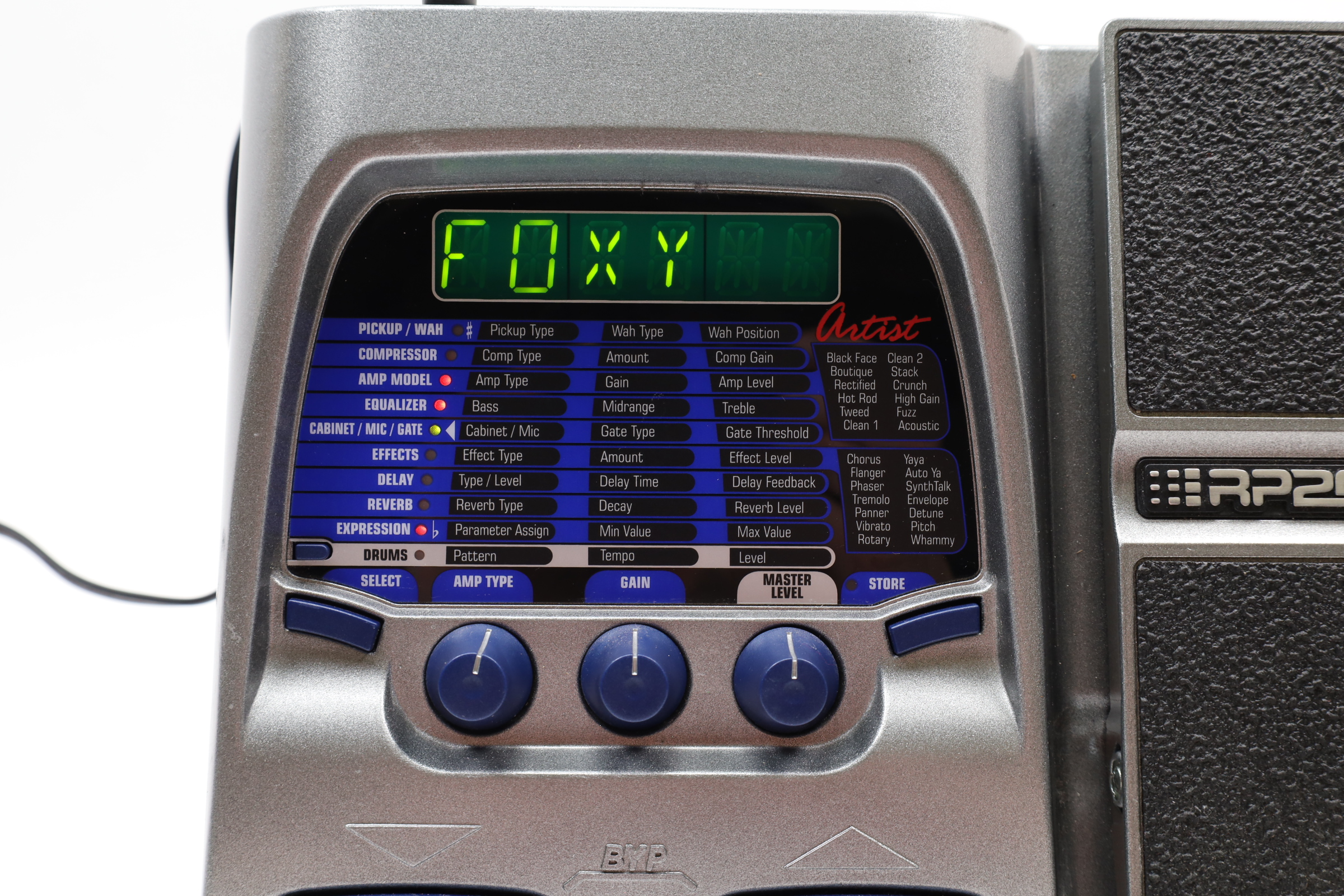 An amp modeling multi-effects processor designed to cater to the needs of guitarists seeking a range of vintage and modern tones. It boasts 28 programmable studio-quality effects, allowing up to 12 to be used simultaneously, and features a built-in expression pedal for real-time control over various parameters. Users can navigate and adjust settings using the 6-character alpha-numeric display and a user-friendly interface with three knobs. The device also includes a rhythm trainer with 30 patterns to aid in timing improvement, a chromatic tuner for easy instrument tuning, and a stereo output. The RP200A provides 40 factory presets and 40 user presets for personalized sound creation. Its connectivity options include a 1/4-inch input, 1/4-inch TRS stereo output, 1/8-inch stereo headphone output, and an 1/8-inch stereo Jam-a-Long input for practicing with external audio sources.