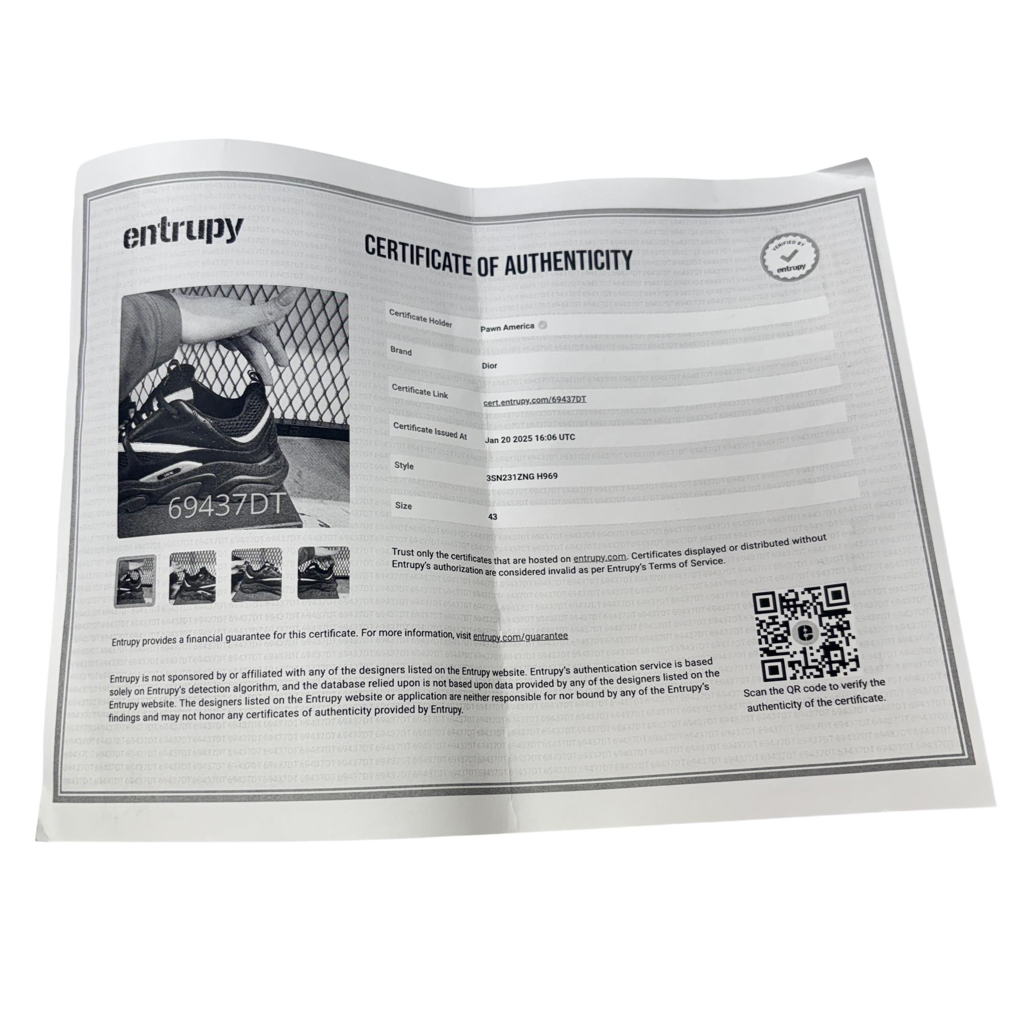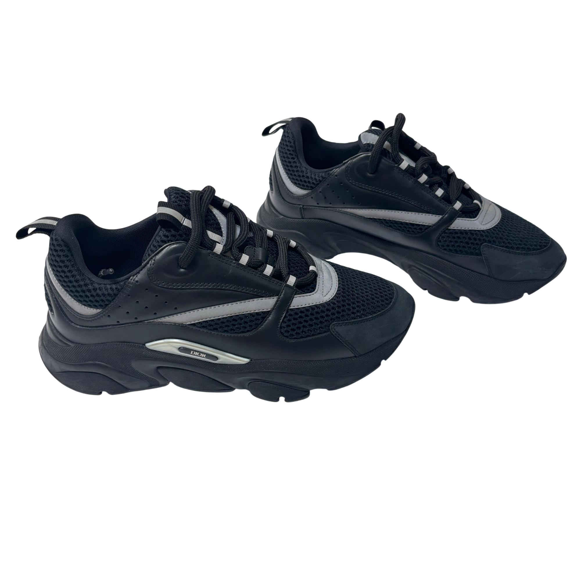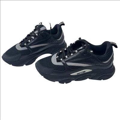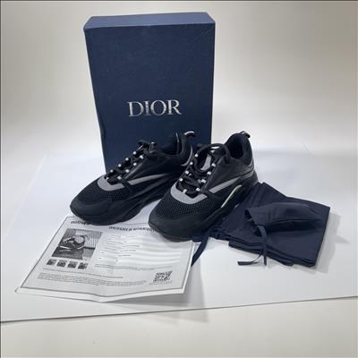 Dior B22 Black & Grey Sneakers with Original Box and Certificate of Authenticity (Style 69437DT) feature a sleek black and grey design crafted with premium materials. Made in Italy, these stylish sneakers showcase a distinctive logo and high-quality construction ideal for fashion-forward sneaker enthusiasts.