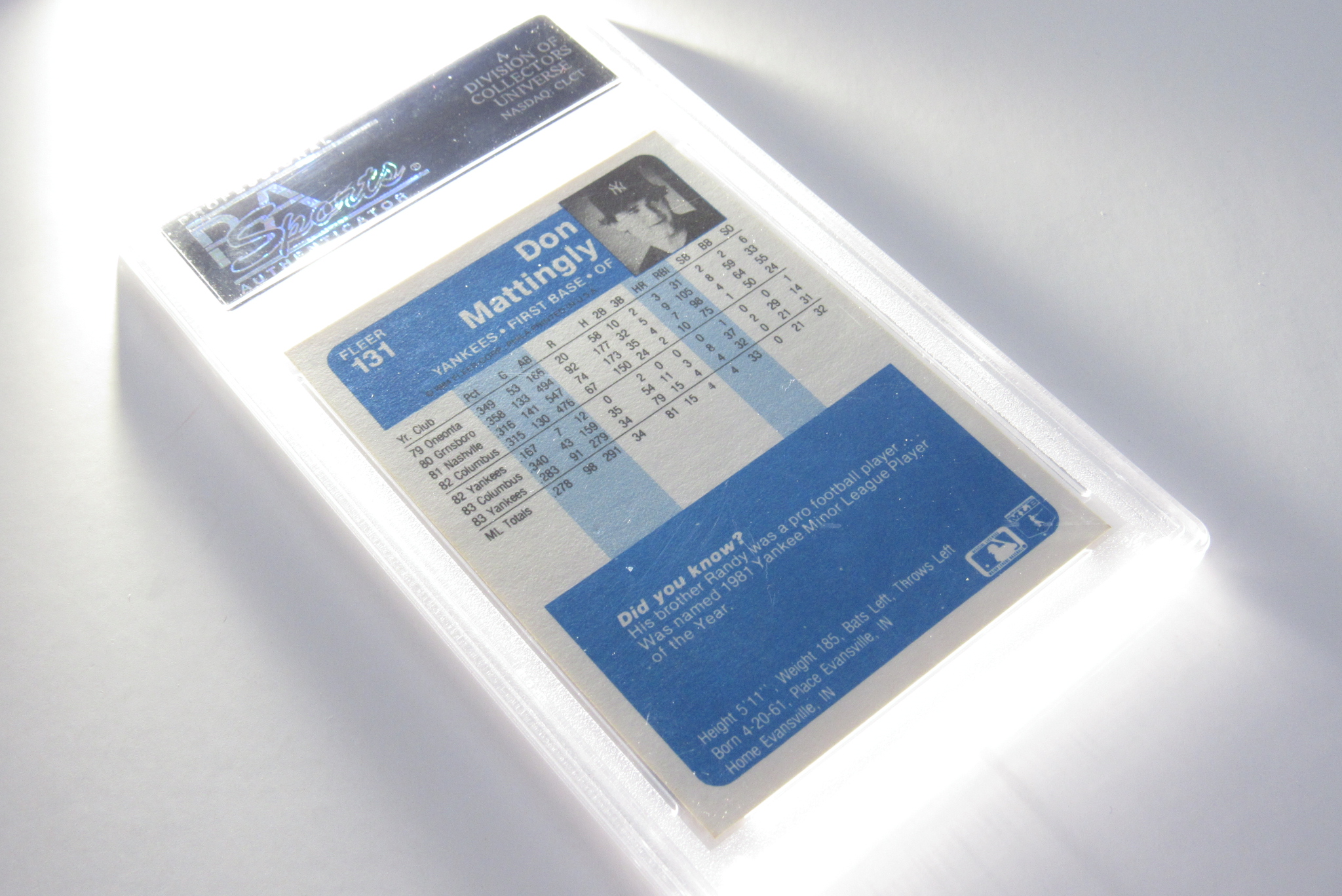 Model: Don Mattingly 1984 Fleer #131 PSA 8