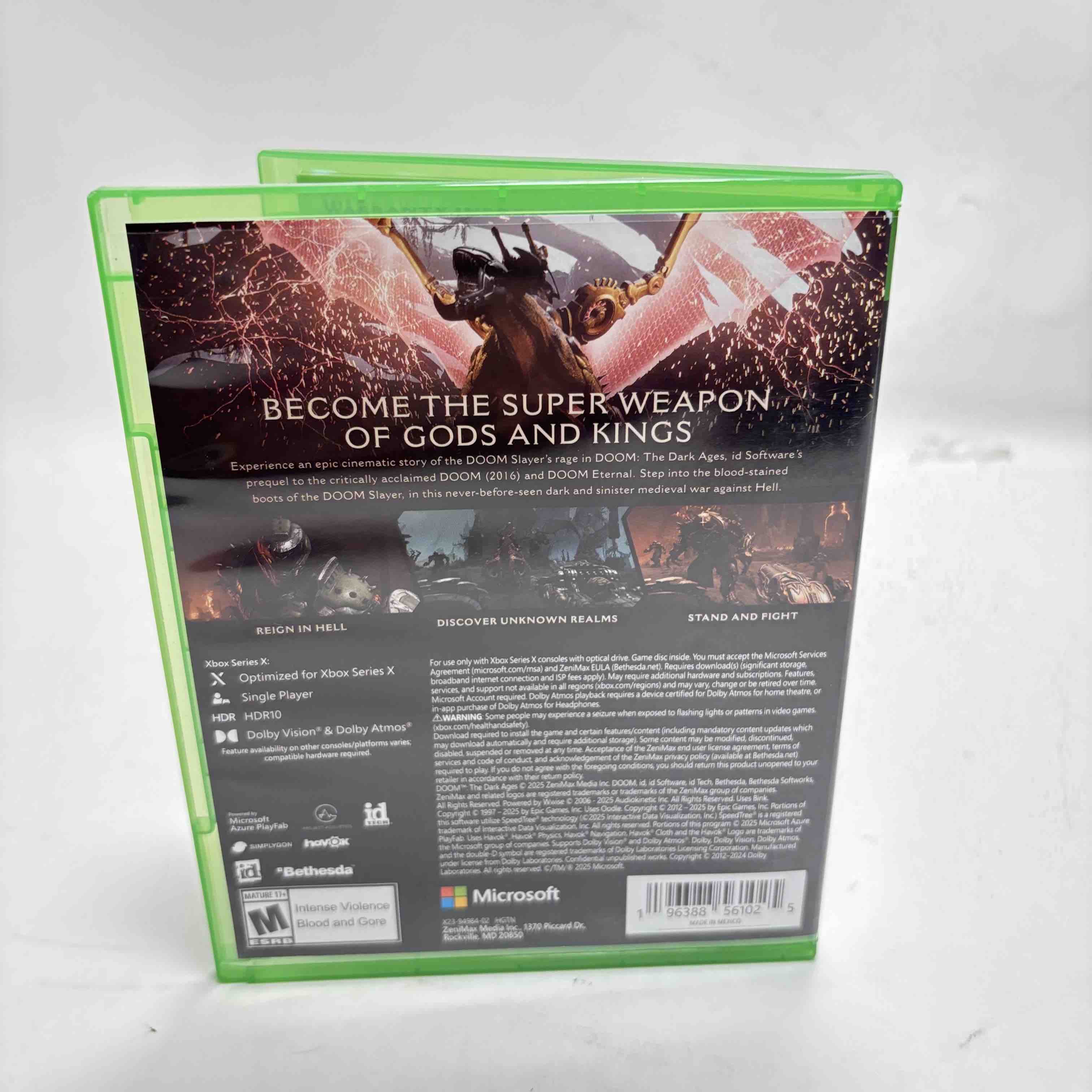 Experience the next evolution in the legendary DOOM franchise with DOOM: The Dark Ages for Xbox Series X. Brought to you by Bethesda, this game immerses you in a visceral, action-packed world brimming with demonic enemies and high-octane combat. A must-have for fans of intense first-person shooters looking for cutting-edge graphics and gameplay.