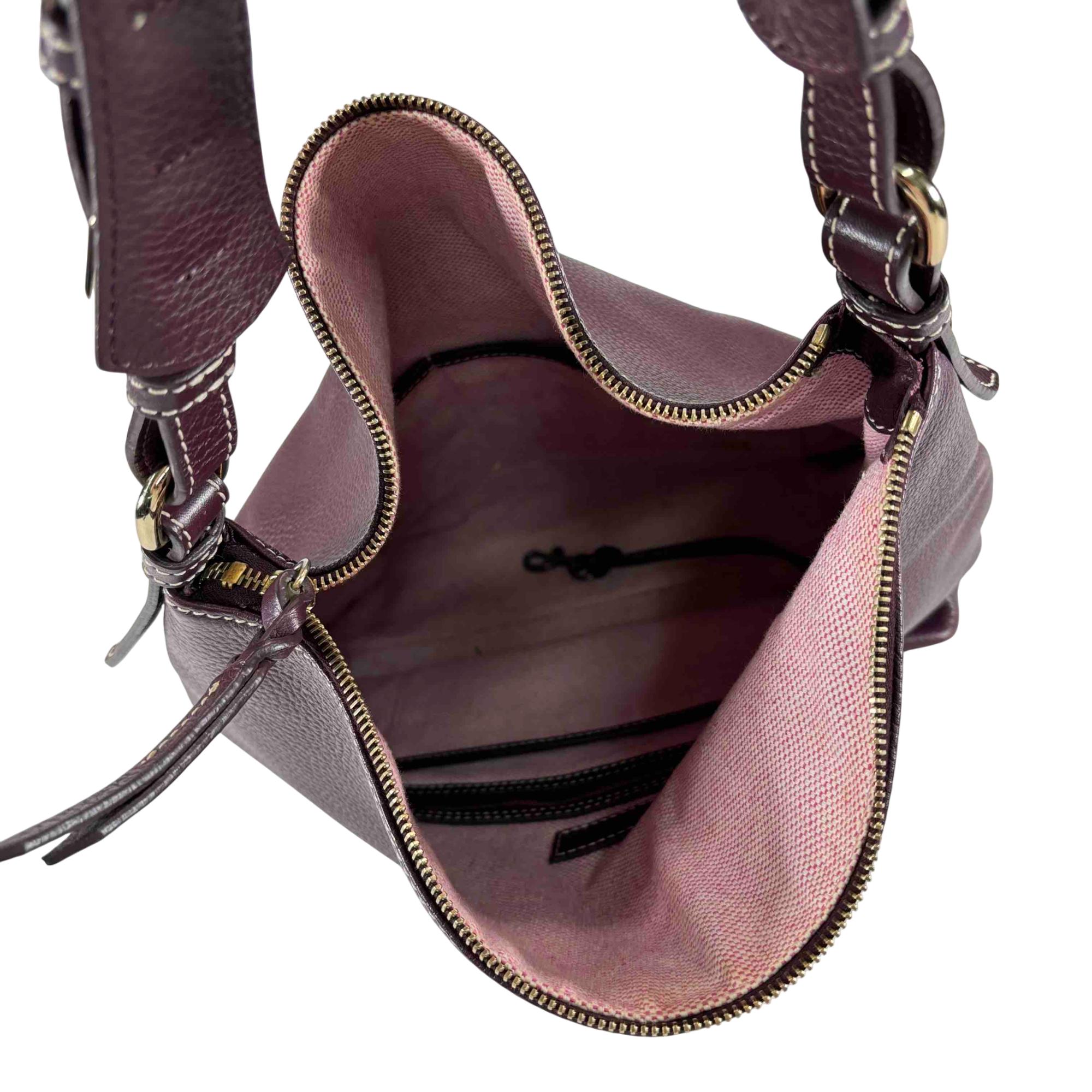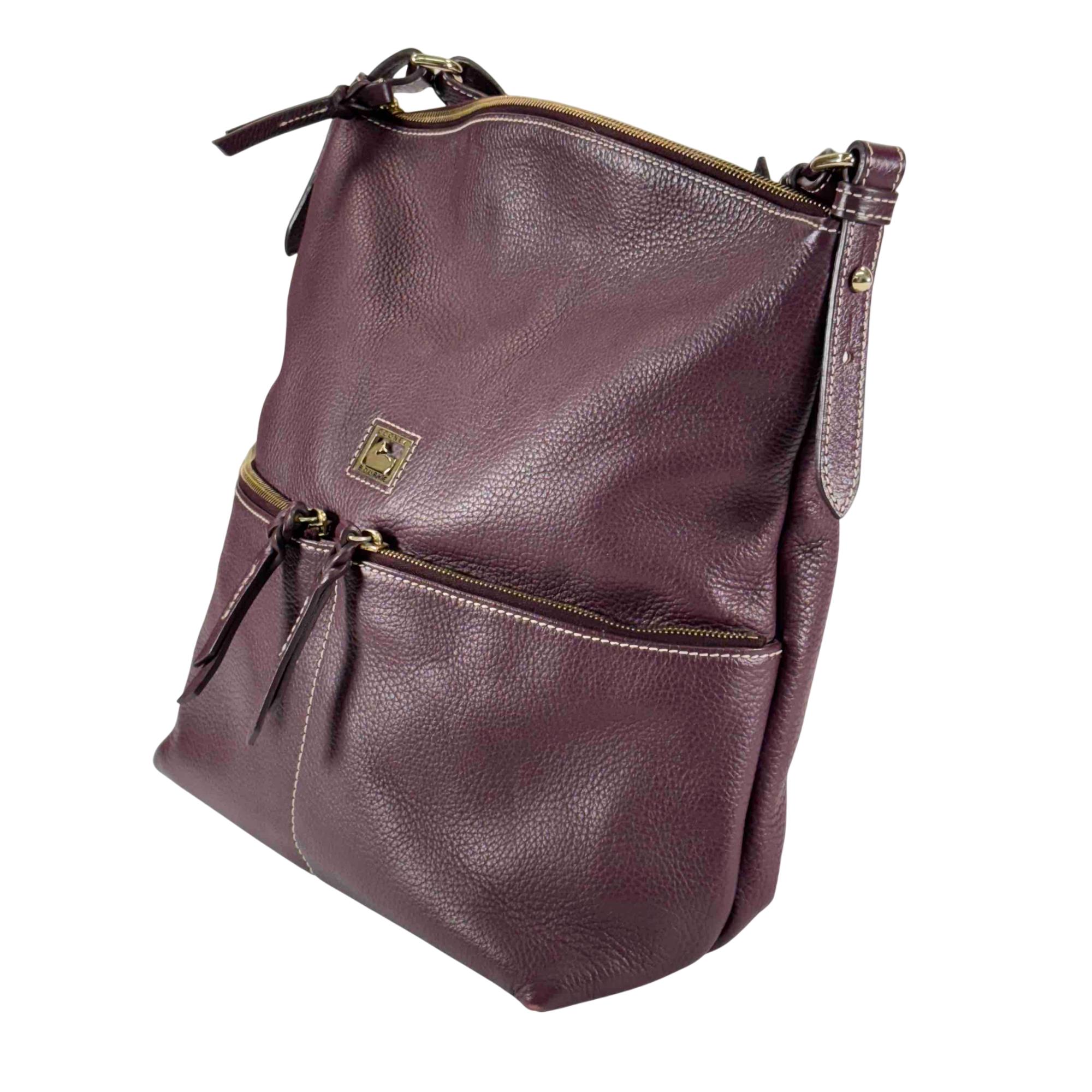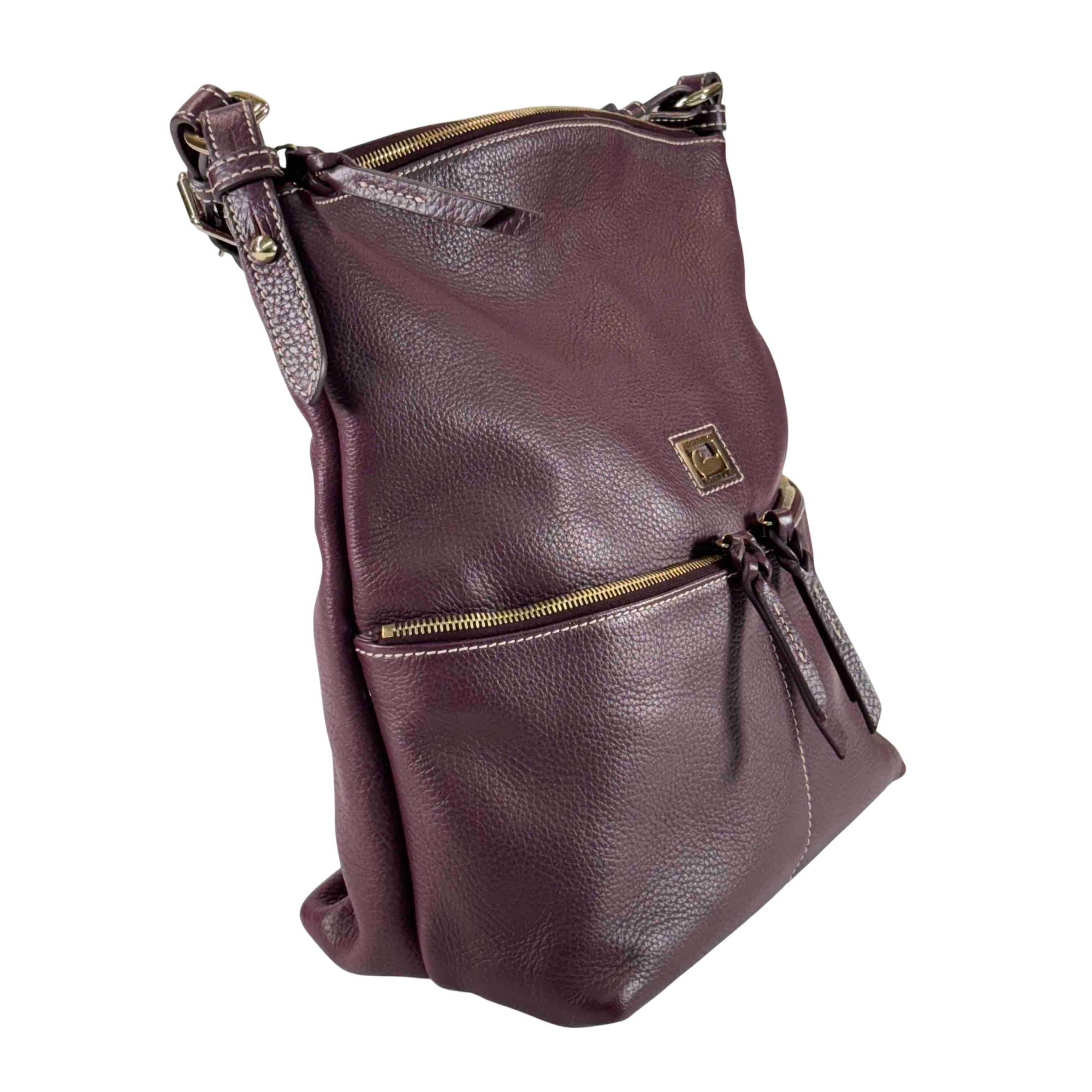 Elevate your everyday style with this Dooney & Bourke Pebble Leather Crossbody Shoulder Bag in rich burgundy. Crafted from high-quality pebbled leather, this bag features a secure zipper closure, an adjustable strap, and multiple compartments for easy organization. Its luxurious look and versatile design make it perfect for both casual outings and special occasions.