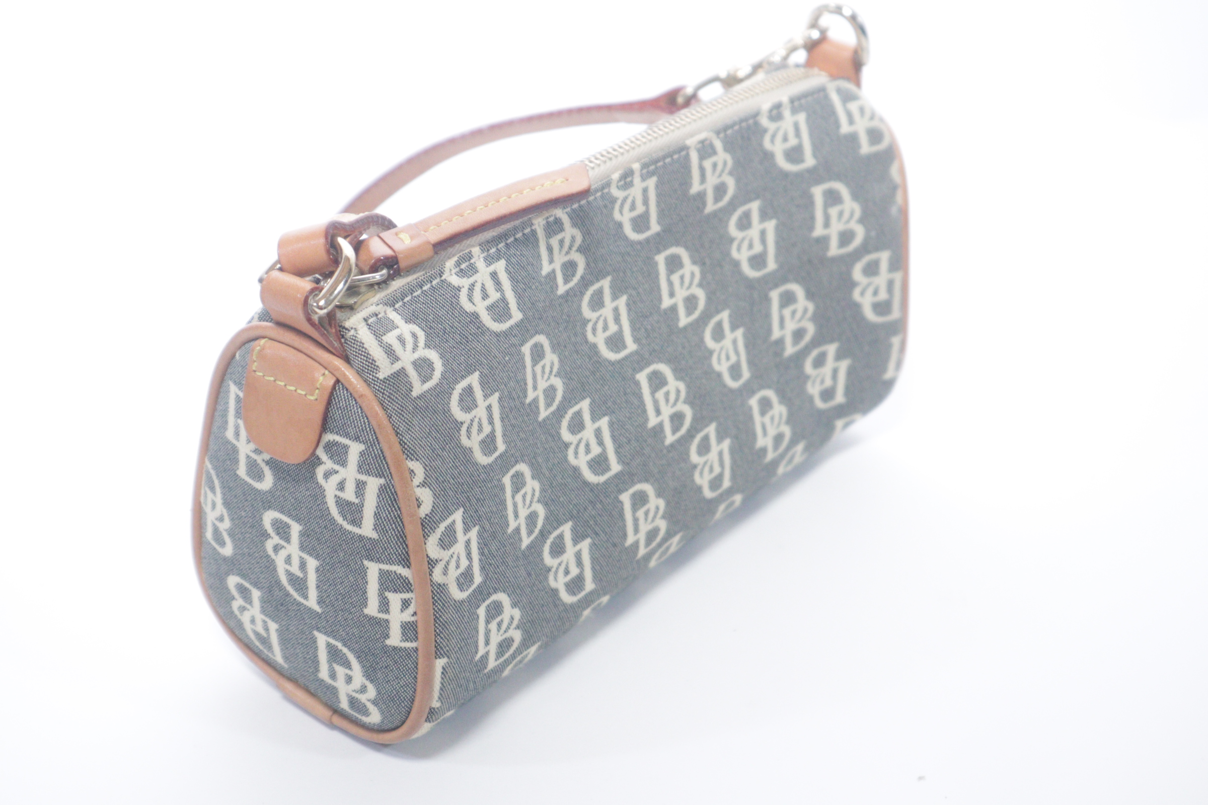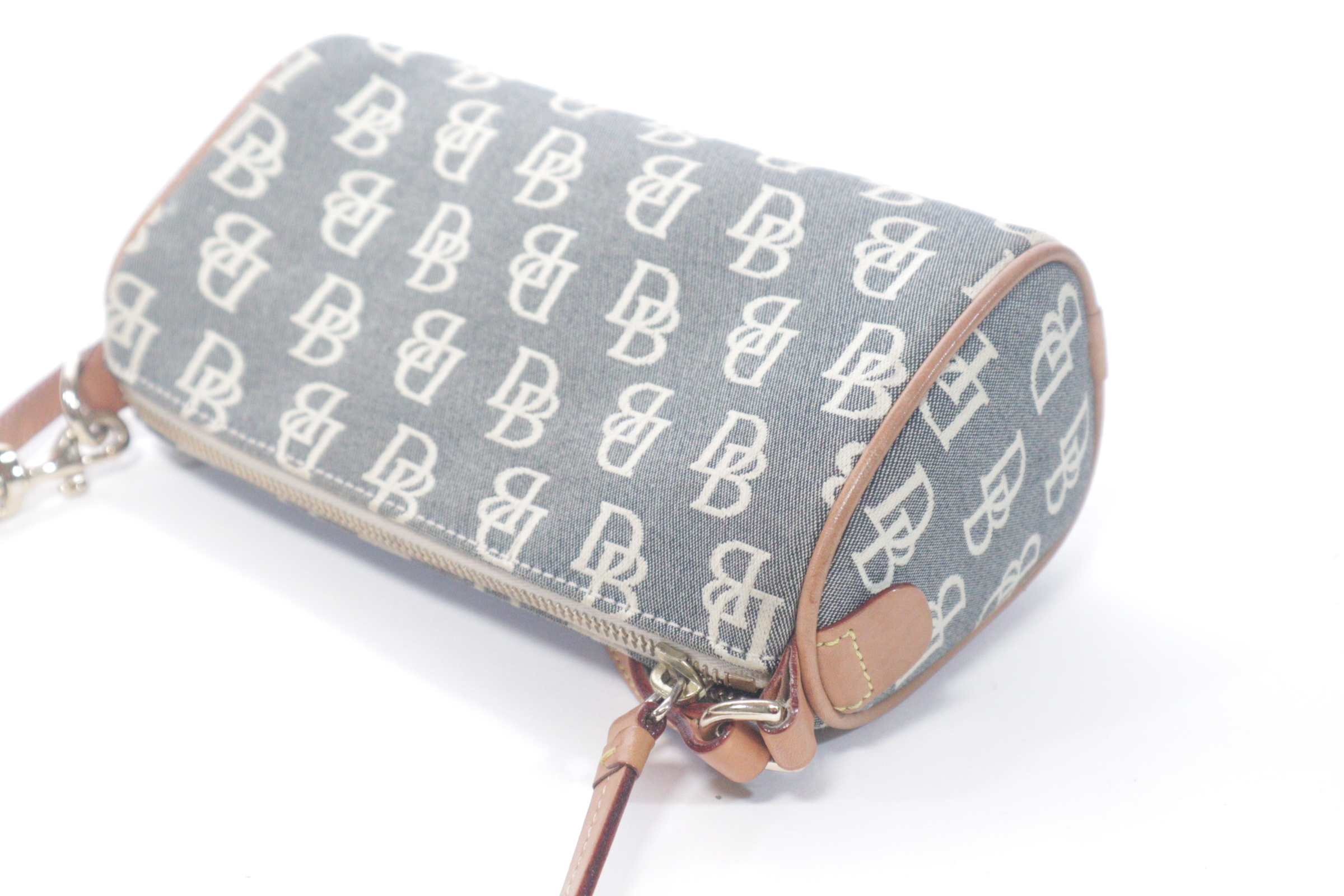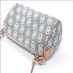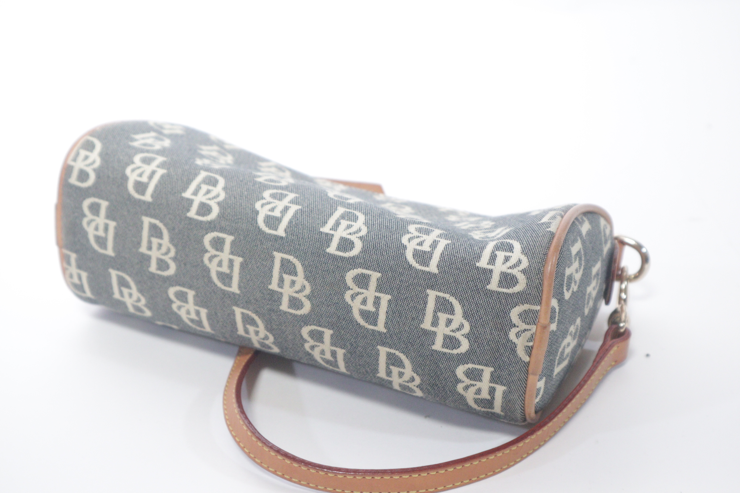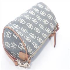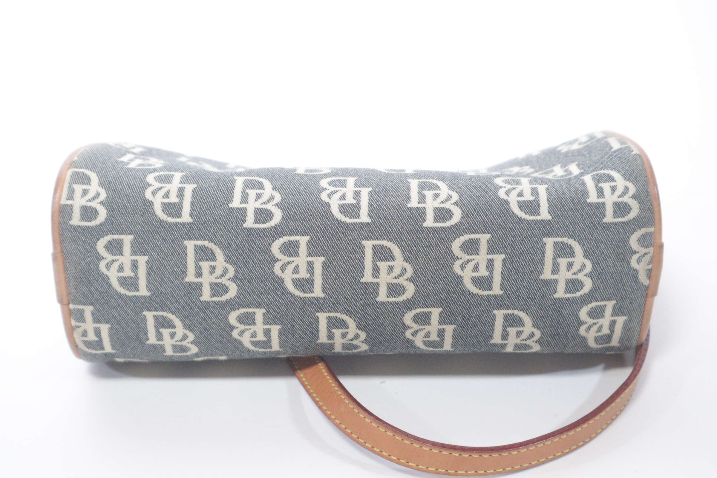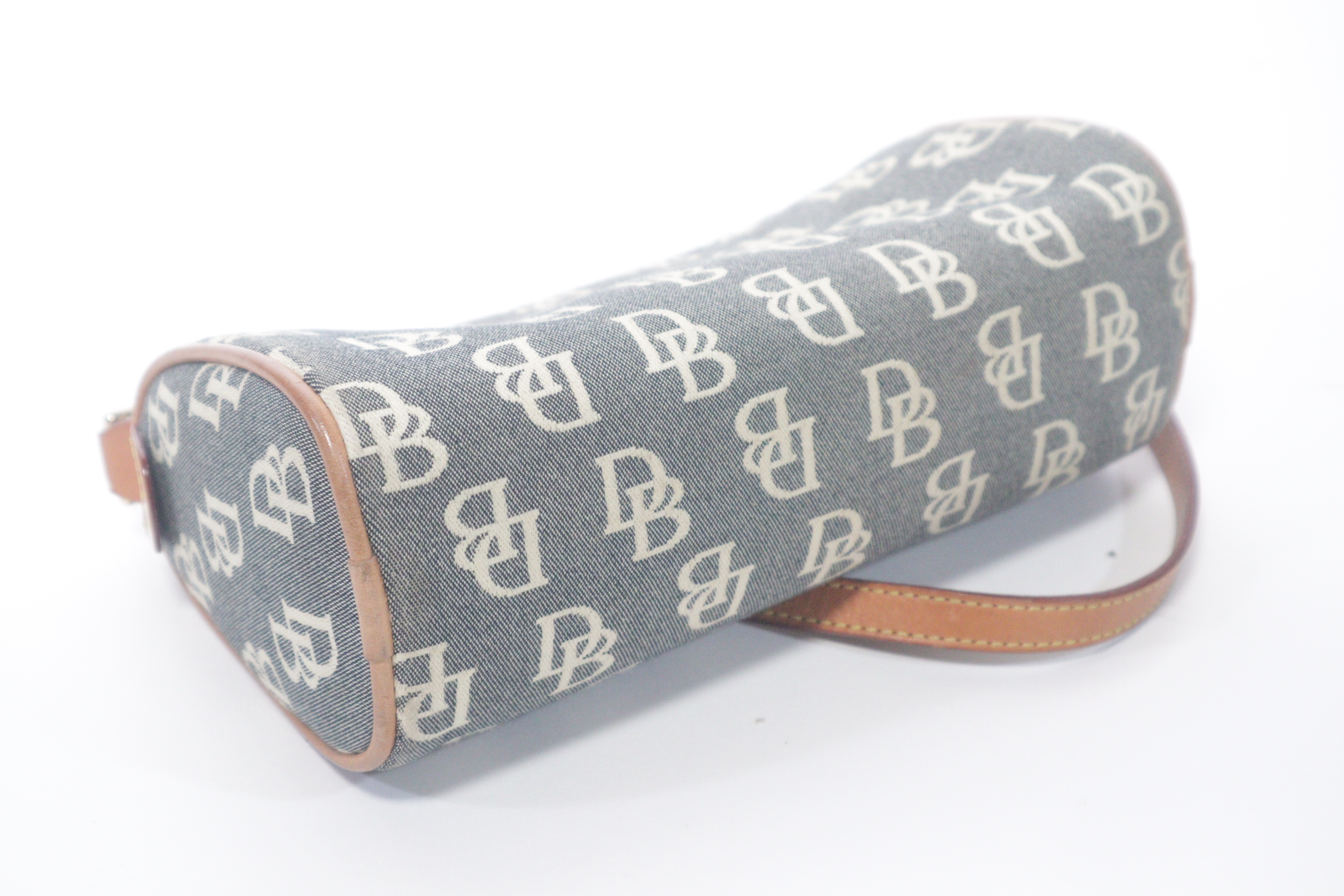 Dooney & Bourke Monogrammed Blue Gray & Brown Signature Mini Barrel Bag