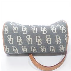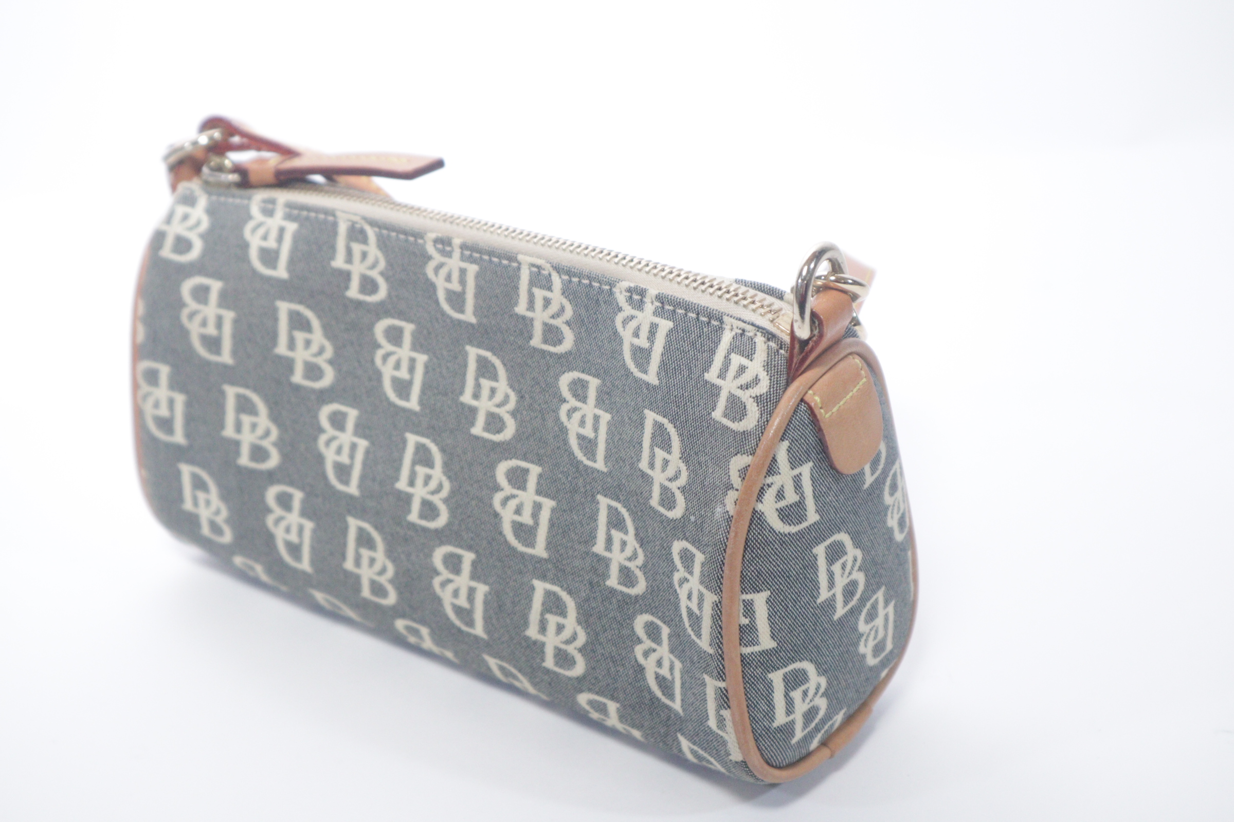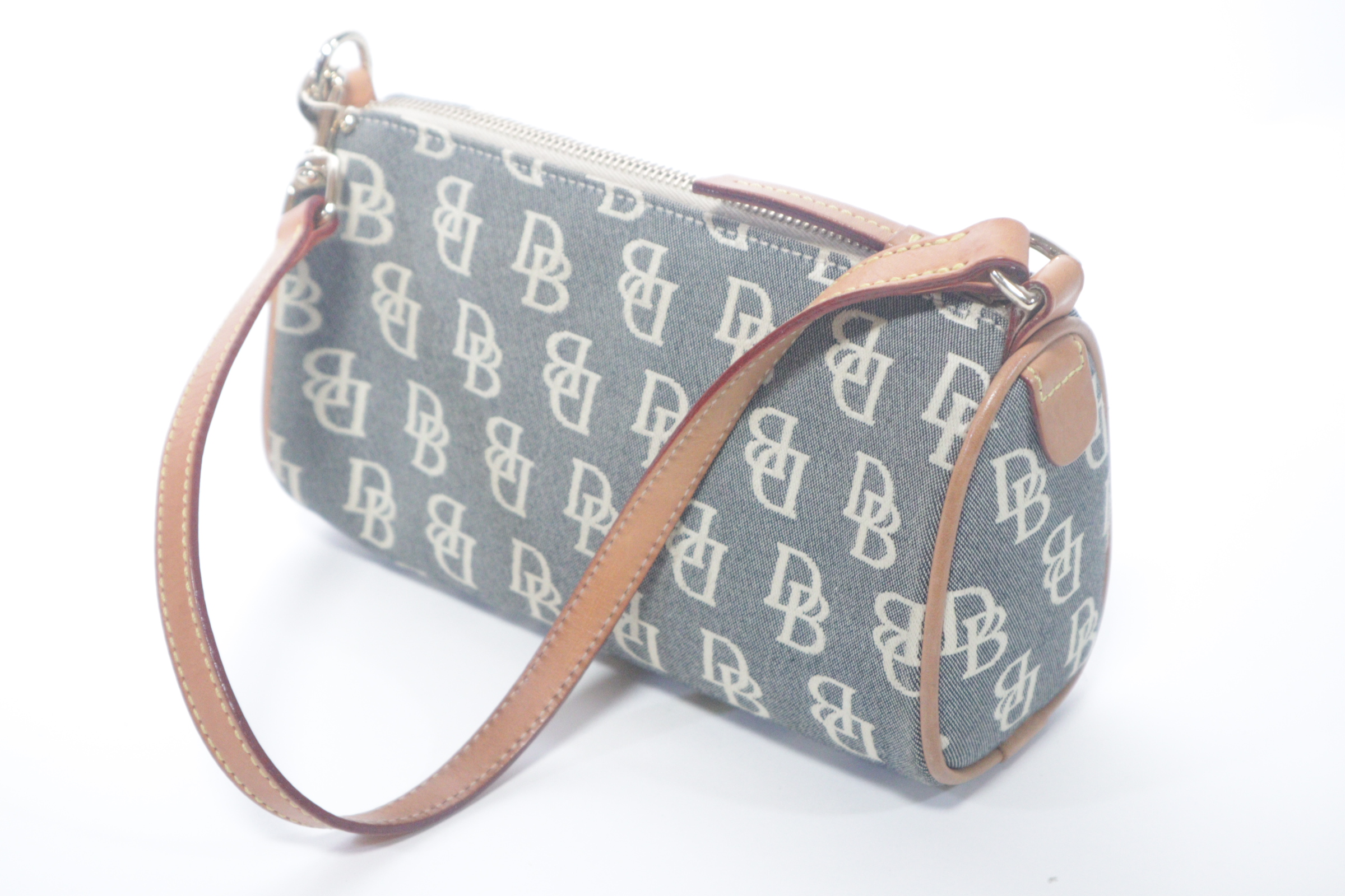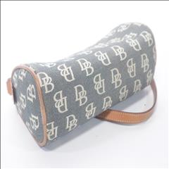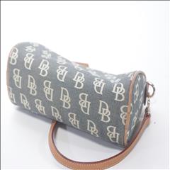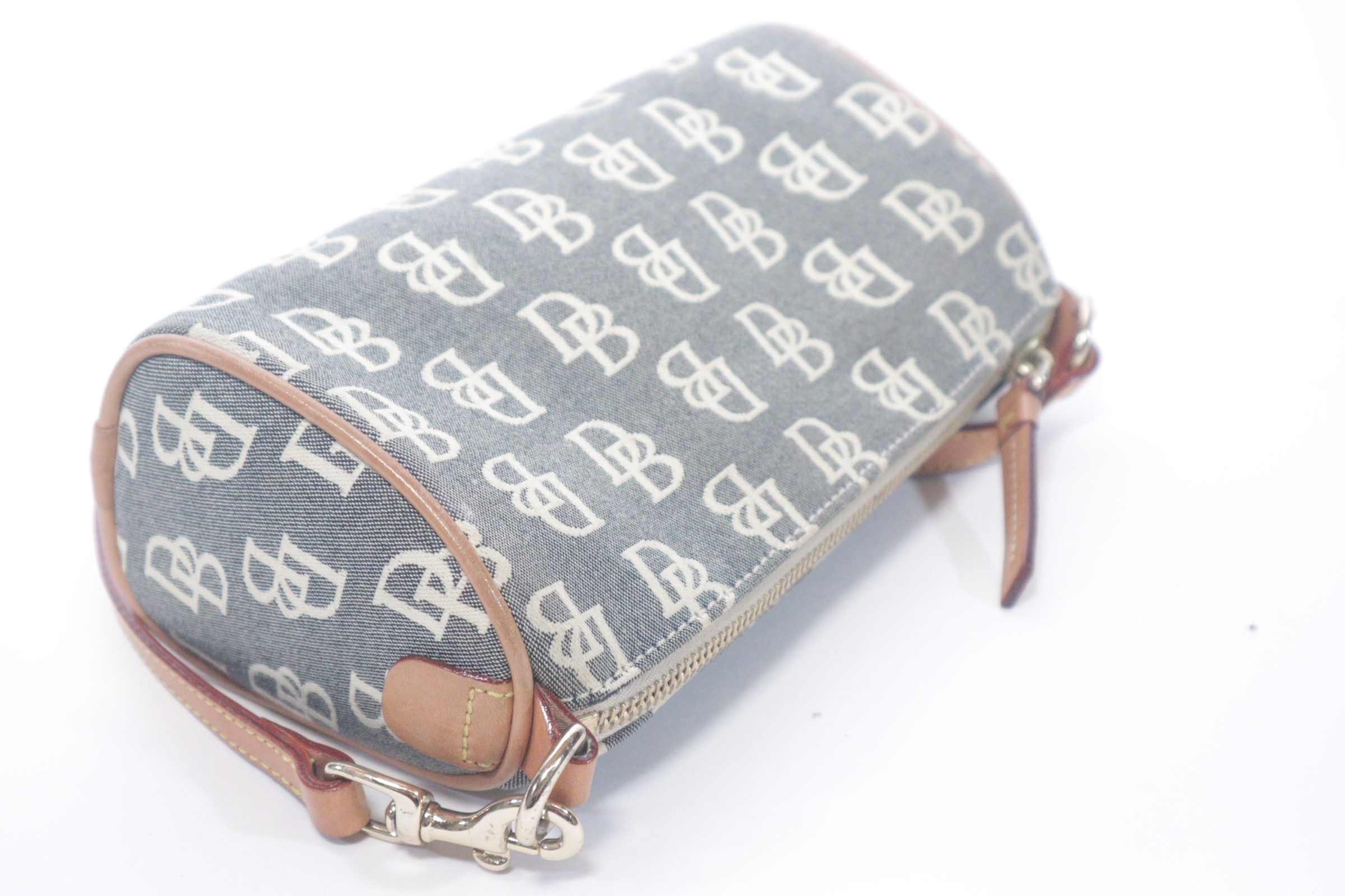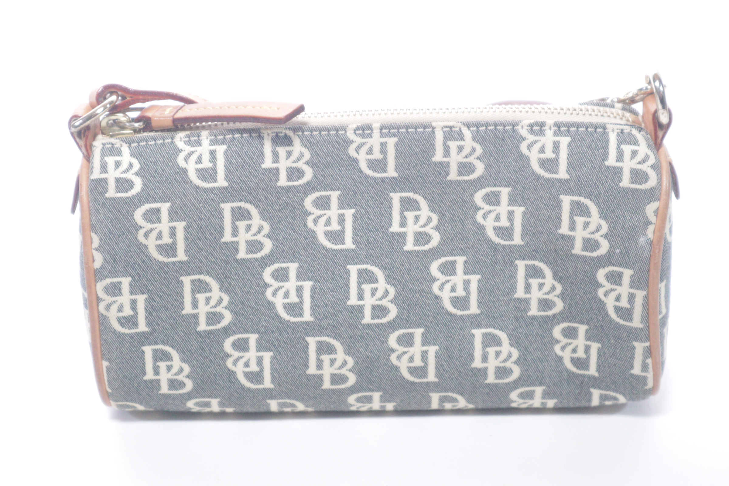 Dooney & Bourke Monogrammed Blue Gray & Brown Signature Mini Barrel Bag