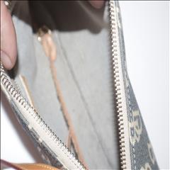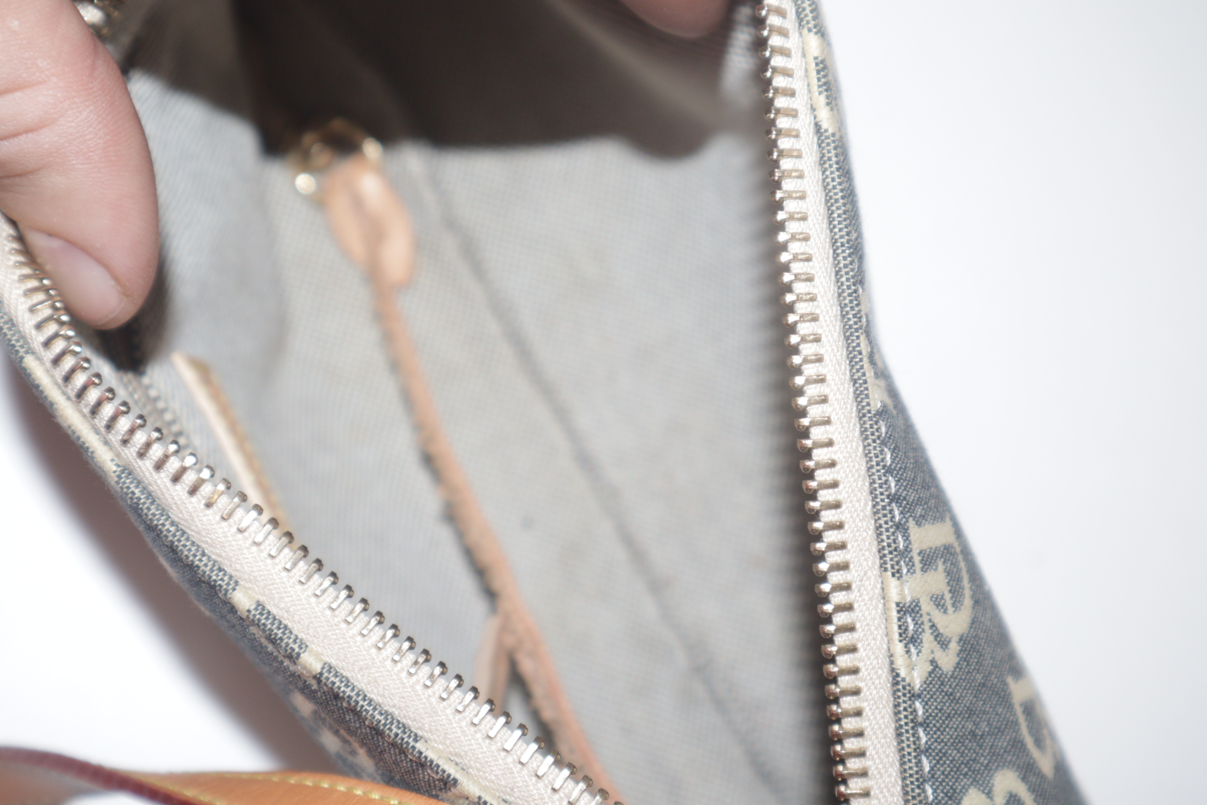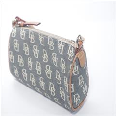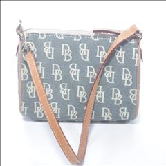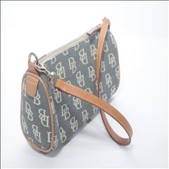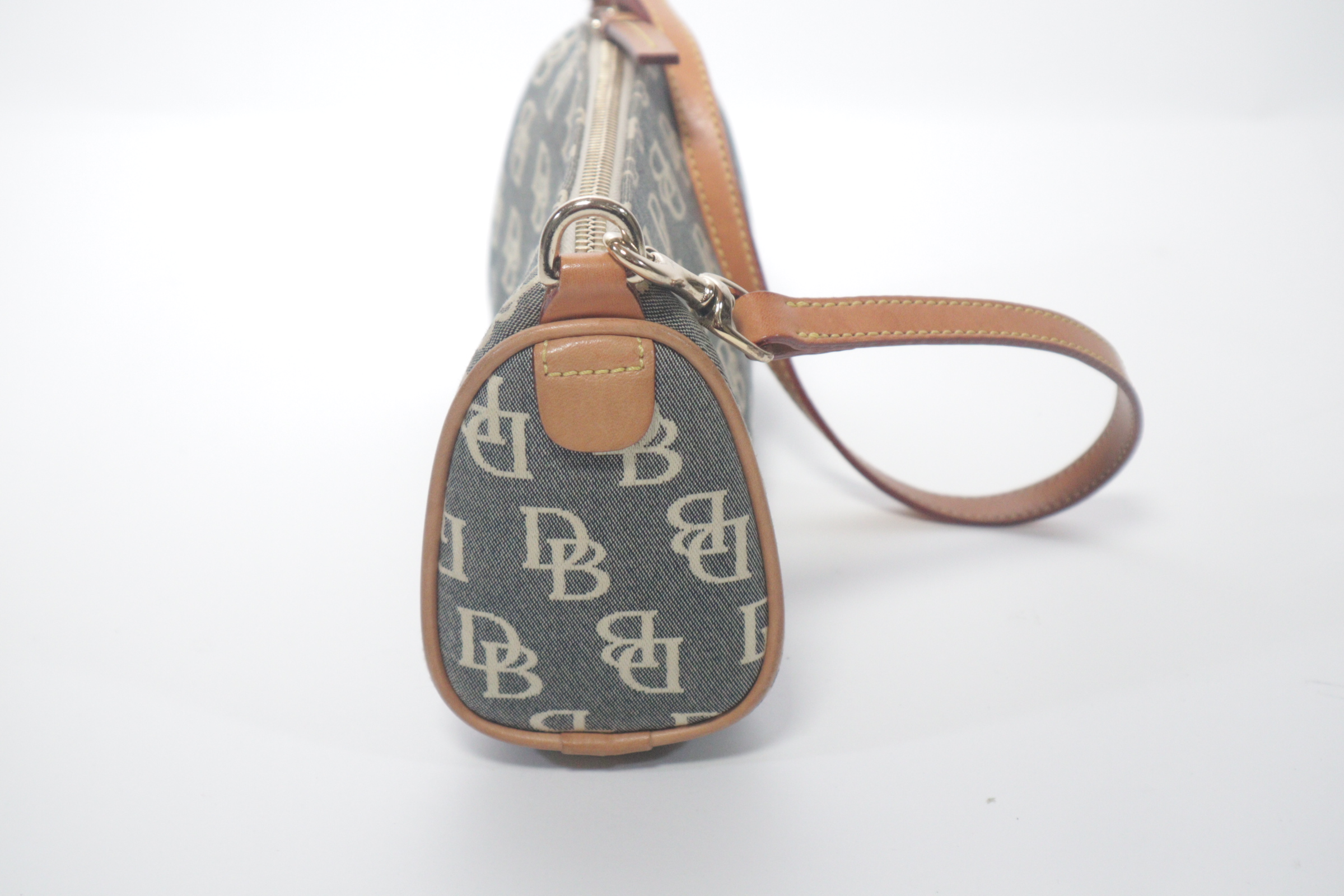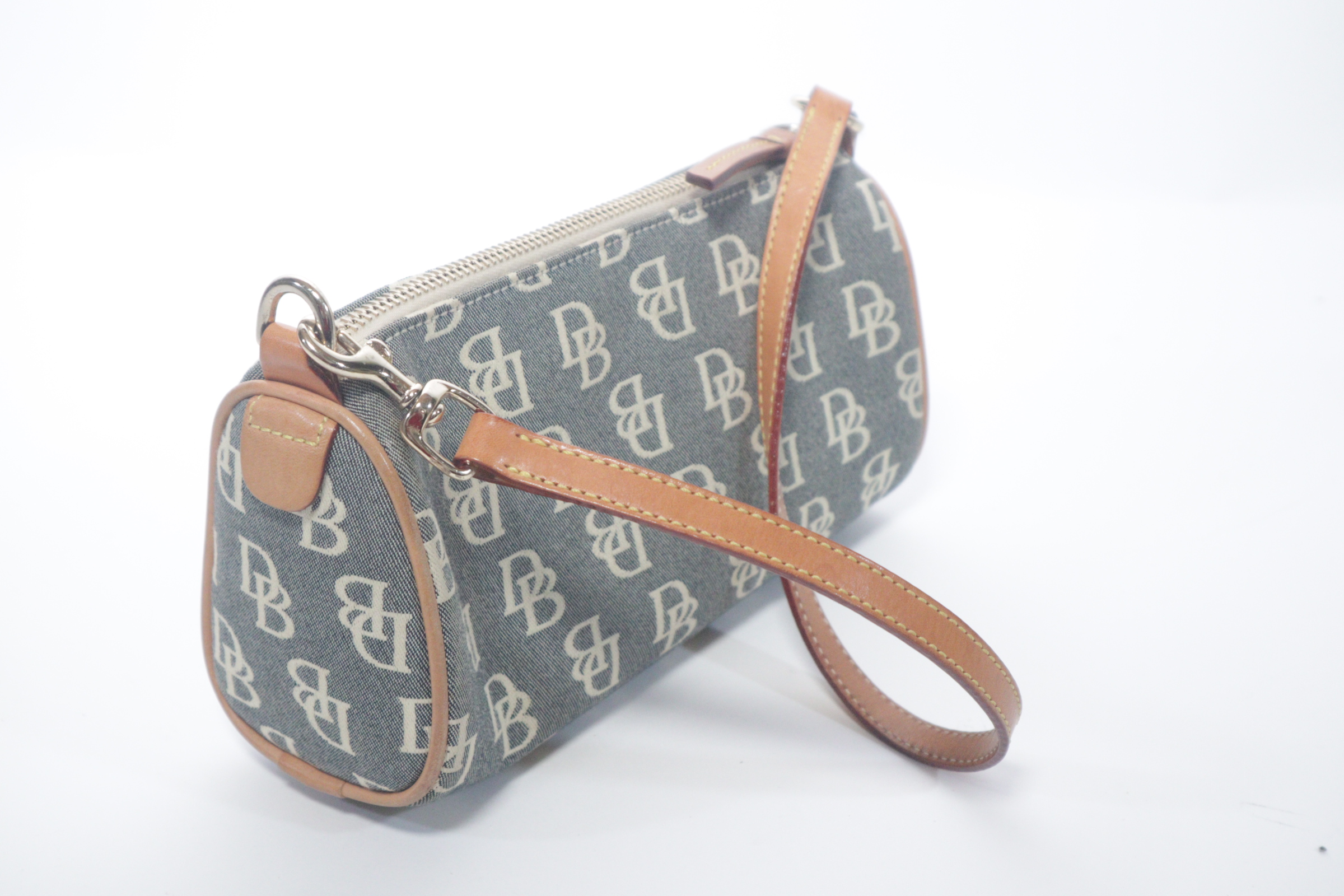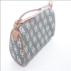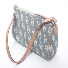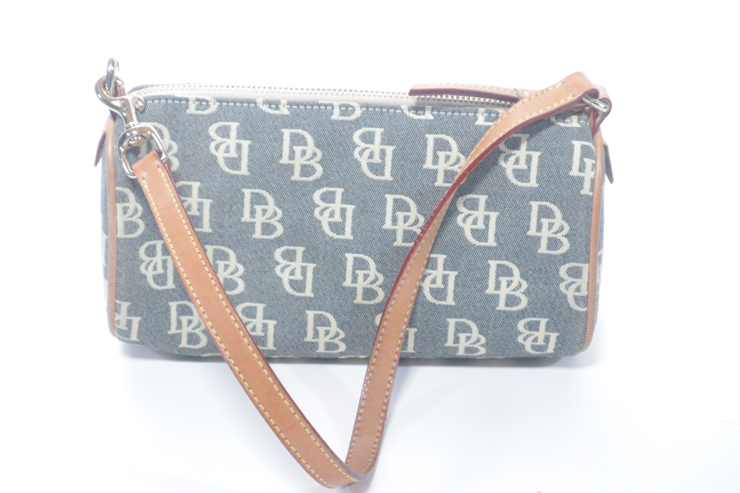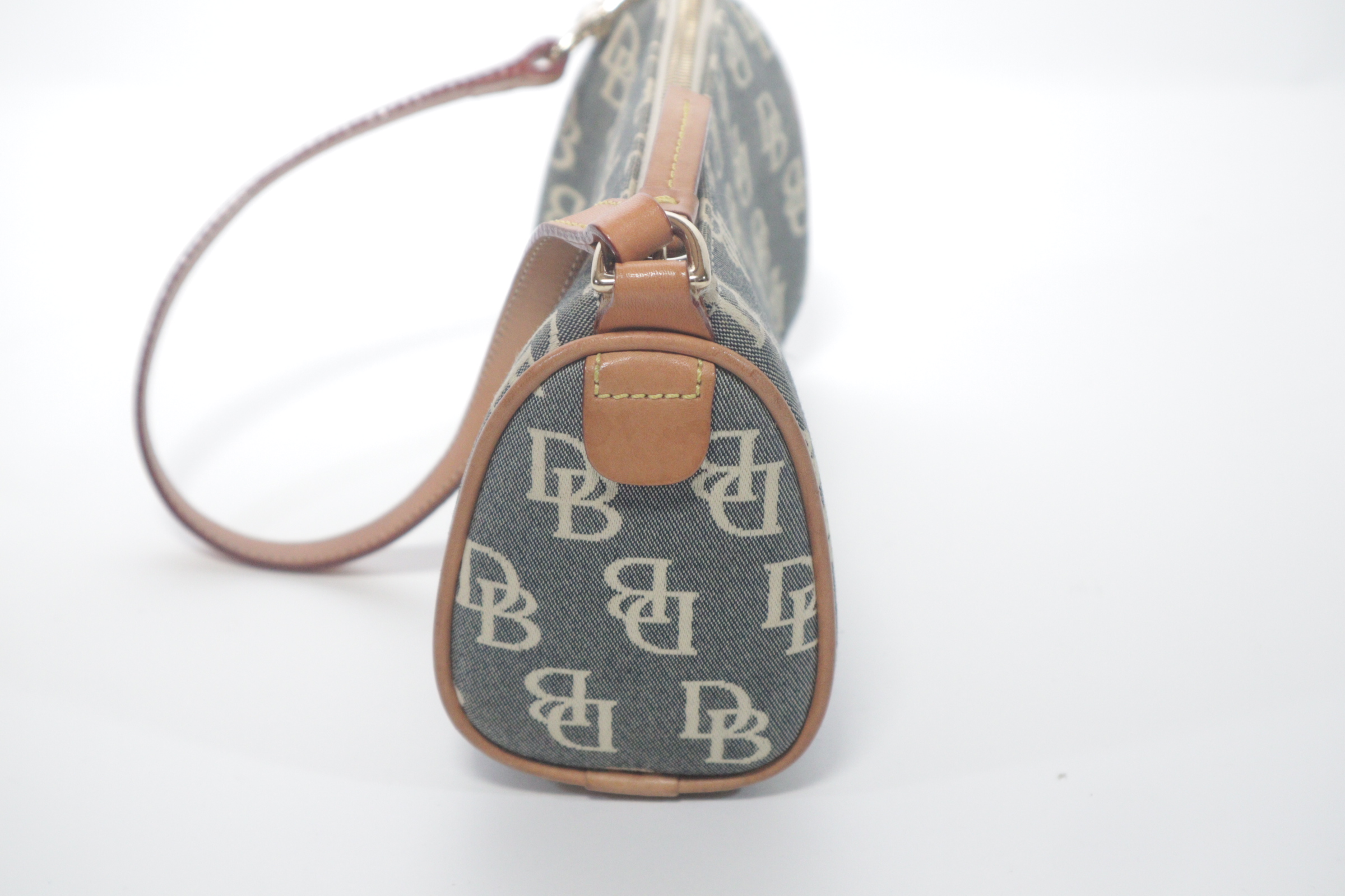 Dooney & Bourke Monogrammed Blue Gray & Brown Signature Mini Barrel Bag