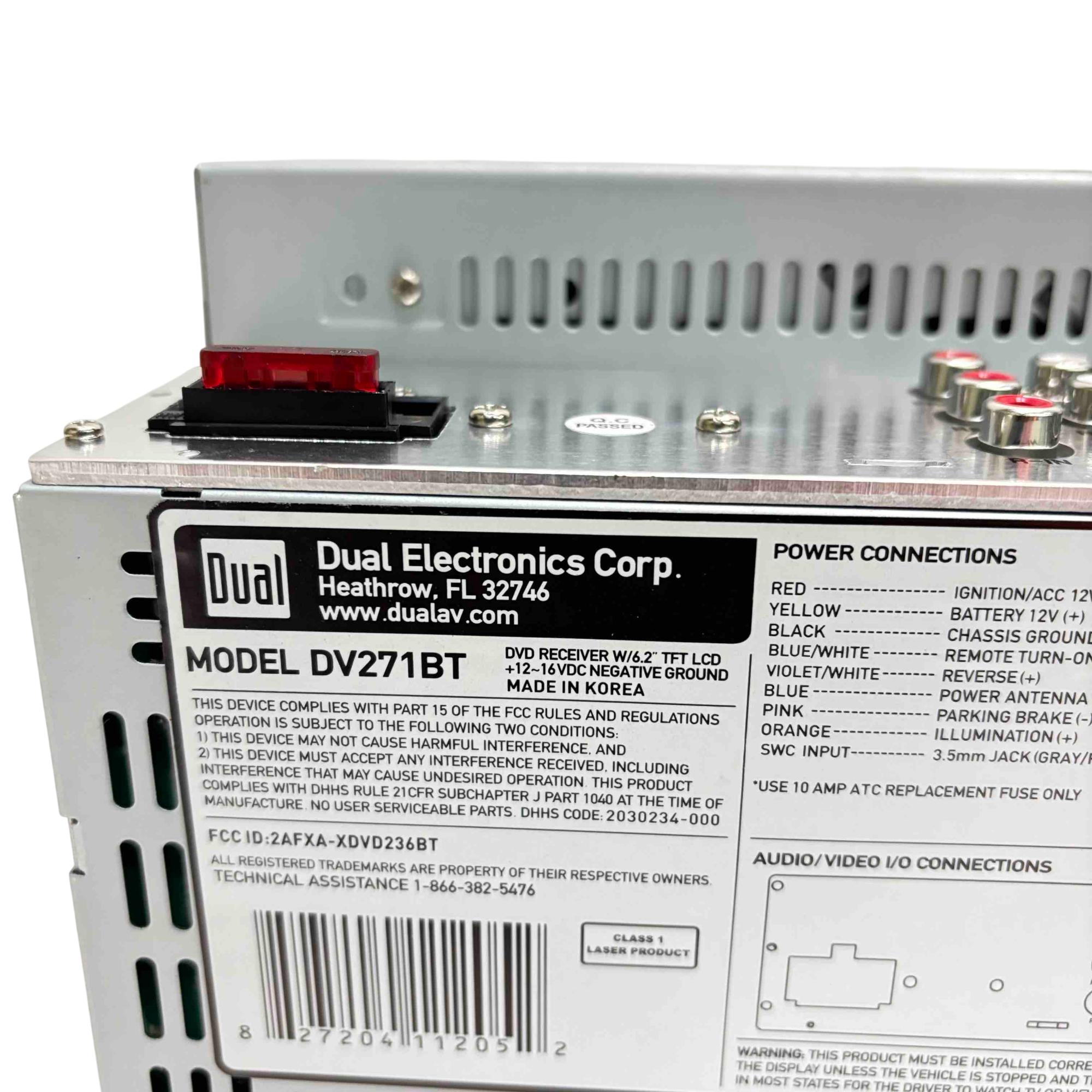 Upgrade your driving experience with the Dual DV271BT Car Radio, featuring a vibrant 6.2-inch TFT touchscreen, Bluetooth connectivity for hands-free calls and music streaming, and DVD/MP3 playback. Easy to install with included wiring harness, screws, and mounting frame, this multimedia head unit brings advanced entertainment and functionality to your vehicle at a fraction of the new cost. Enjoy seamless integration of your favorite music, USB support, and a user-friendly interface for every journey.