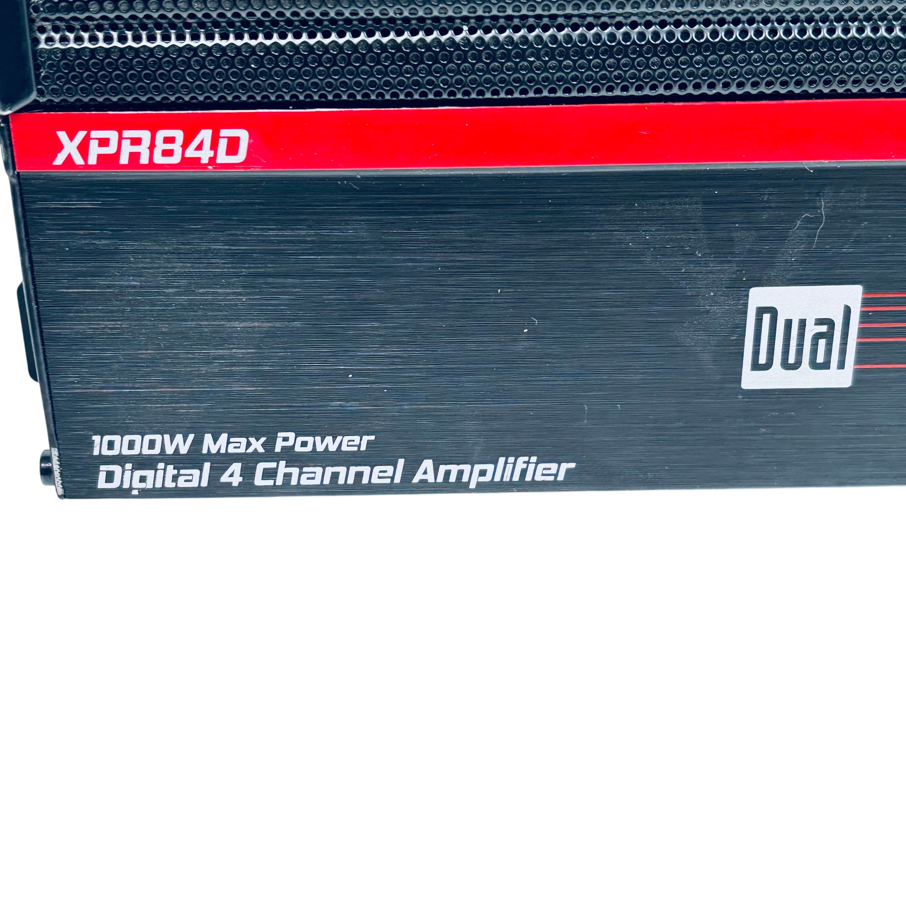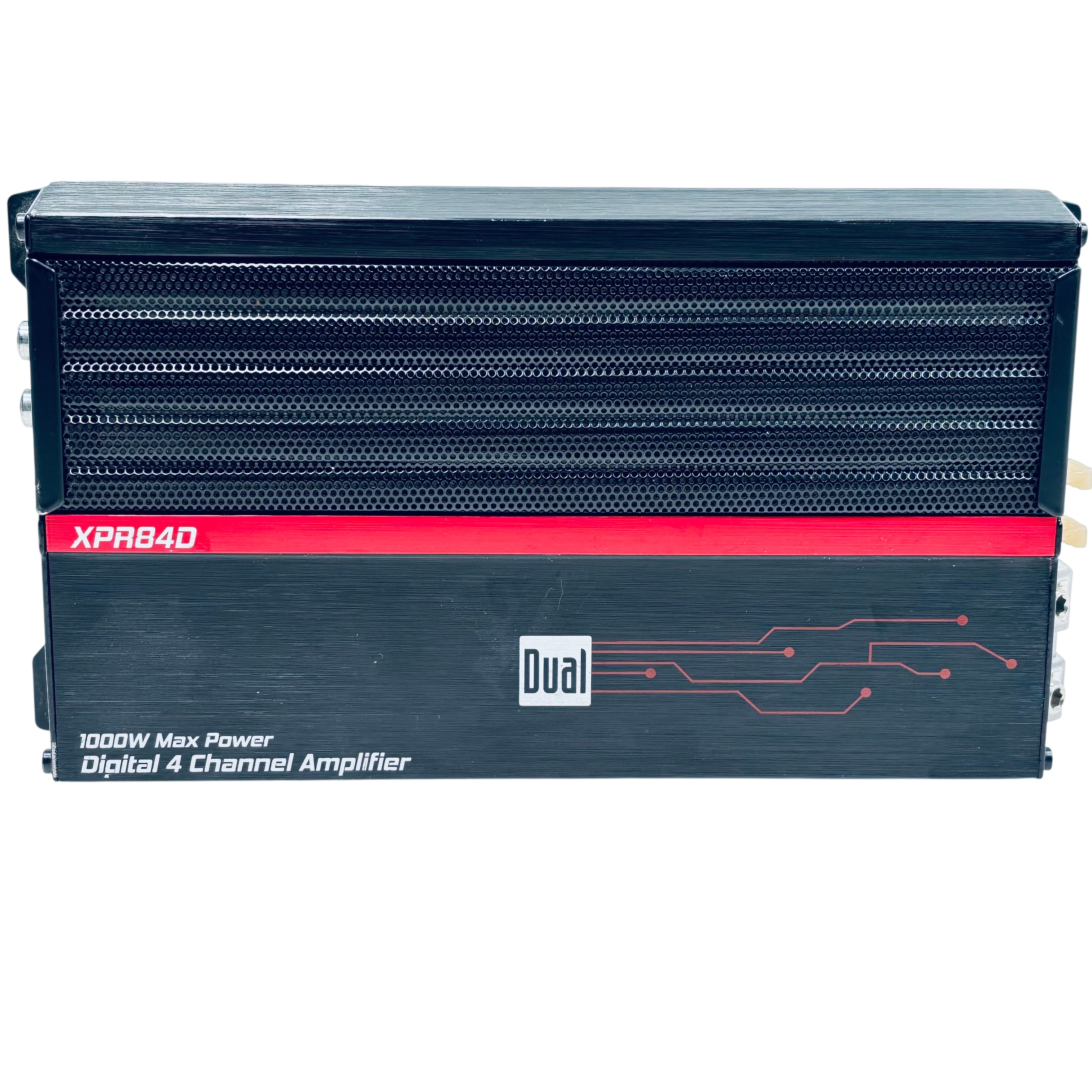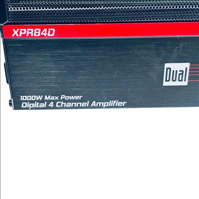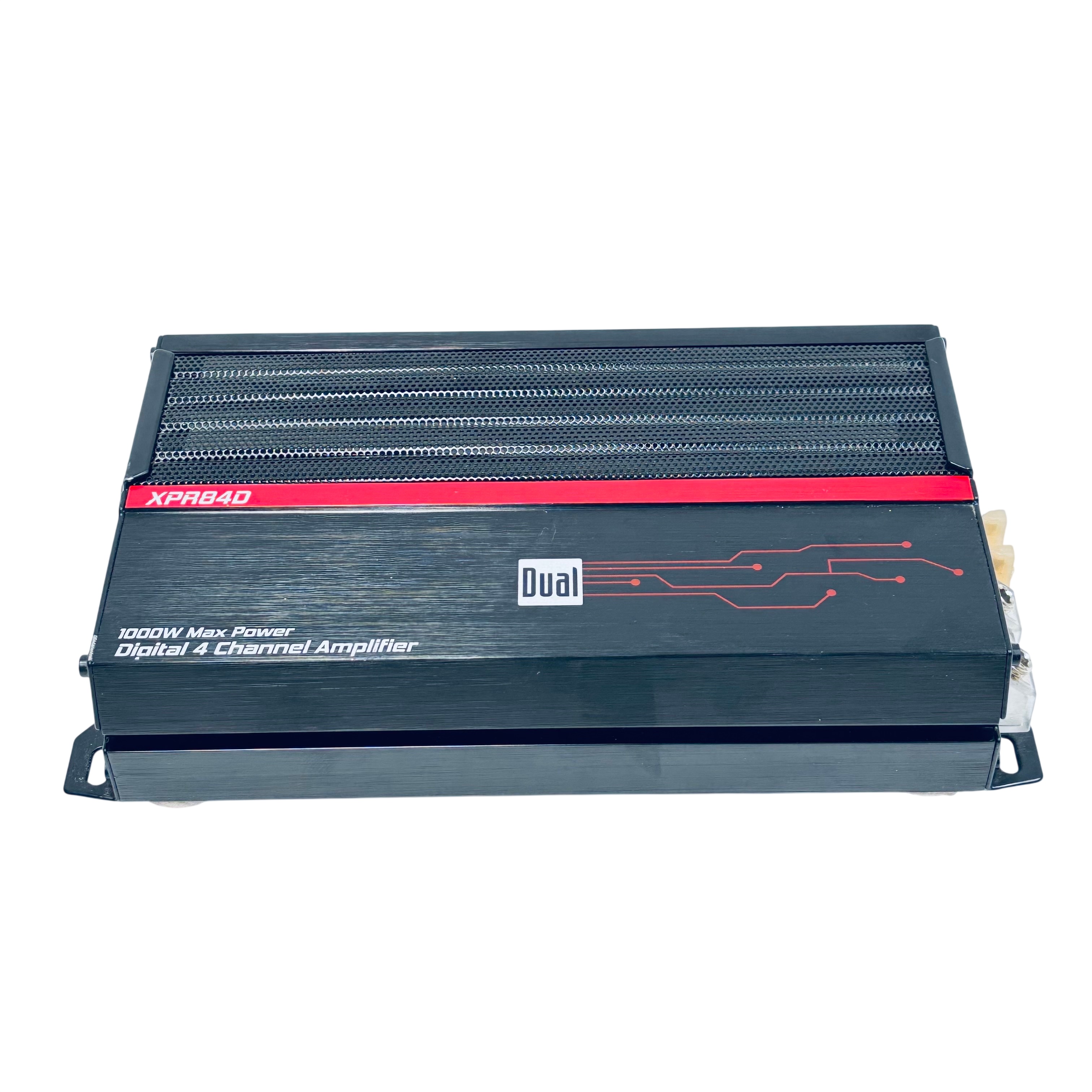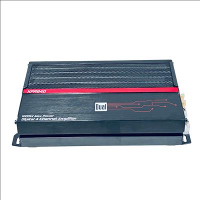 The Dual XPR84D Digital 4 Channel Amplifier delivers up to 1000 watts of maximum power with a compact and durable design. Operating on 12-16 VDC negative ground systems, this amplifier supports 4 Ohm speaker loads and features remote turn-on capability for seamless integration with your car audio system. Manufactured by Dual Electronics Corporation, it offers reliable performance with easy power and speaker connections. Ideal for upgrading your vehicles sound system with clear, powerful audio output in a compact form factor.