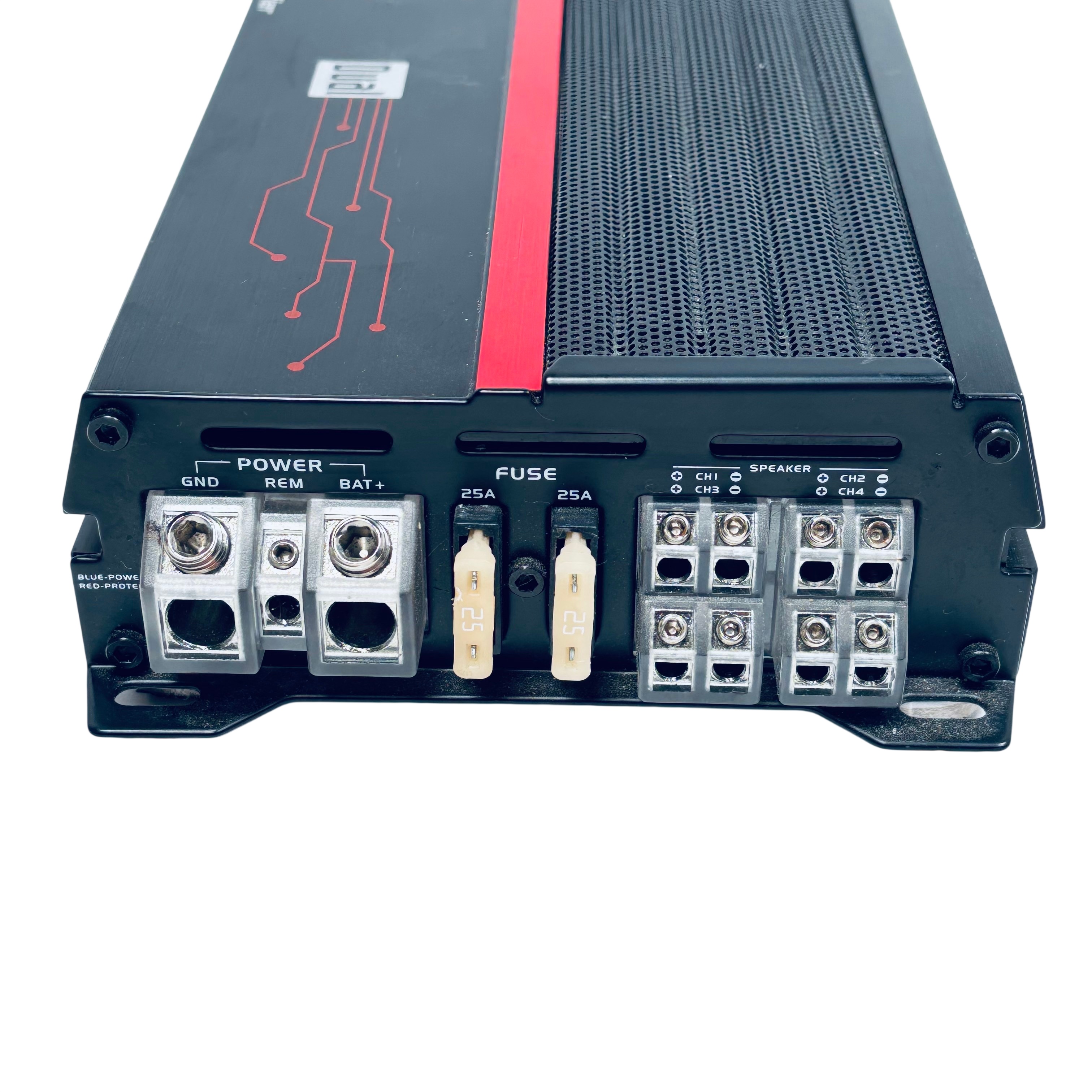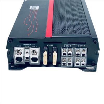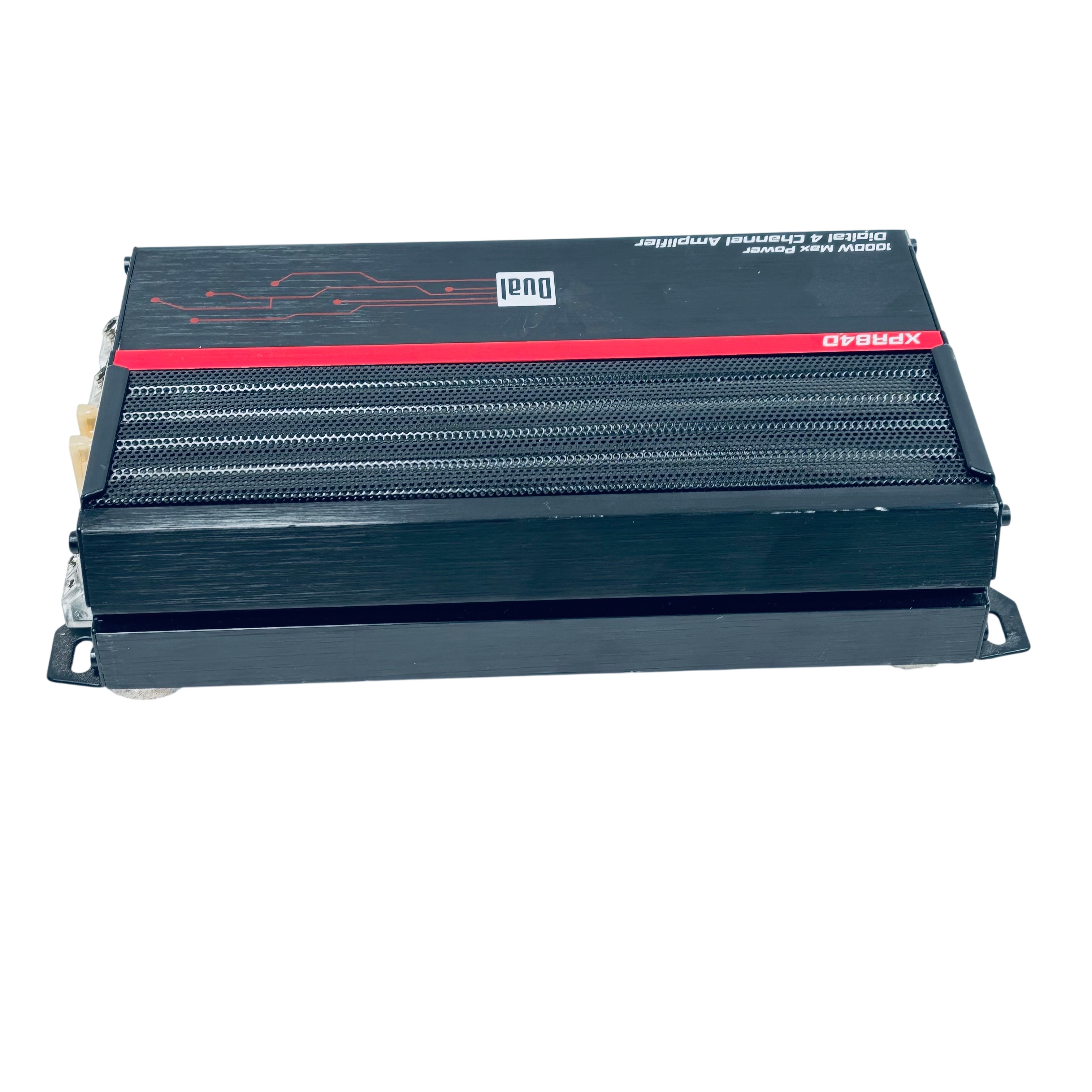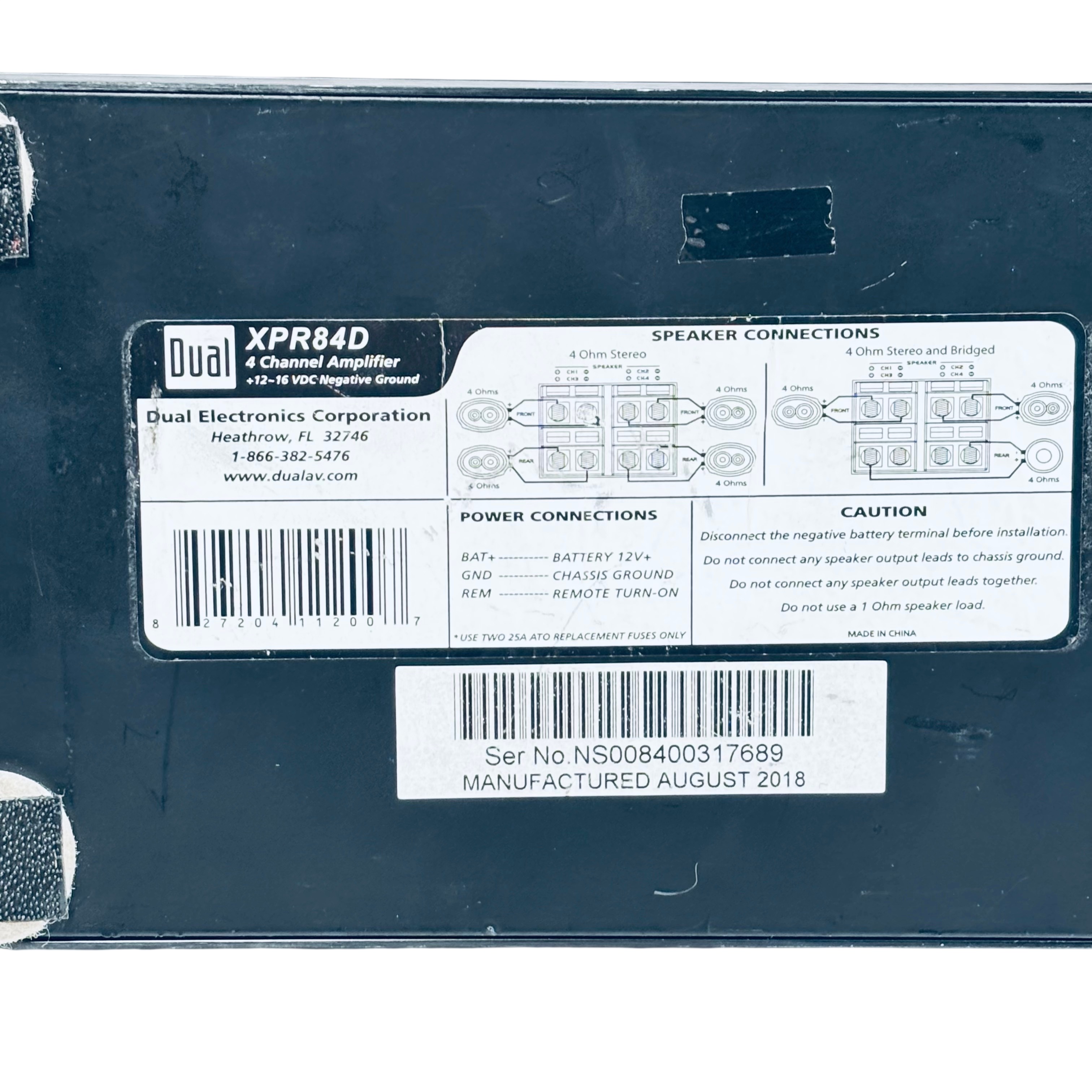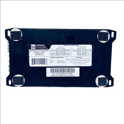 The Dual XPR84D Digital 4 Channel Amplifier delivers up to 1000 watts of maximum power with a compact and durable design. Operating on 12-16 VDC negative ground systems, this amplifier supports 4 Ohm speaker loads and features remote turn-on capability for seamless integration with your car audio system. Manufactured by Dual Electronics Corporation, it offers reliable performance with easy power and speaker connections. Ideal for upgrading your vehicles sound system with clear, powerful audio output in a compact form factor.