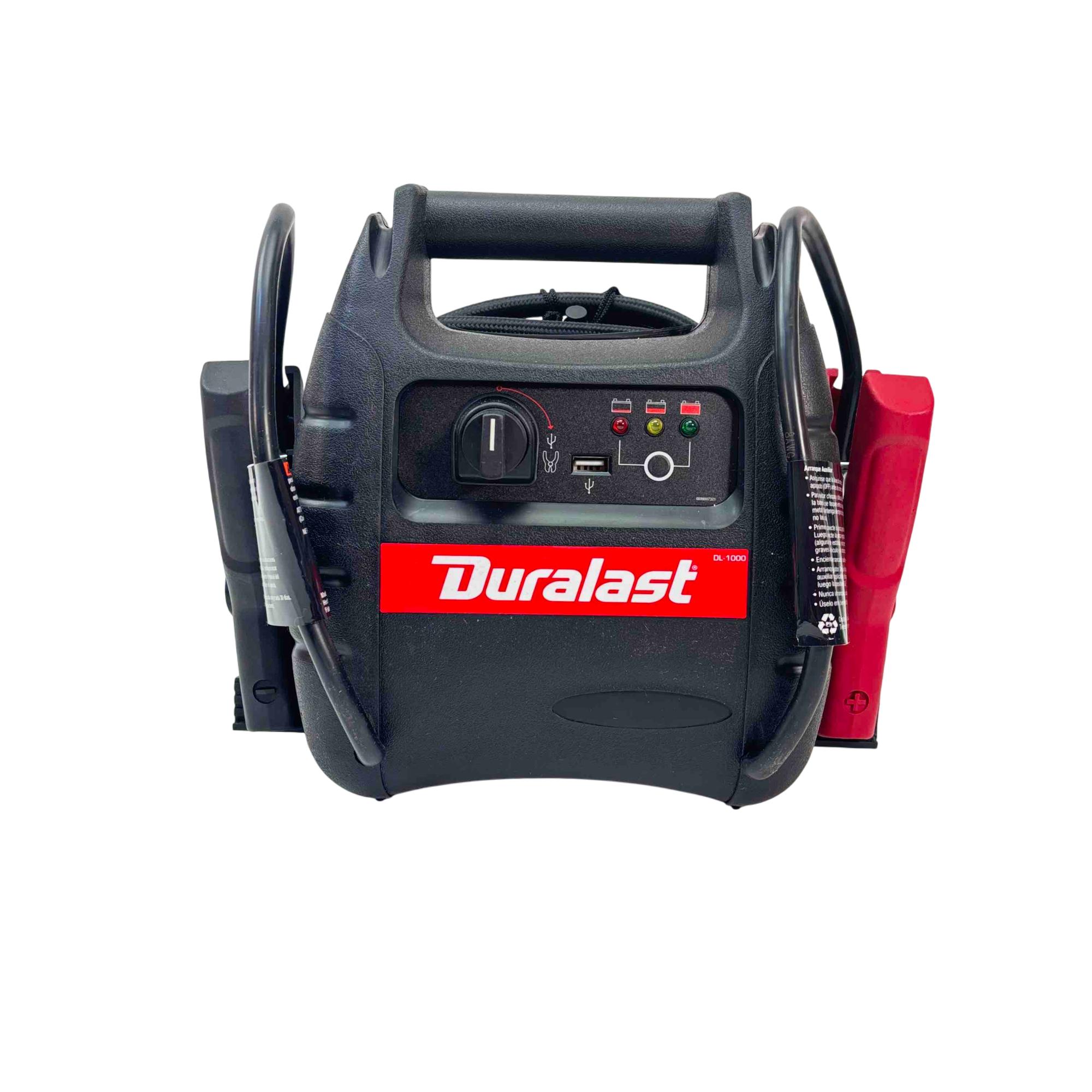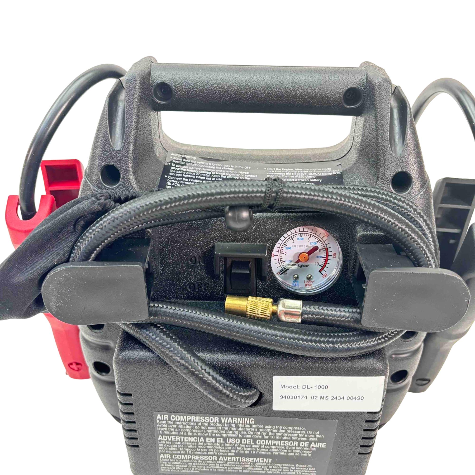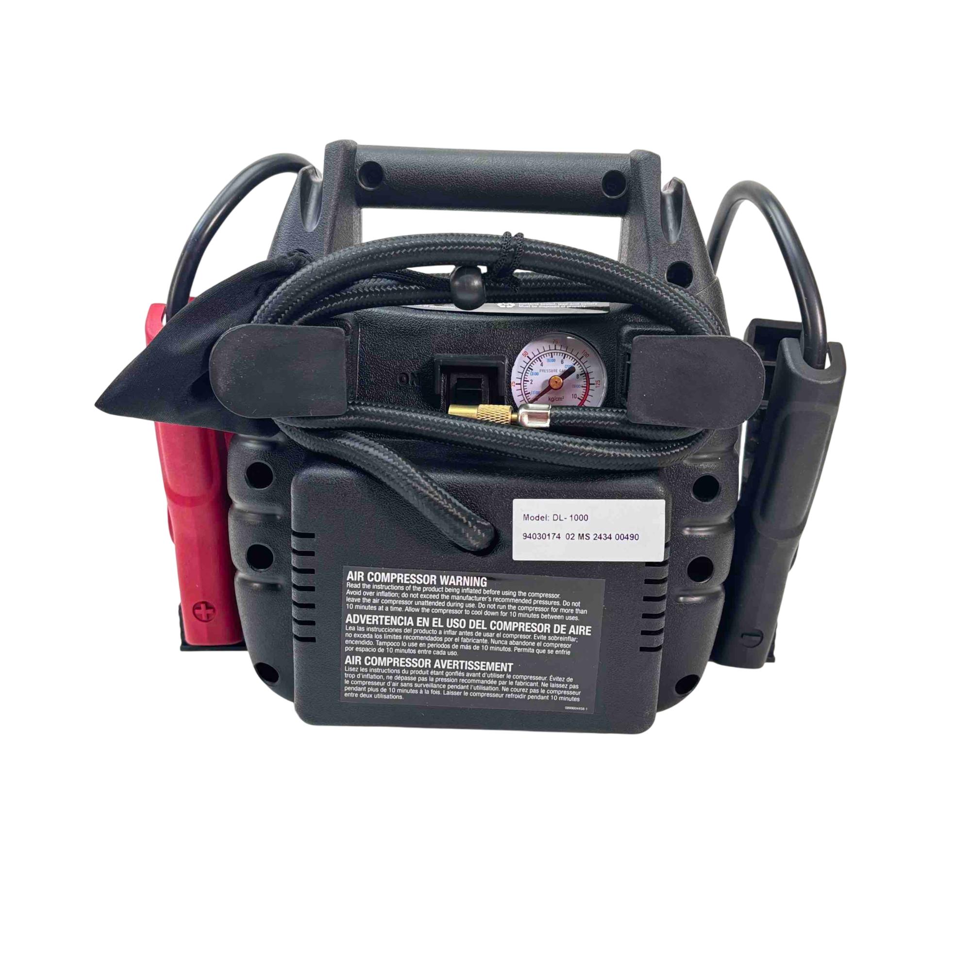 Introducing the Duralast DL1000, a versatile air compressor and battery jump starter that ensures youre never stranded with a dead battery. Designed with a built-in gauge and durable cables, its perfect for inflating tires and jump-starting your vehicle, providing reliability when you need it most. Compact and easy to use, the DL1000 combines functionality with convenience, making it an essential addition to your automotive toolkit.