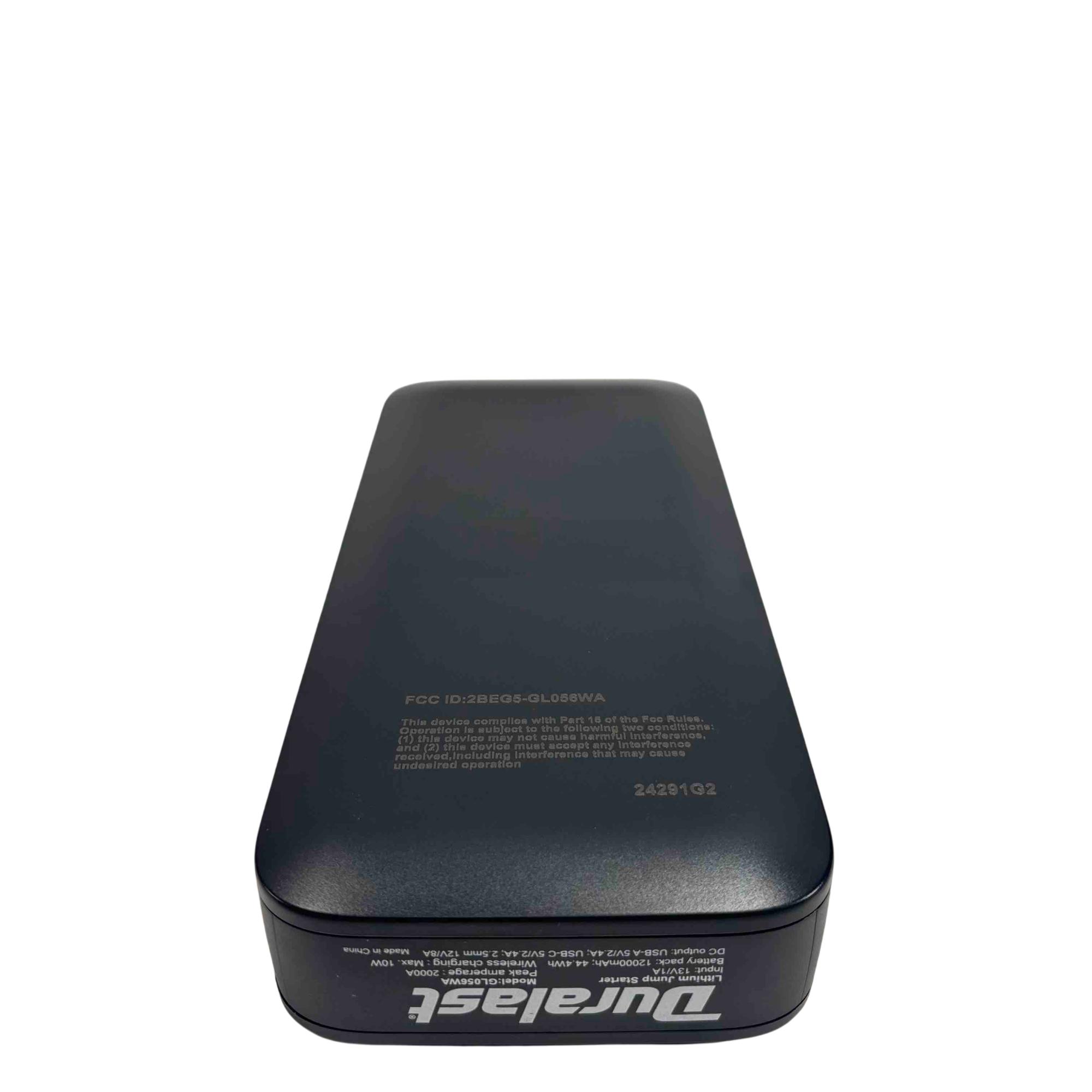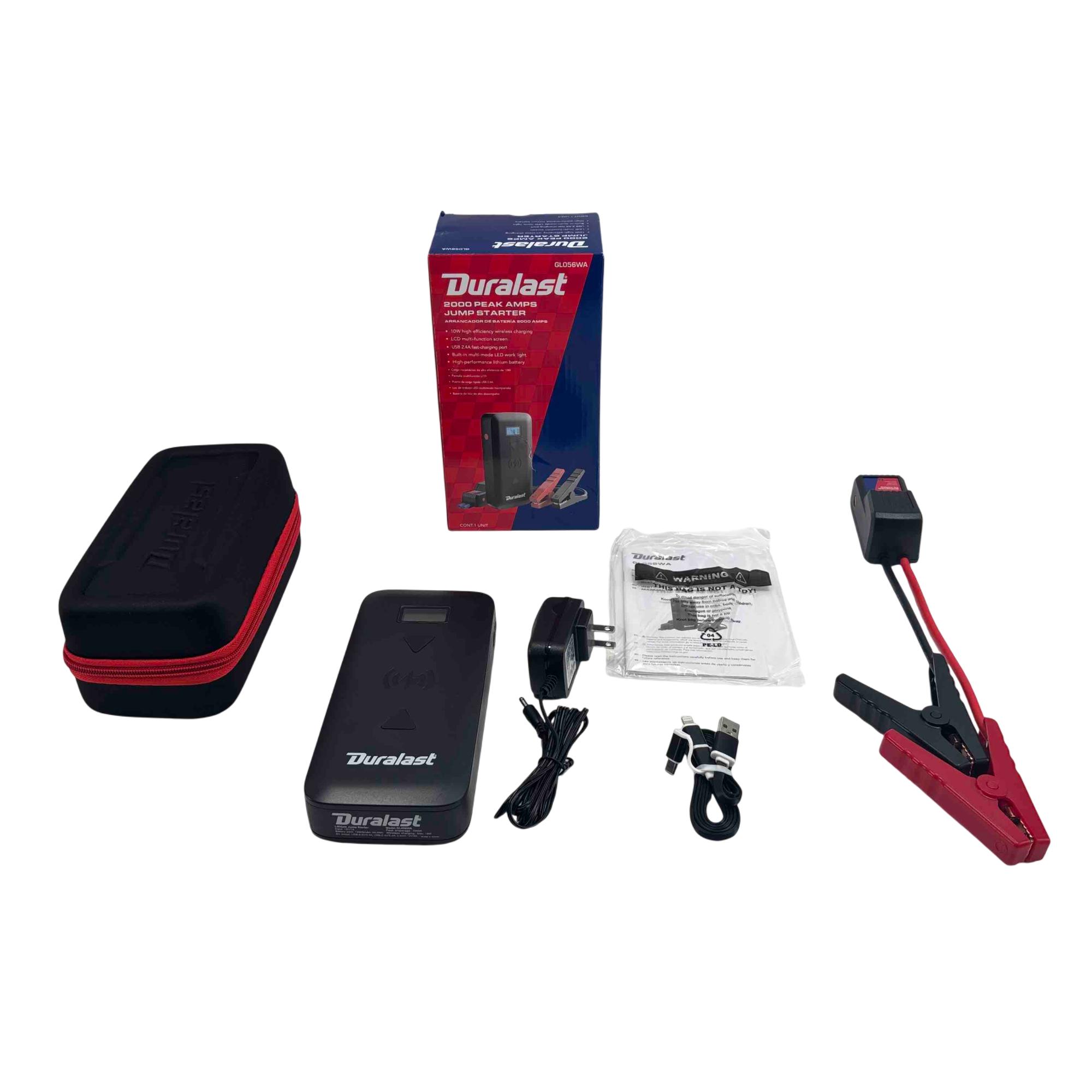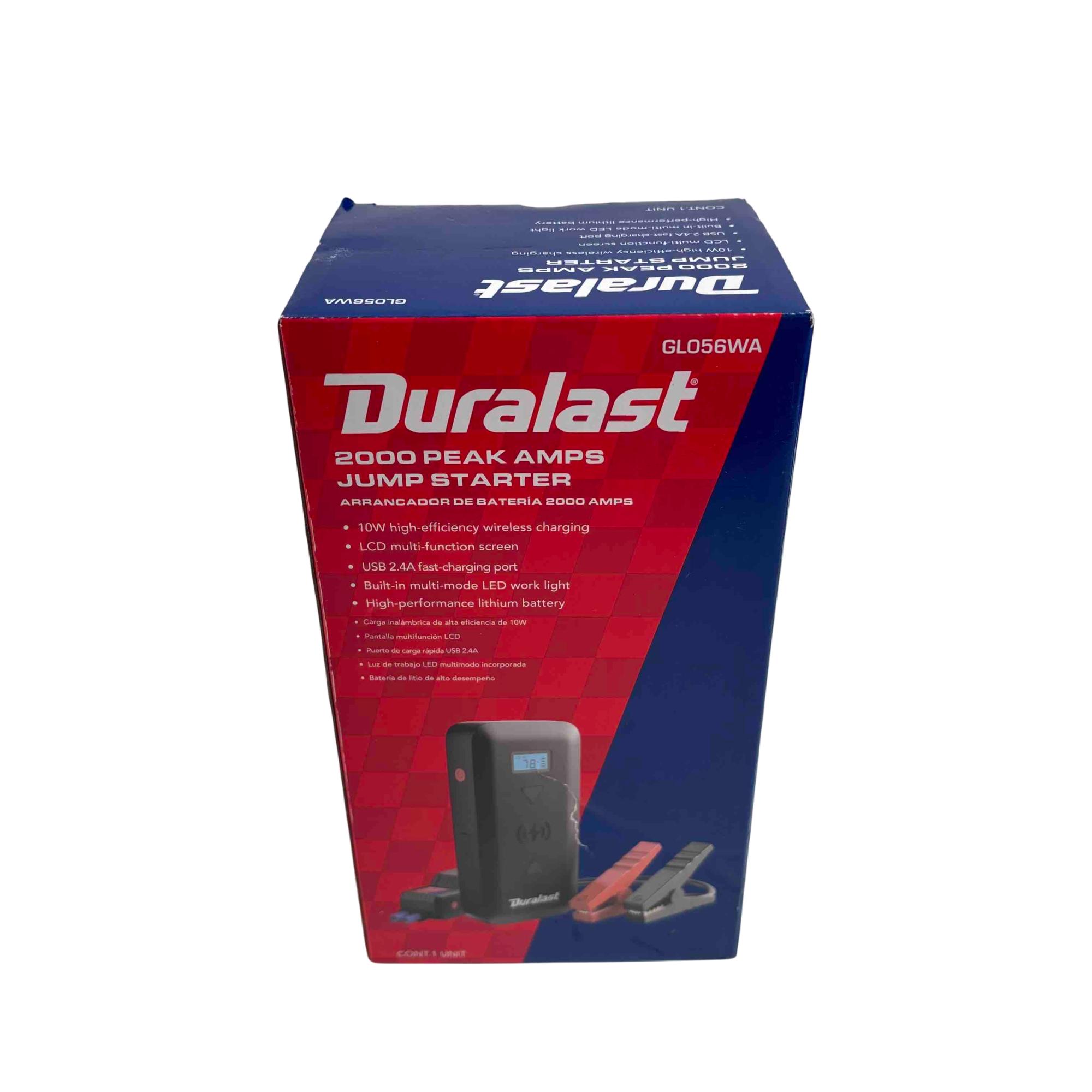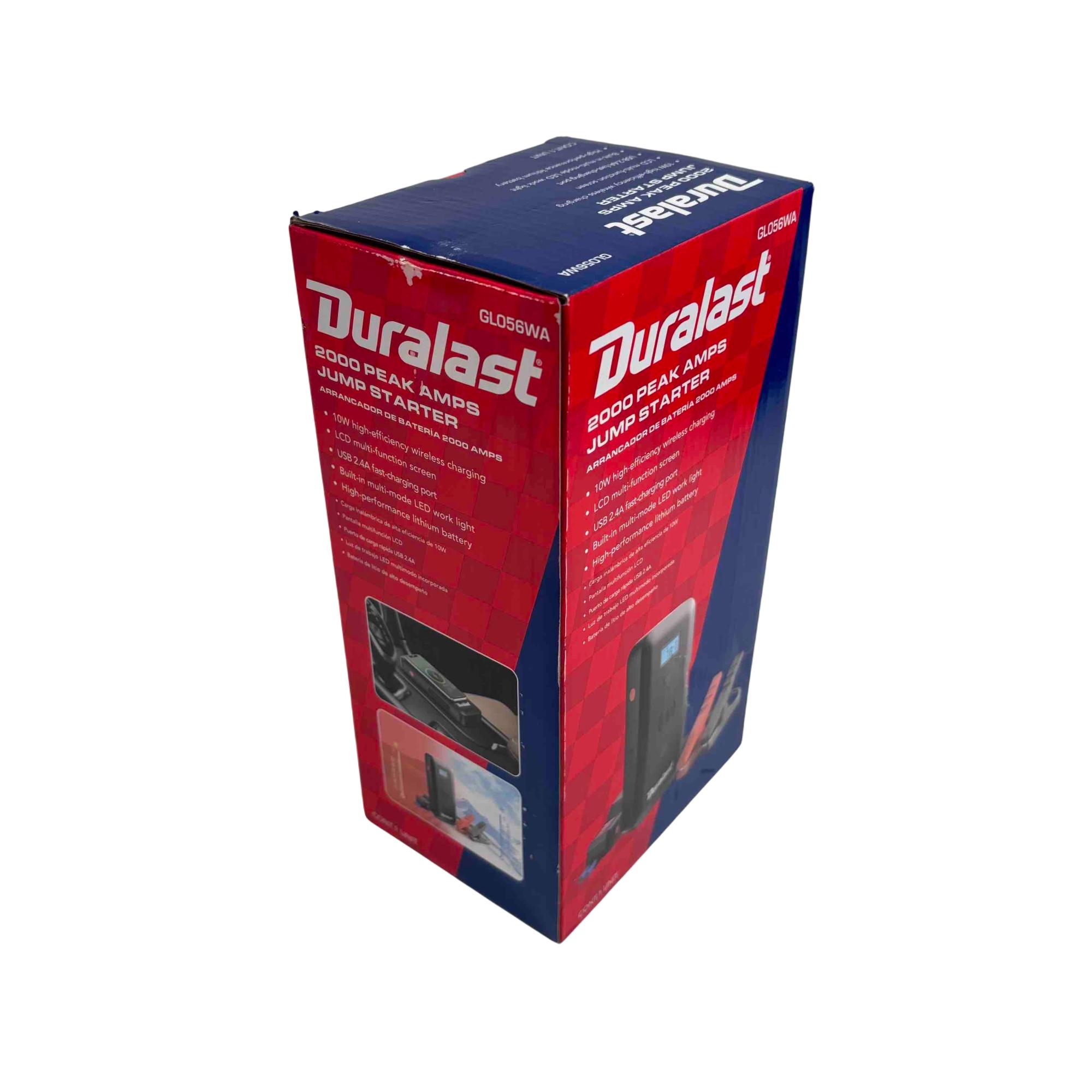 Get back on the road effortlessly with the Duralast GLO56WA 2000 Peak Amps Lithium Jump Starter. Designed for maximum convenience, this compact device features a 10W wireless charging capability, a multifunctional LCD screen, and a built-in LED work light for any situation. Perfect for emergencies, it offers rapid USB charging ports and intelligent safety clamps to ensure a quick and safe jumpstart every time.